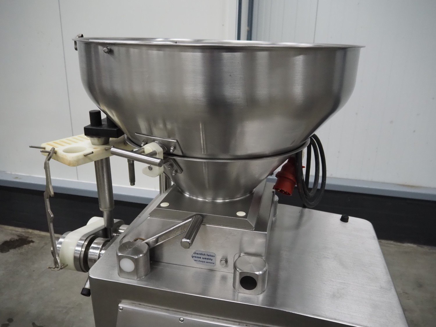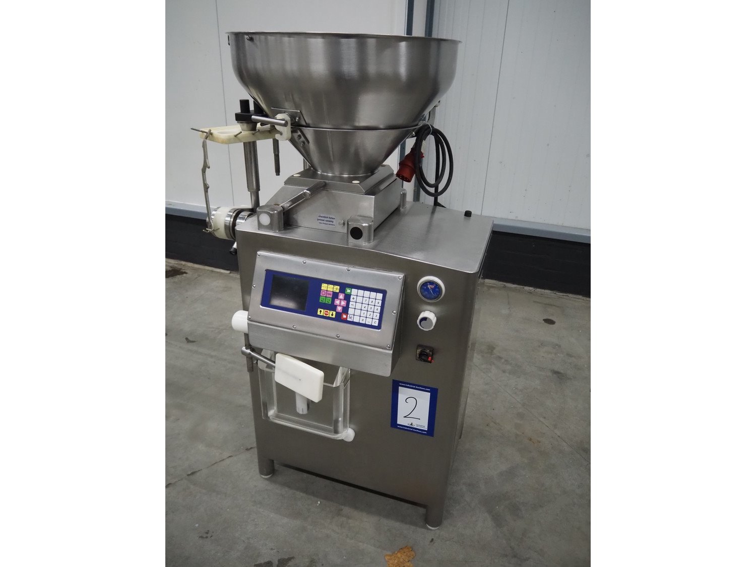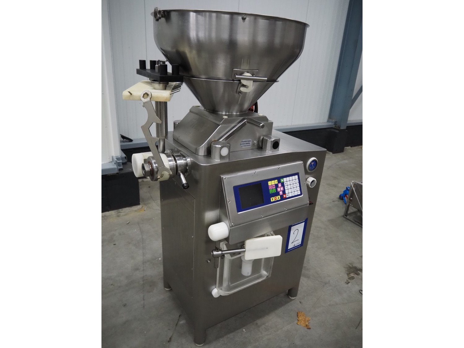 Frey Maschinenbau vacuum filling machine, type: KONTI-E80, machine number: KE80 014312, 400 V, 50 Hz, 5.1 kW, Busch vacuum pump, total dimensions: 950 mm x 700 mm x 1600 mm. Including linking attachment.