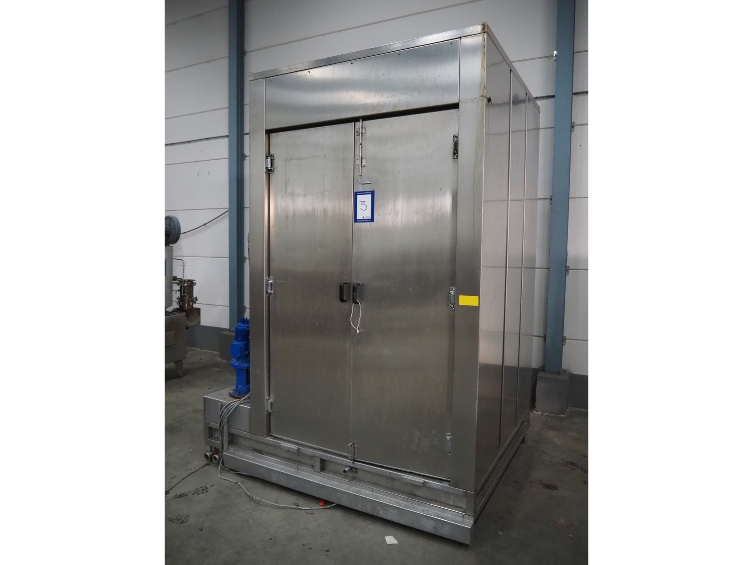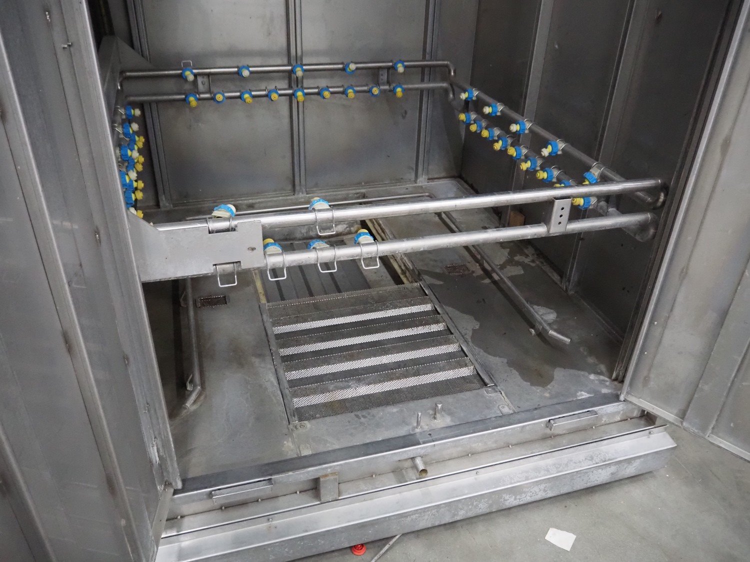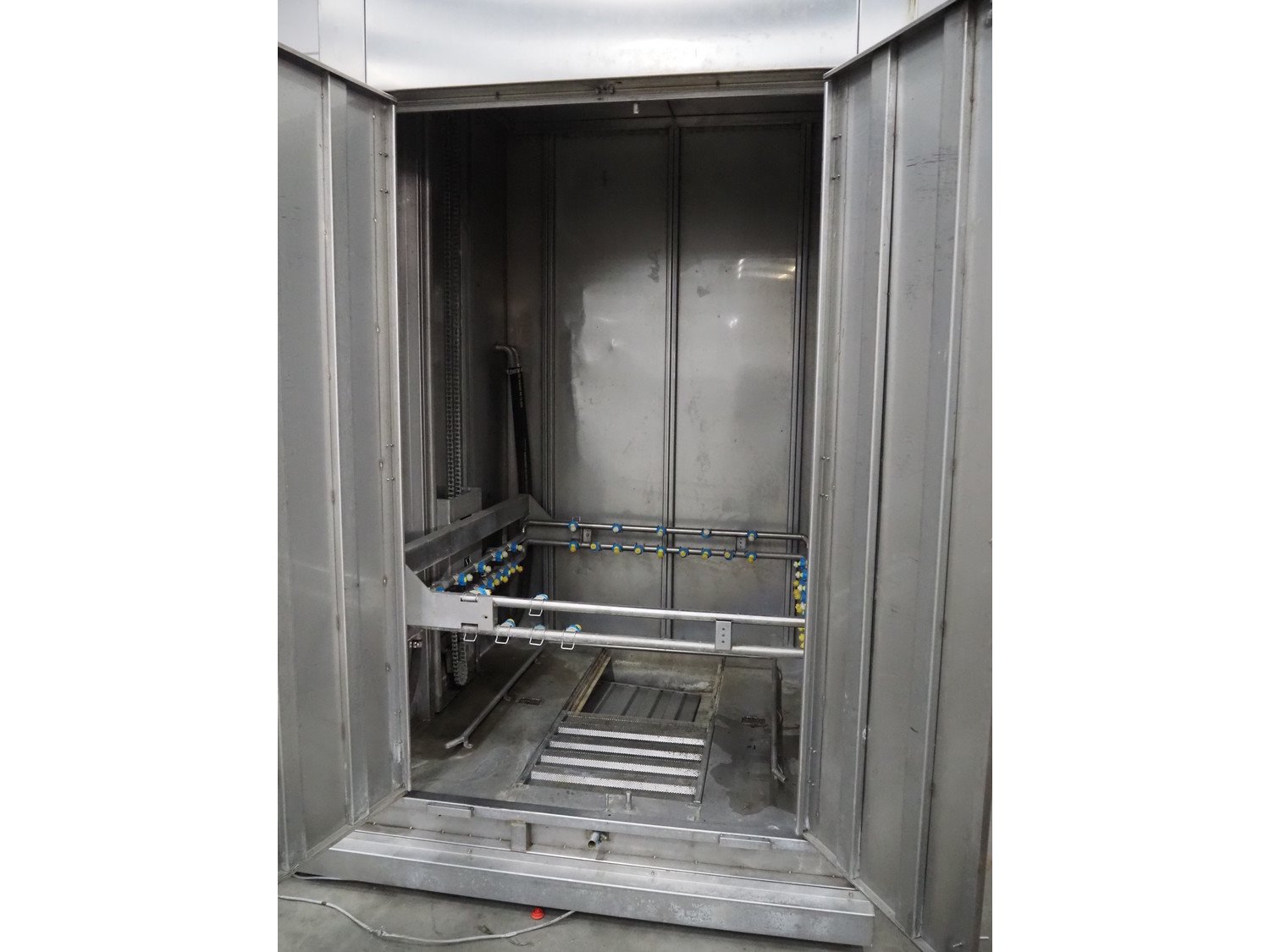 Dorit washing machine for smoke trolleys, type: KRW 1, number: 24.014, year of construction: 09/2006, 400 V, 36 kW, dimensions inside: 1150 mm x 1080 mm x 2150 mm, total dimensions: 2200 mm x 1780 mm x 3050 mm.