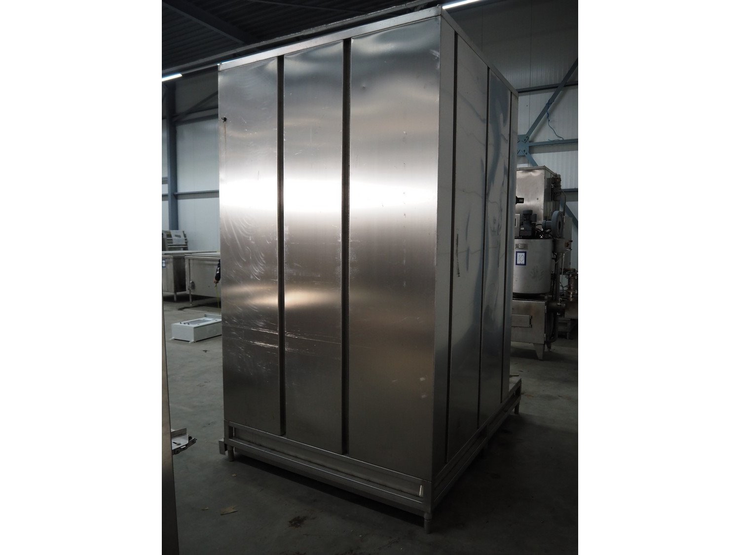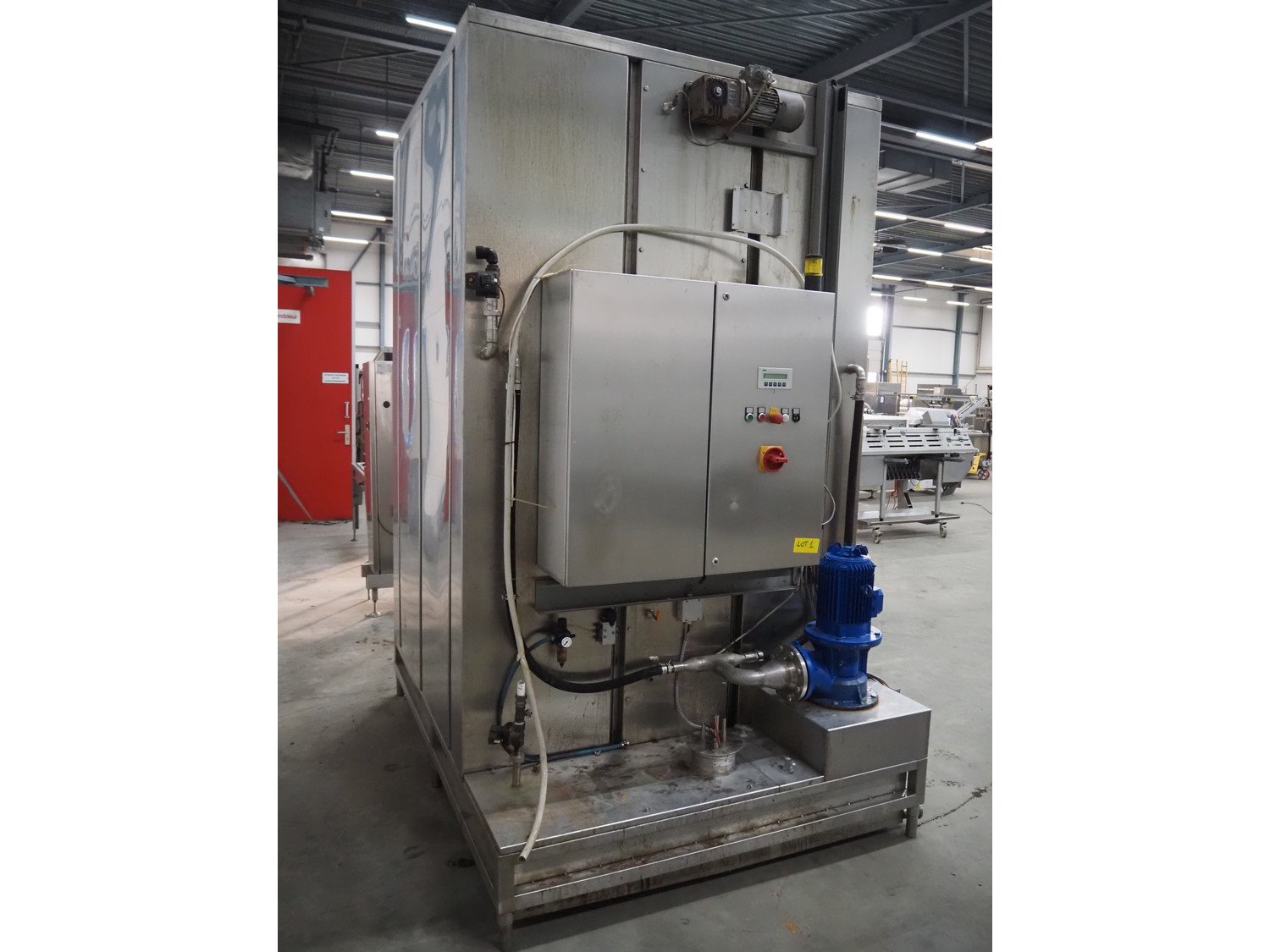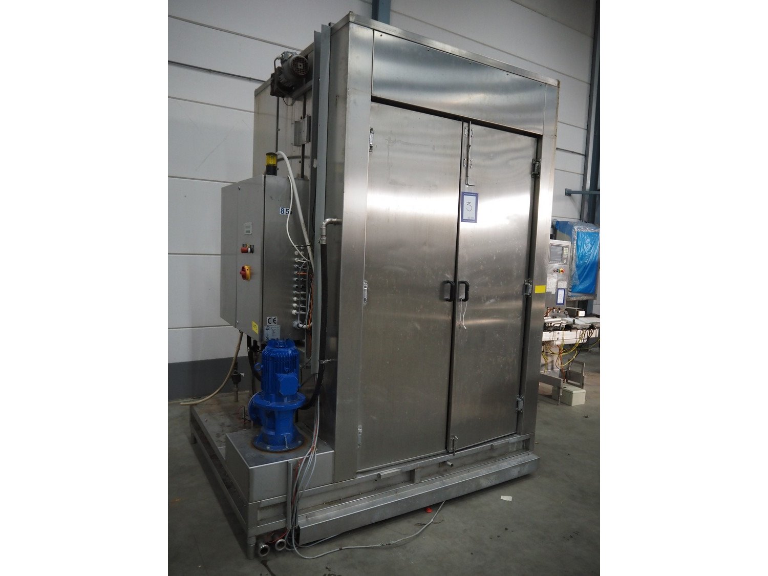 Dorit washing machine for smoke trolleys, type: KRW 1, number: 24.014, year of construction: 09/2006, 400 V, 36 kW, dimensions inside: 1150 mm x 1080 mm x 2150 mm, total dimensions: 2200 mm x 1780 mm x 3050 mm.