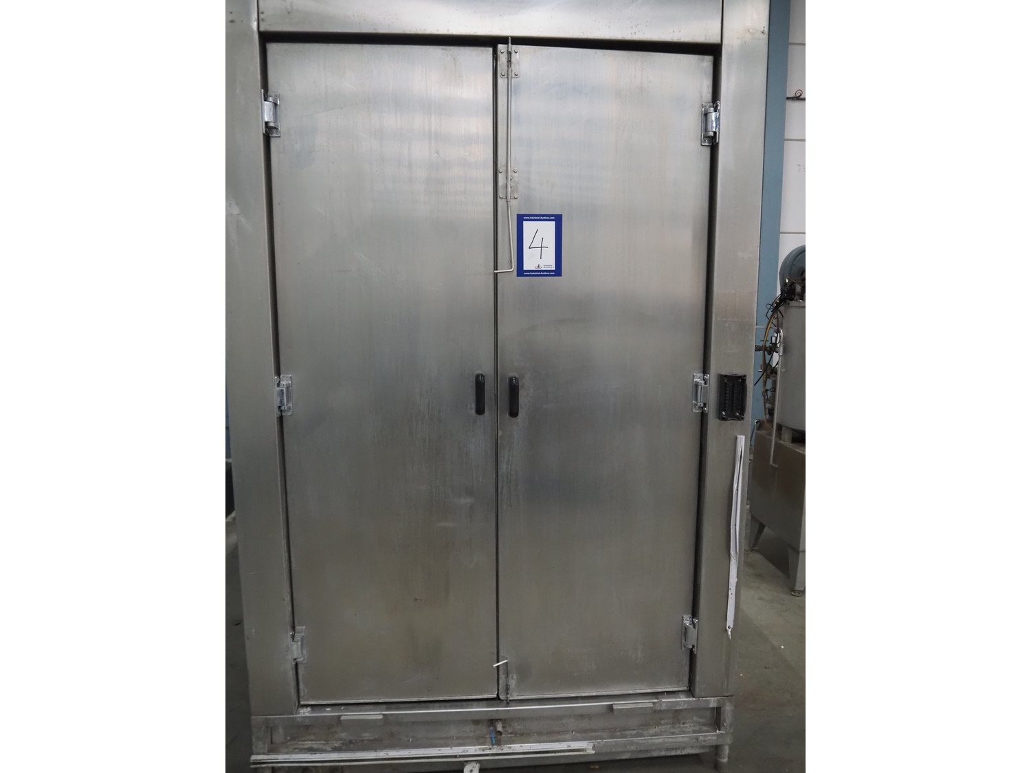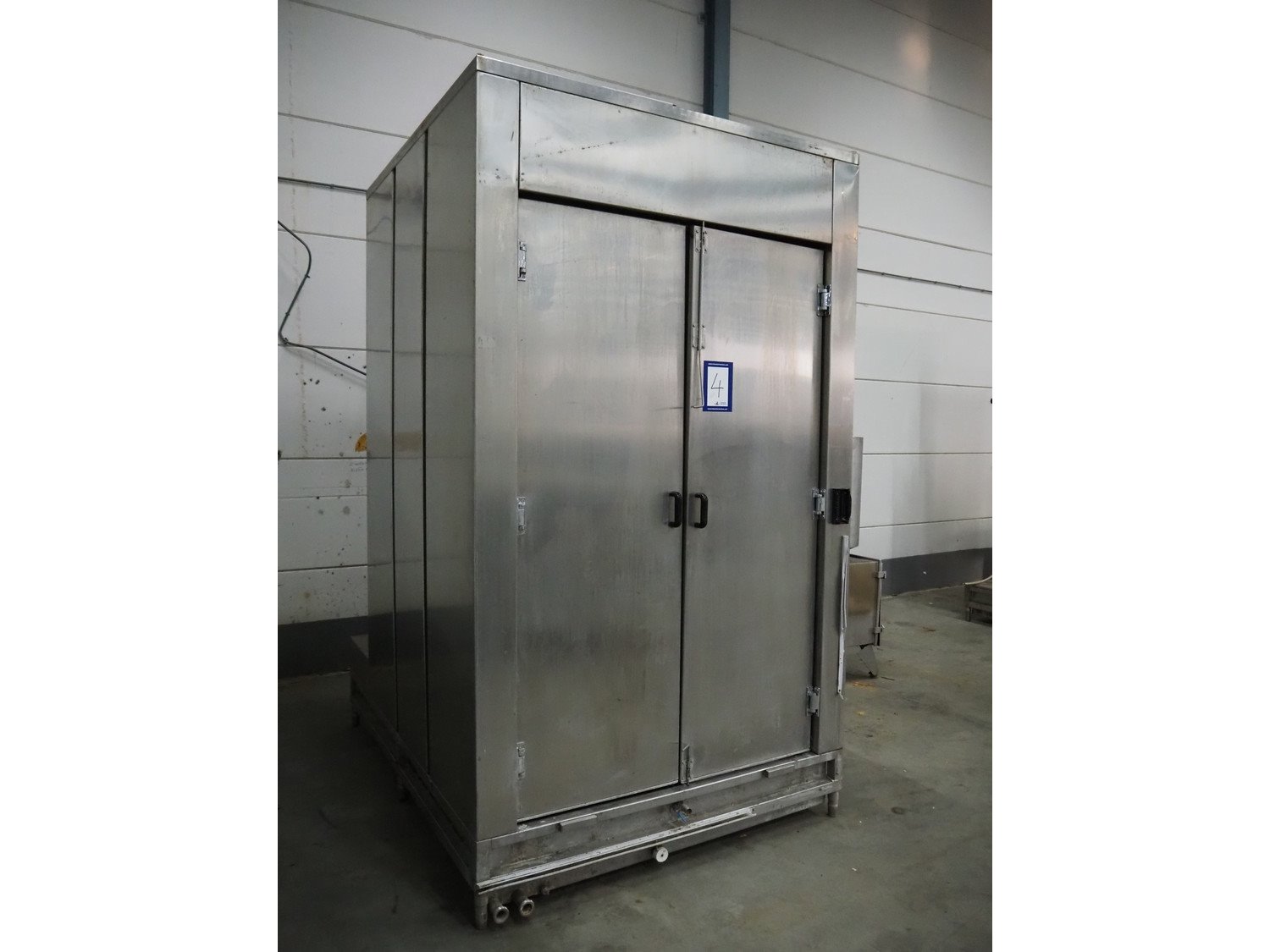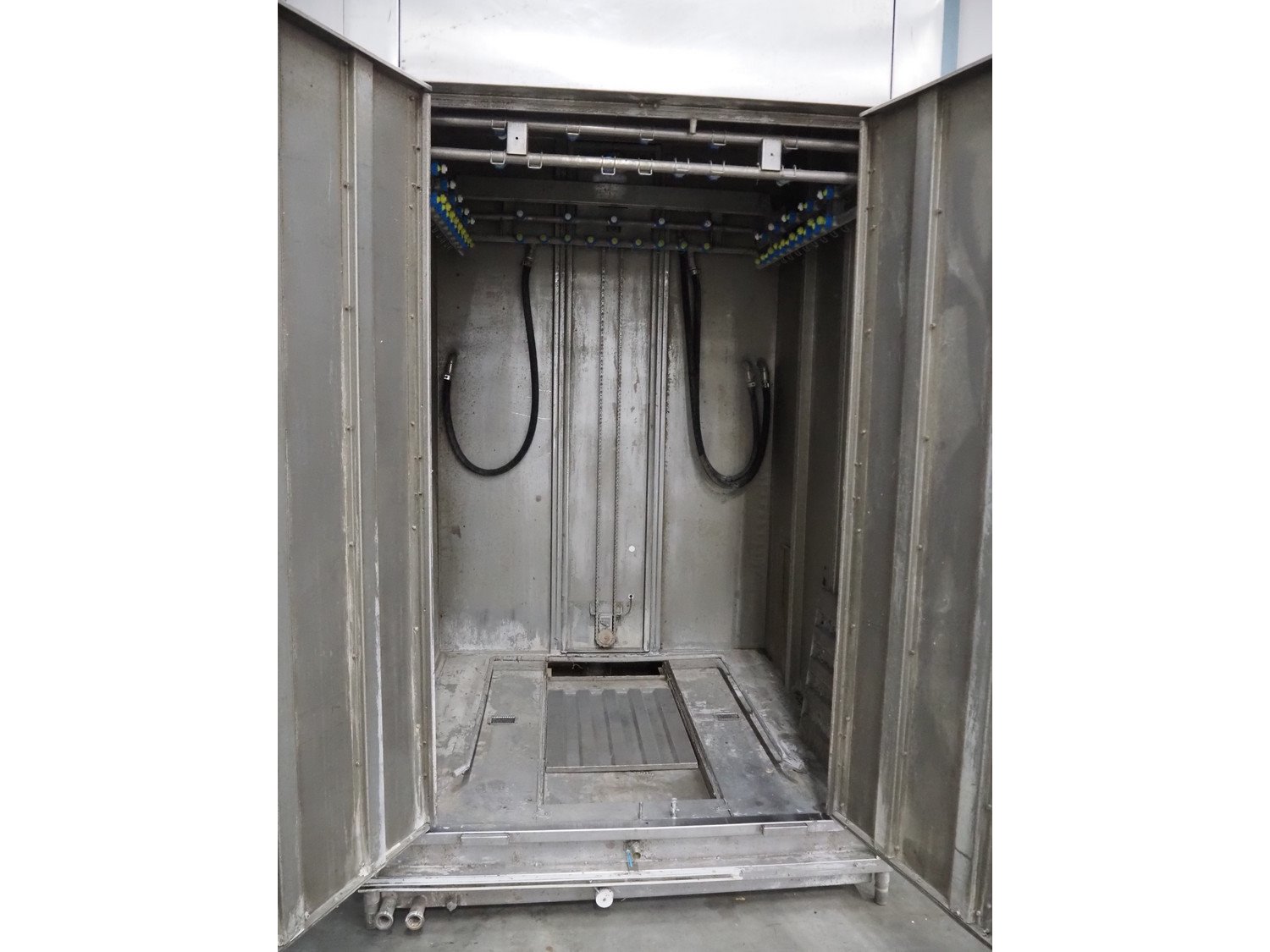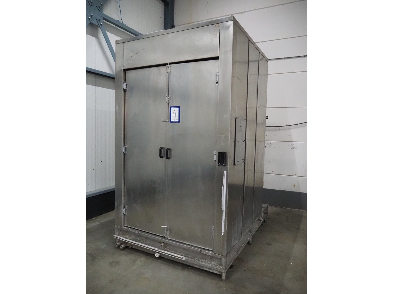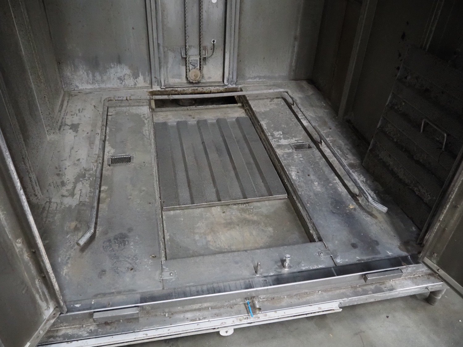 Dorit washing machine for smoke trolley, type: KRW 1, serial number: 20.022, 400 V, 3 Ph, 50 Hz, 6.5 kW, dimensions inside: 1150 mm x 1080 mm x 2150 mm, total dimensions: 2250 mm x 1700 mm x 2950 mm. Incomplete.