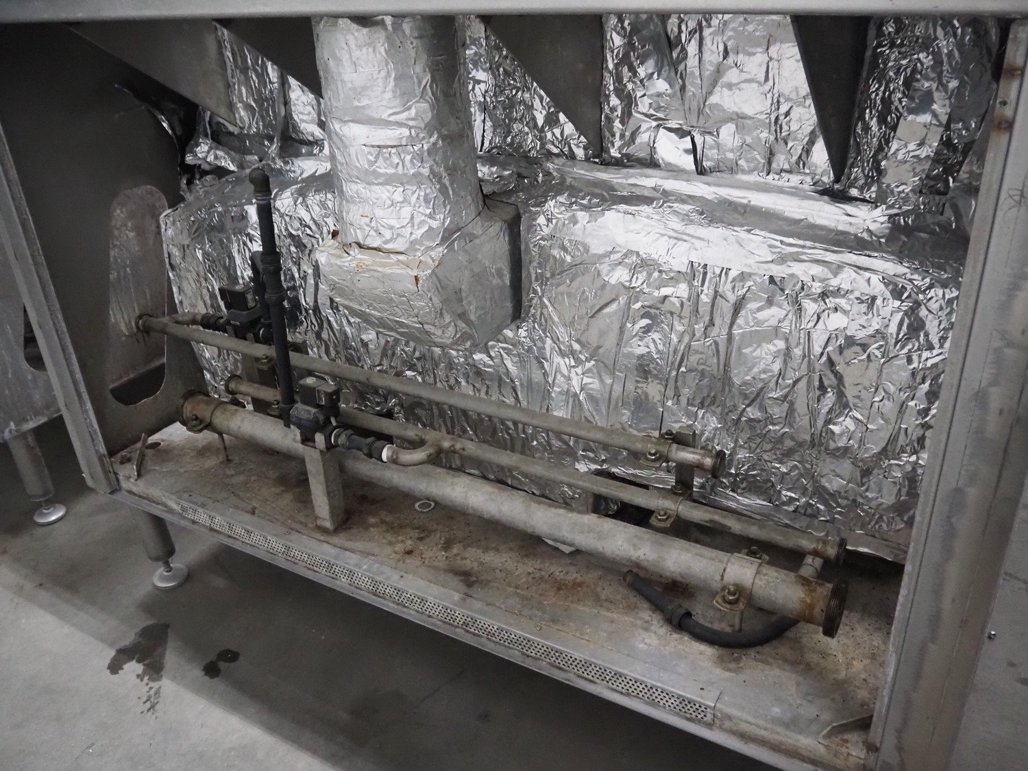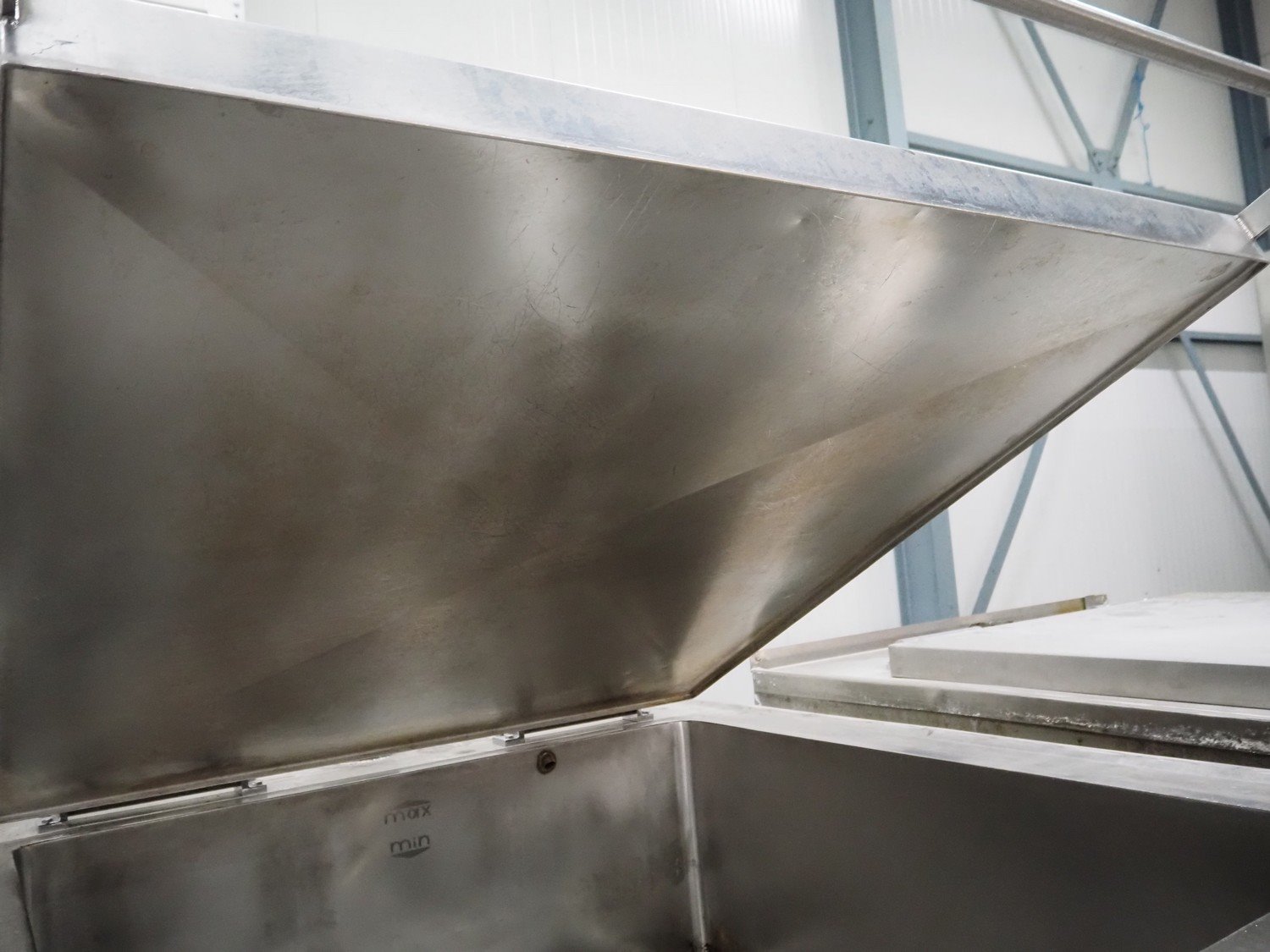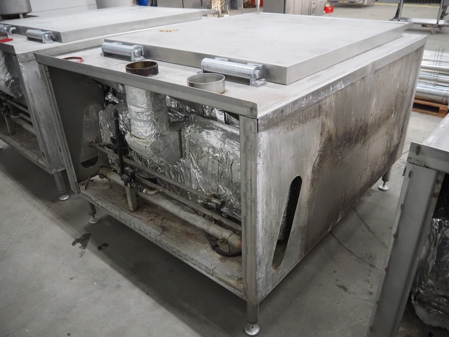 Spako cooking vessel, type number: RHU 1100 V, year of construction: 2010, natural gas, 230 V, 50 Hz, 60 W, volume: 1100 liter, dimensions inside: 1400 mm x 1300 mm x 600 mm, total dimensions: 2300 mm x 1670 mm x 1280 mm.
