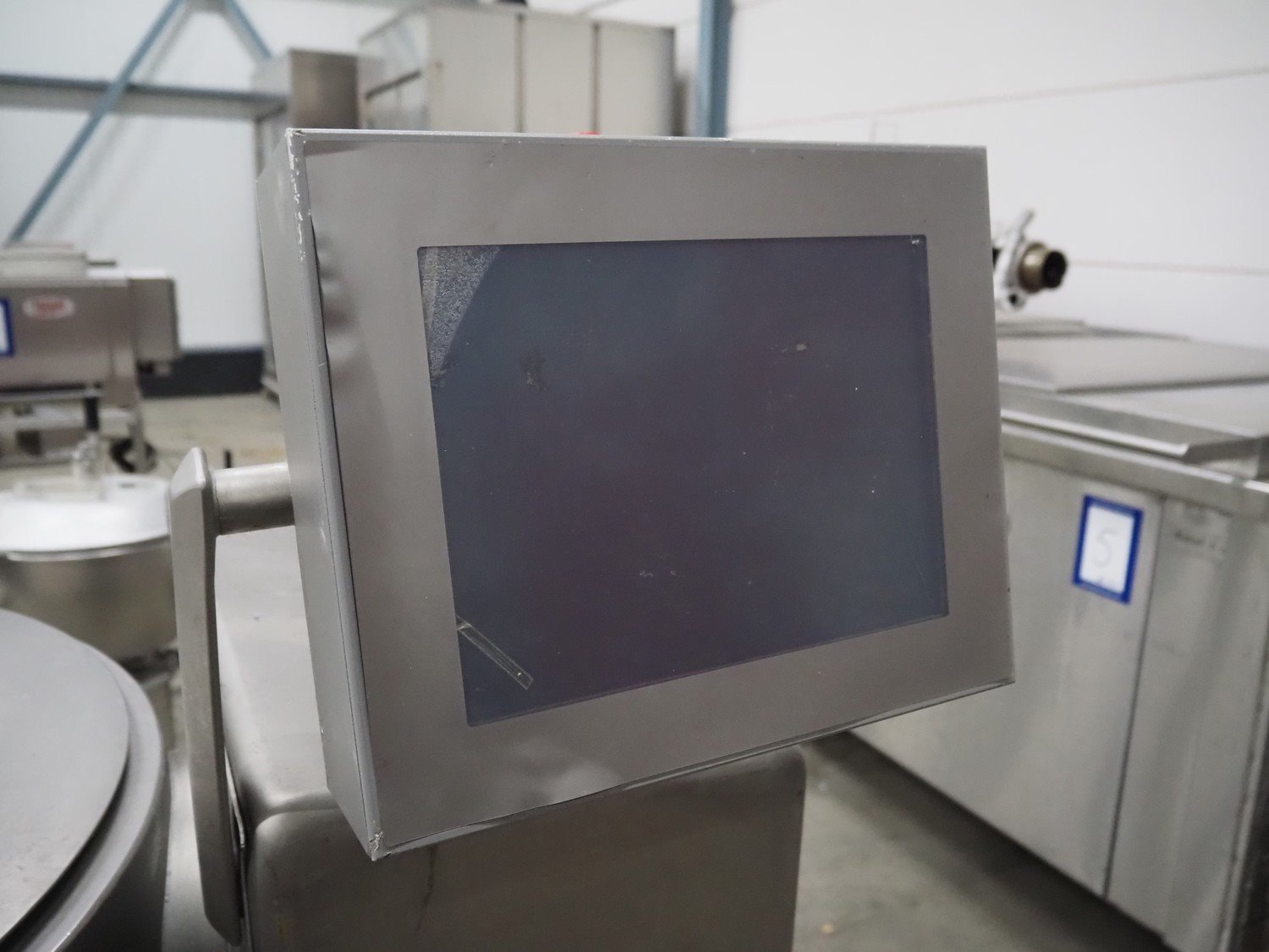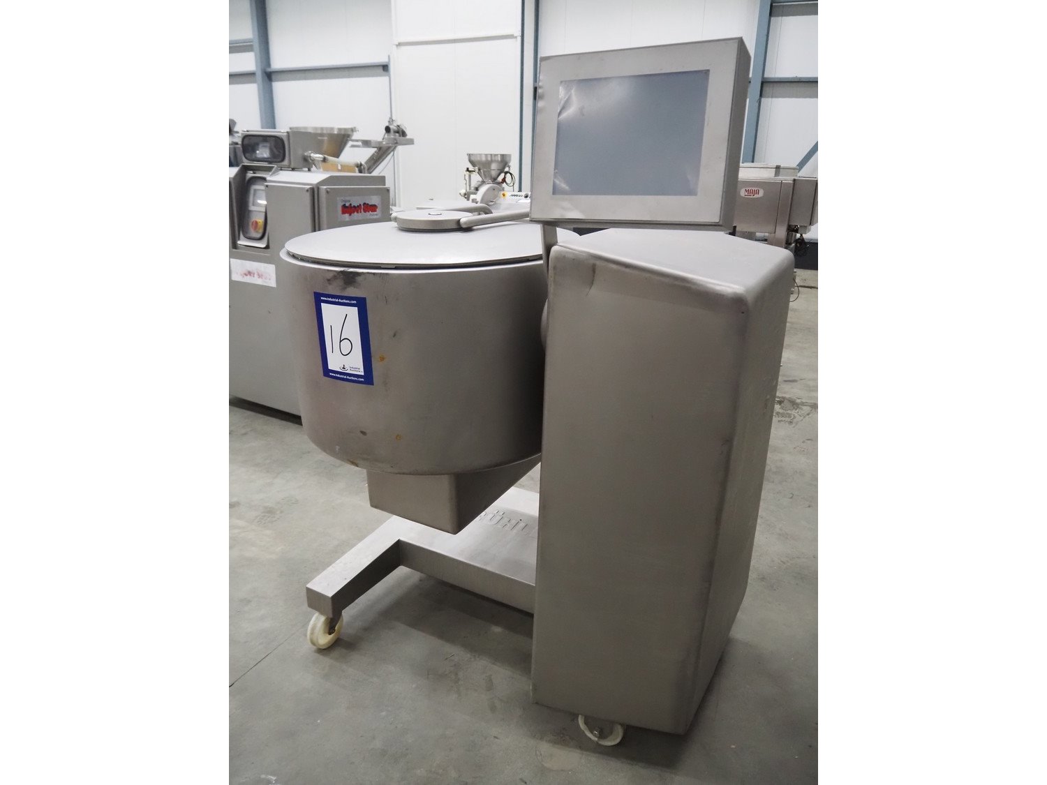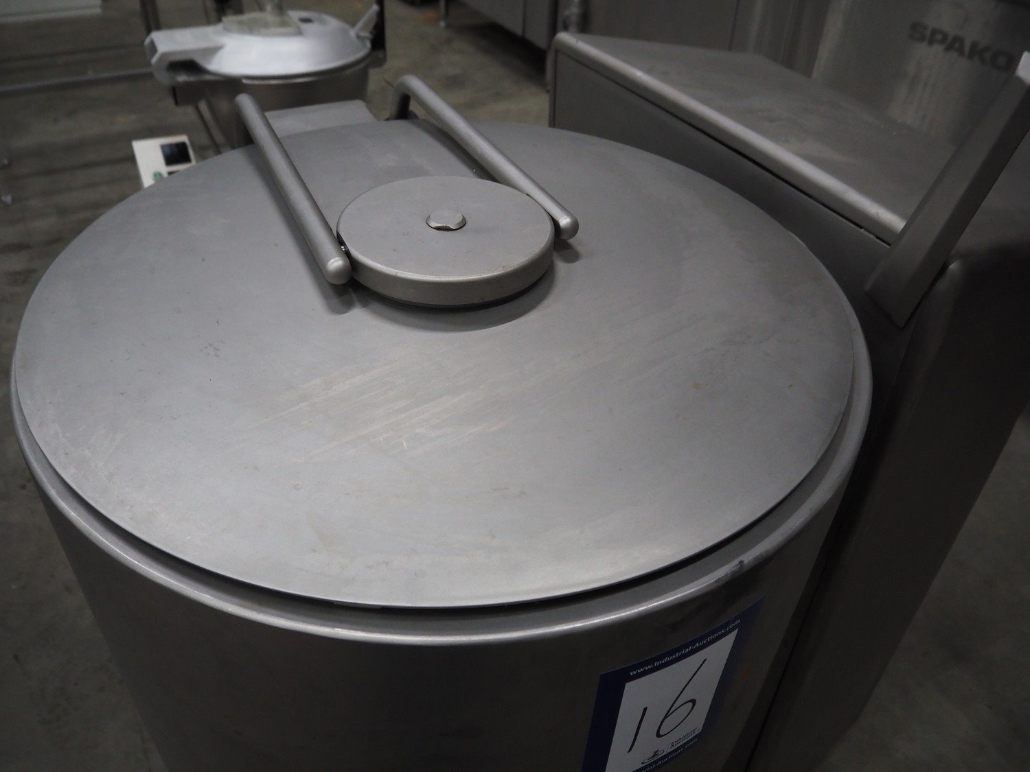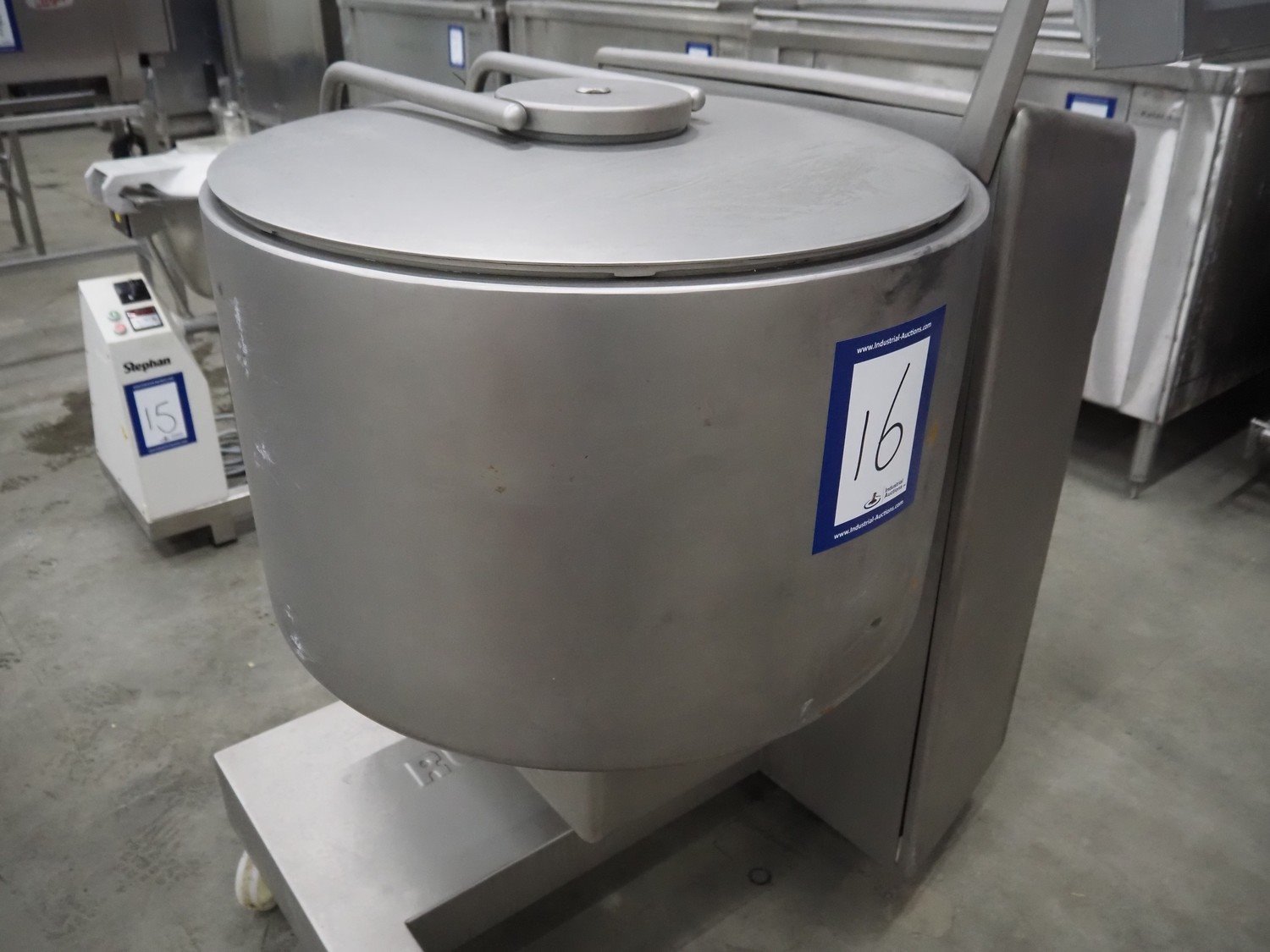 Rühle mobile cooled vacuum tumbler, type: MKR 150, number: 450, year of construction: 2003, 400 V, 50 Hz, 16 A, 3 kW, volume: 150 liter, Busch vacuum pump, type: KC 0010 D IZO, number: 03027214, capacity: 10 m³ per hour, total dimensions: 1250 mm x 980 mm x 1480 mm.