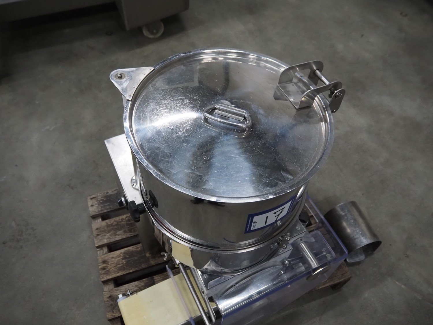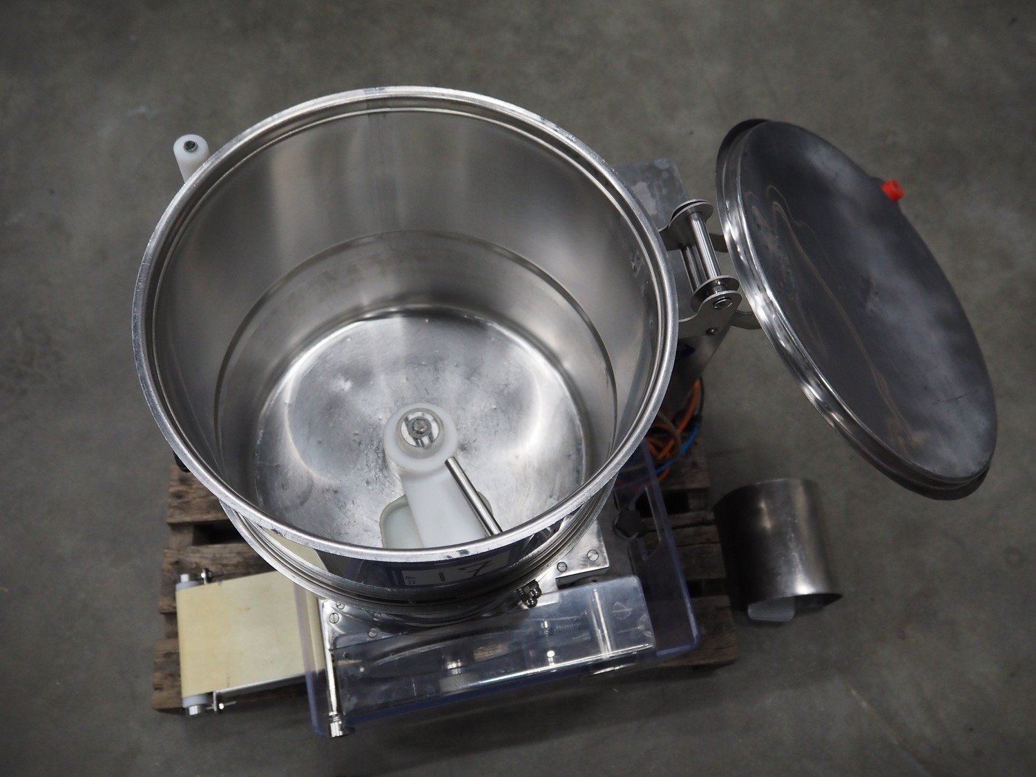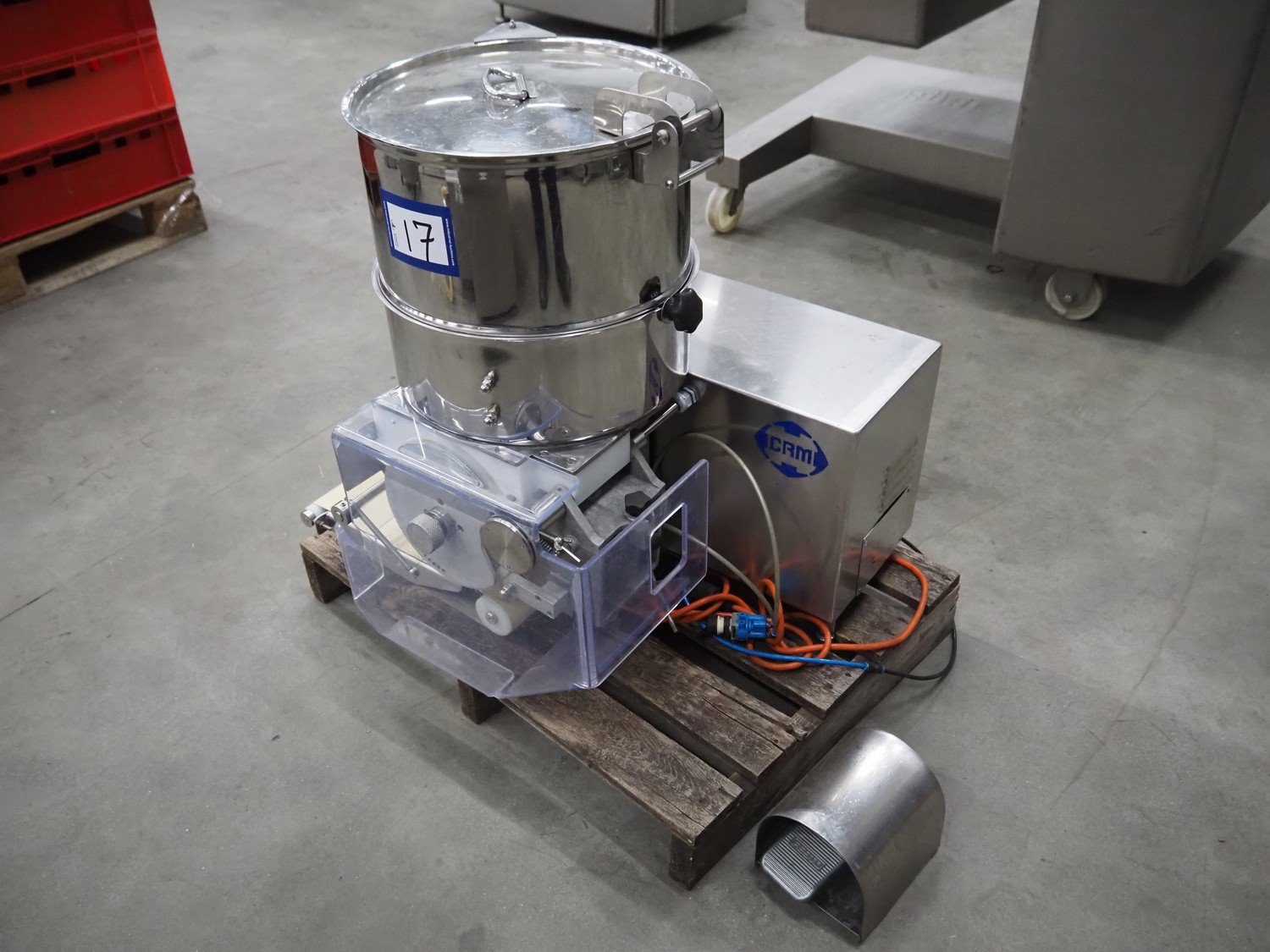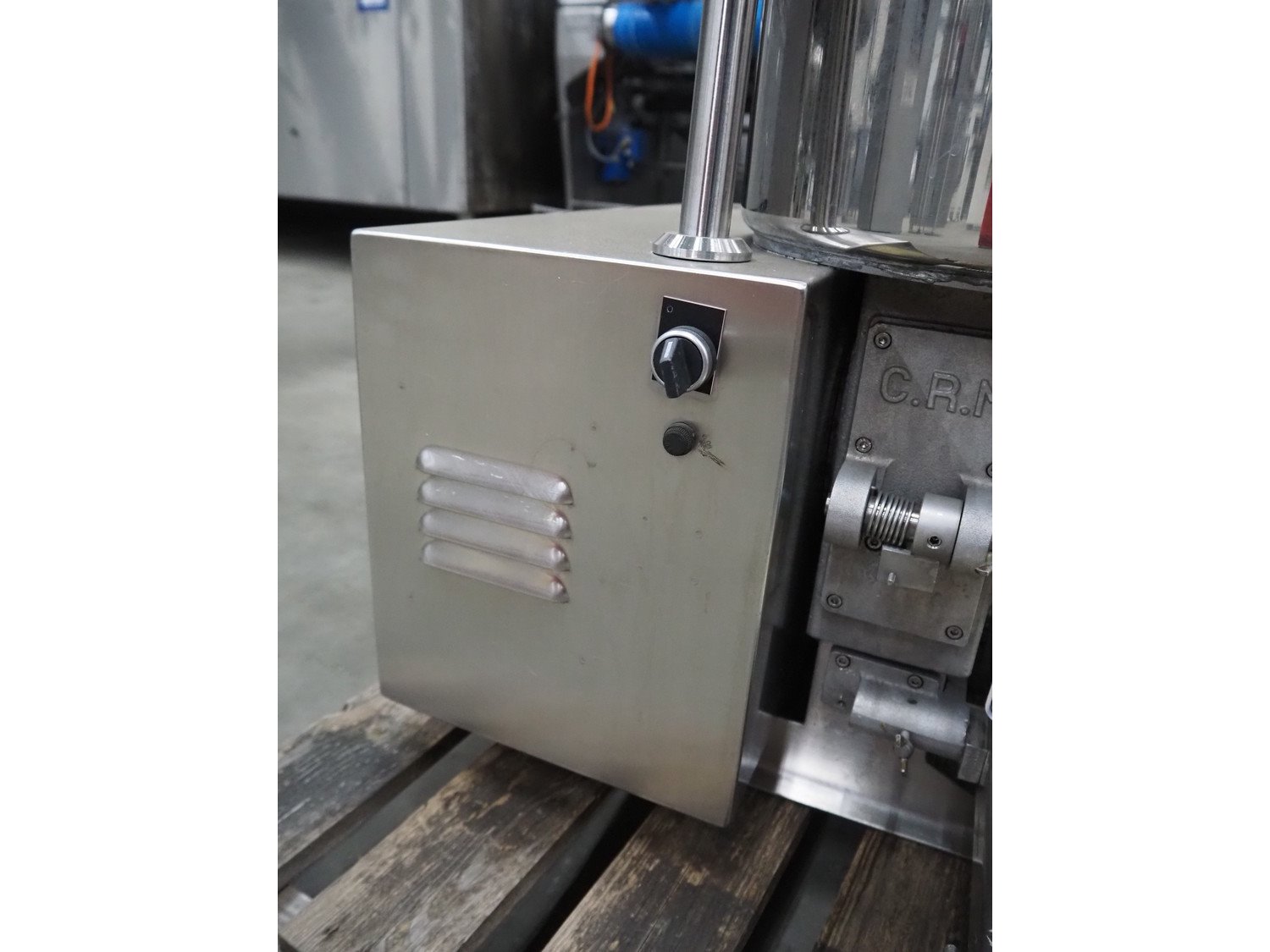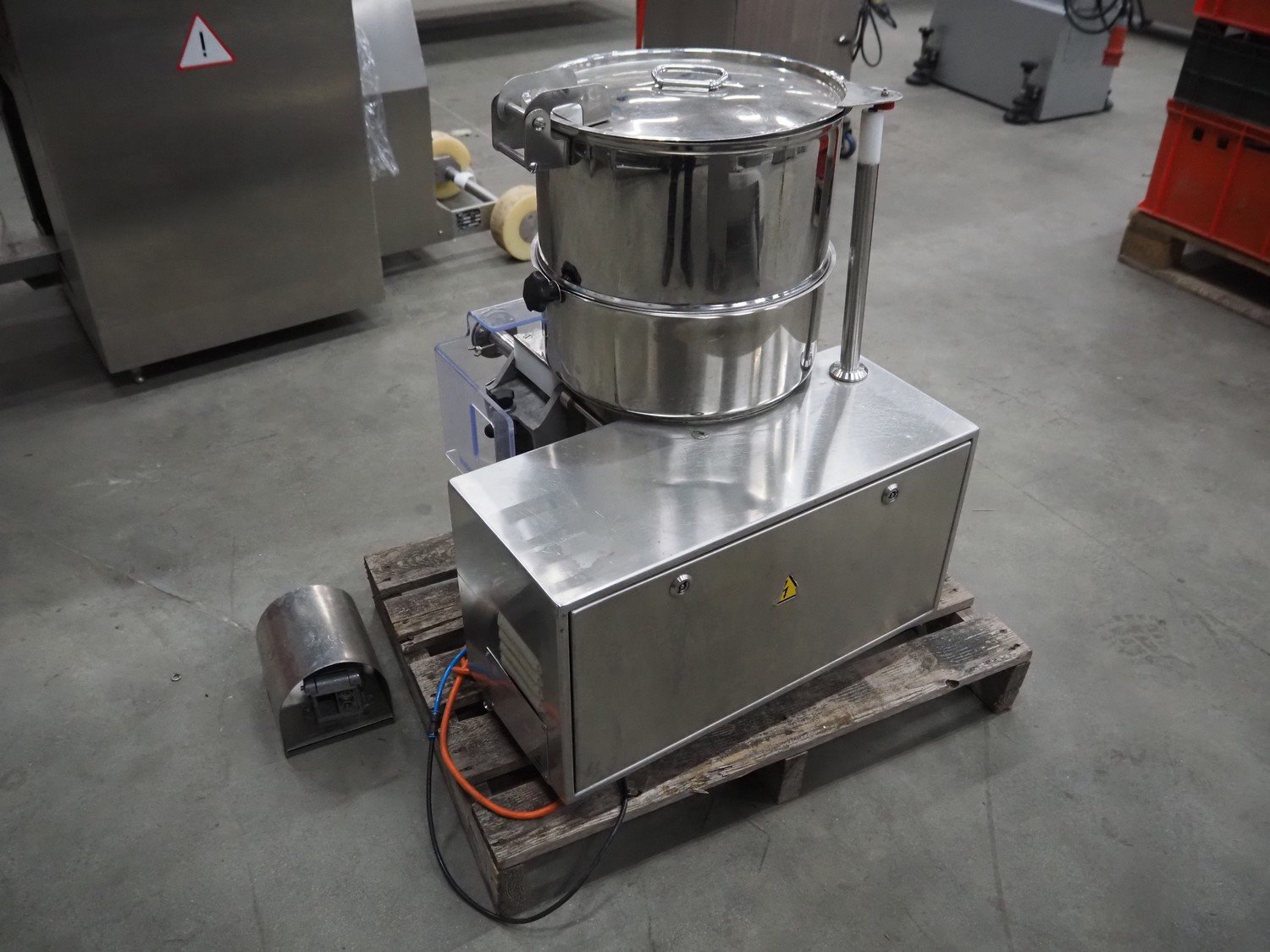 De Jong Engineering 't Harde B.V. hamburger forming machine, machine type: planu, serial number: 469, year of construction: 2000, 230 V, plastic belt, belt width: 130 mm, diameter dye: 80 mm, total dimensions: 750 mm x 600 mm x 750 mm.
