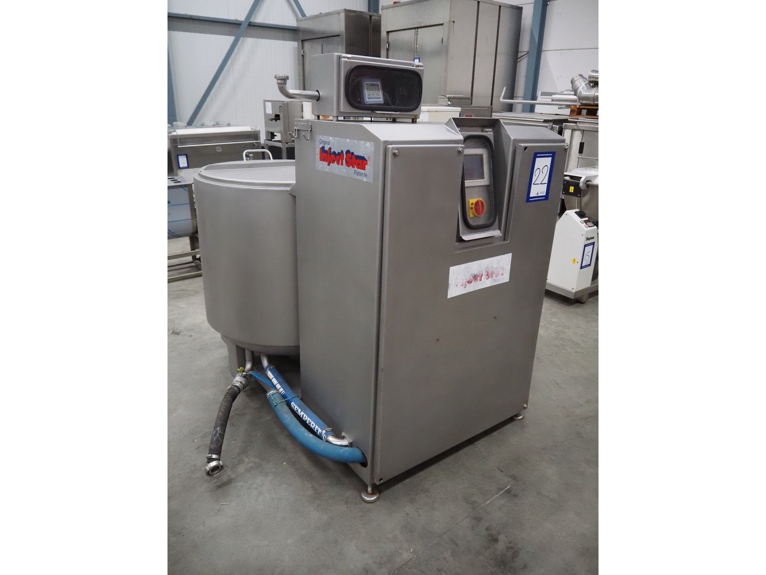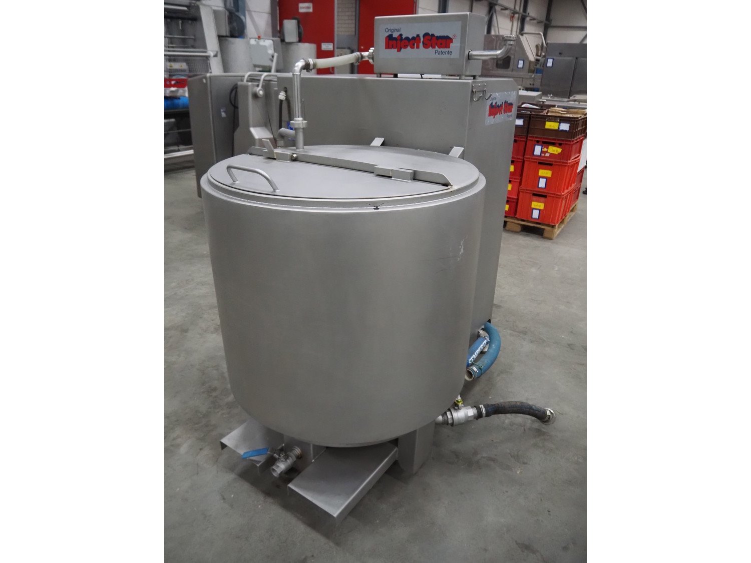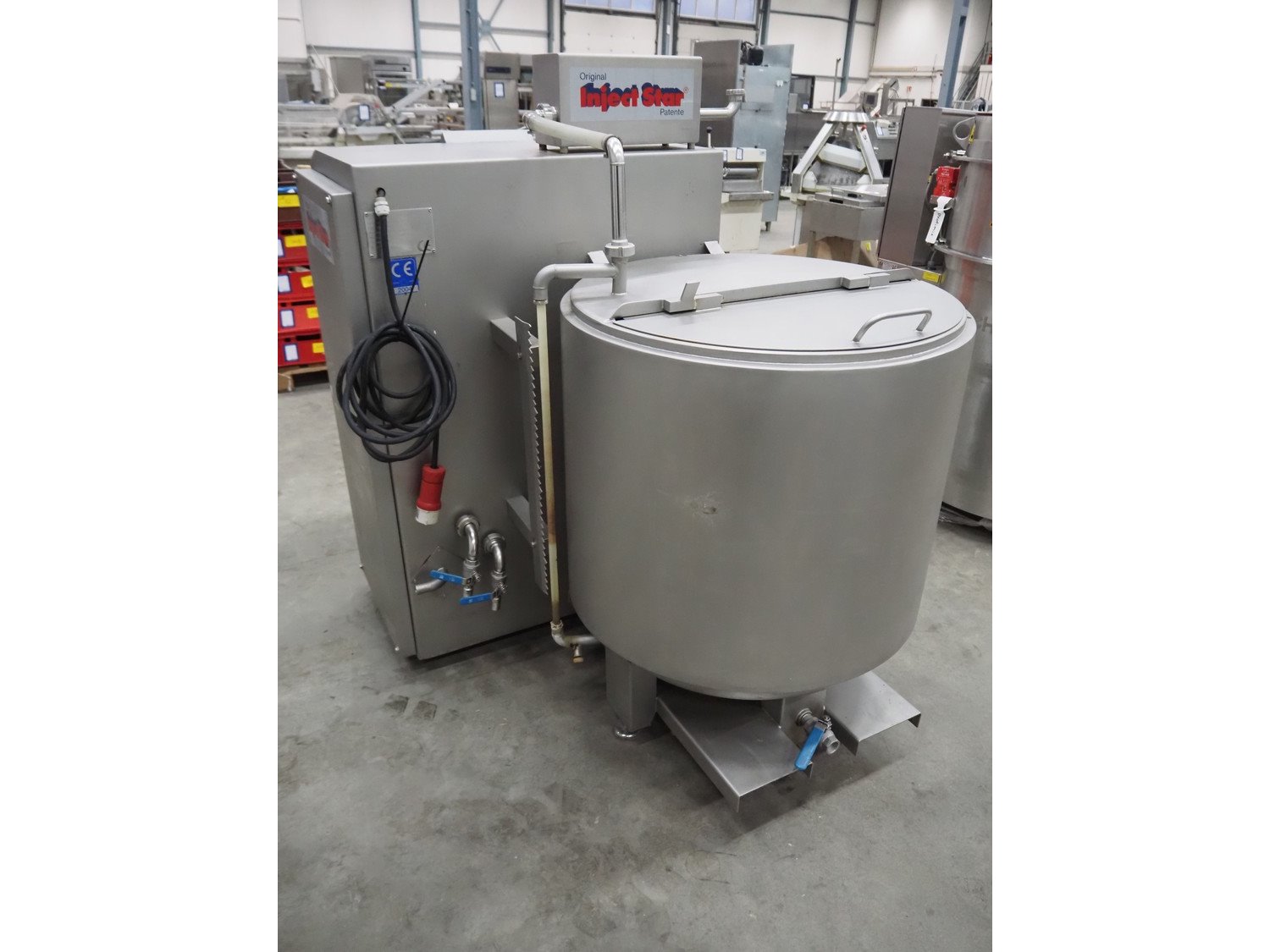Pökelmaschinen Ges.m.b.H. brine mixer, type: CLB-400, number: K-73, year of construction: 2004, 400 V, 3 Ph, 50 Hz, 6 kW, volume: 400 liter, total dimensions: 1550 mm x 1250 mm x 1600 mm.