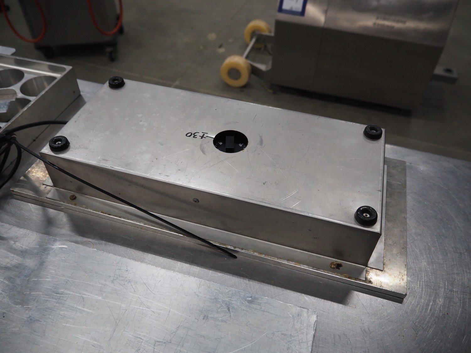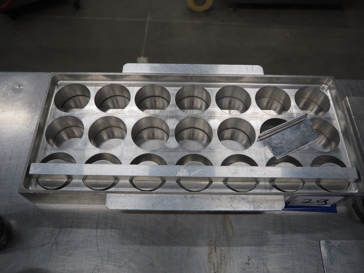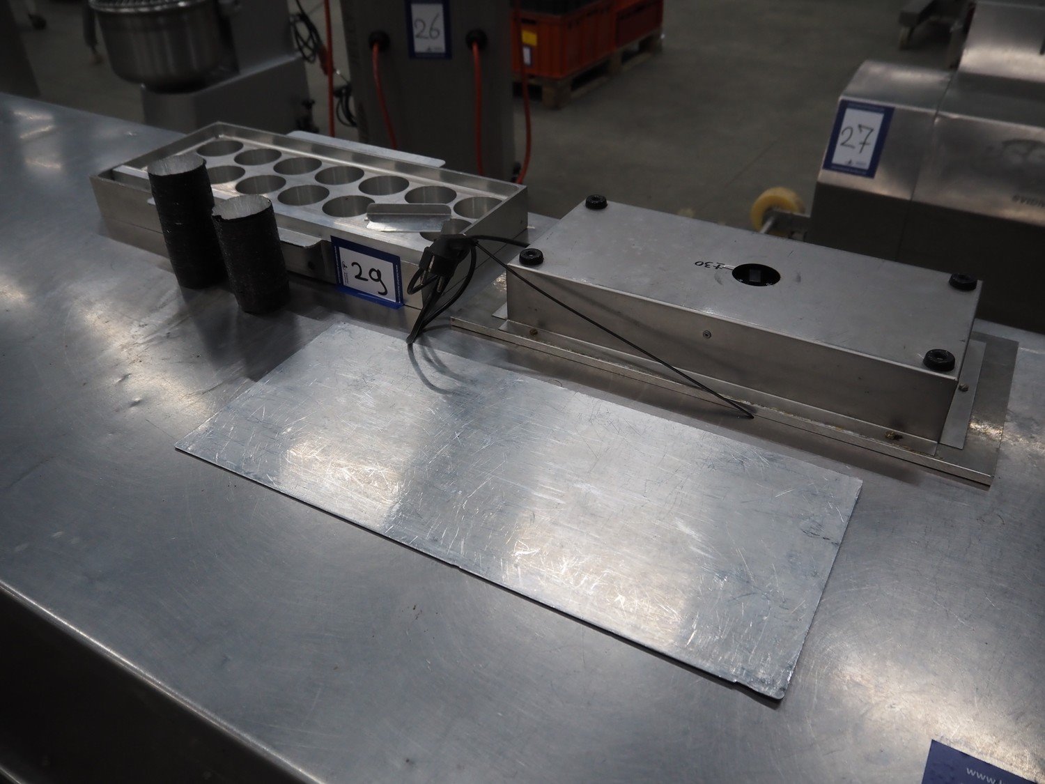 S/s filling frame with cooling plate, diameter dyes: (21x) 70 mm, total dimensions: 560 mm x 300 mm x 60 mm. Cooling plate dimensions: 560 mm x 245 mm x 90 mm.