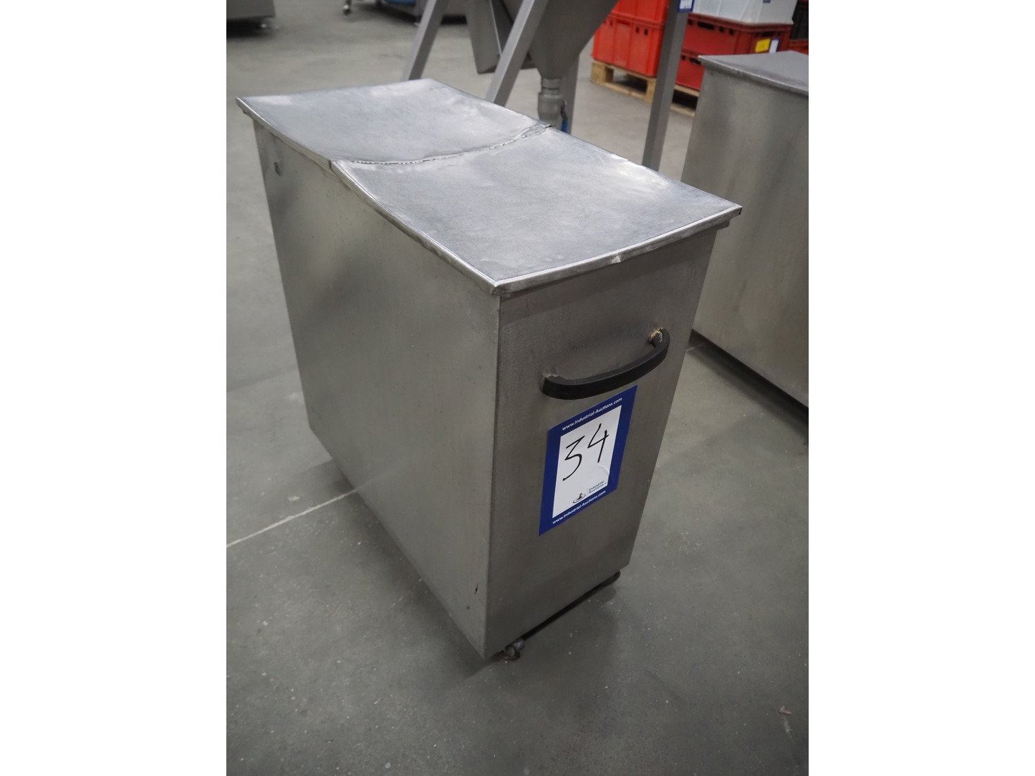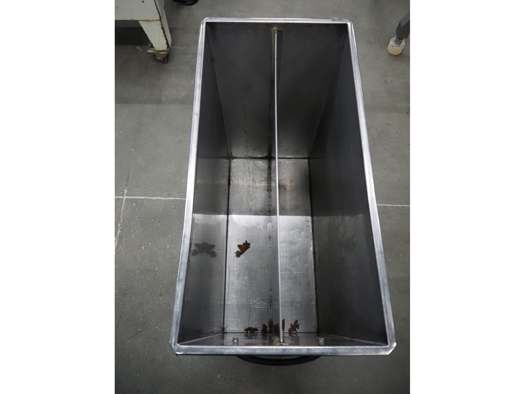 S/s trolley, inside dimensions: (2x) 640 mm x 150 mm x 620 mm, dimensions: 700 mm x 330 mm x 750 mm.
