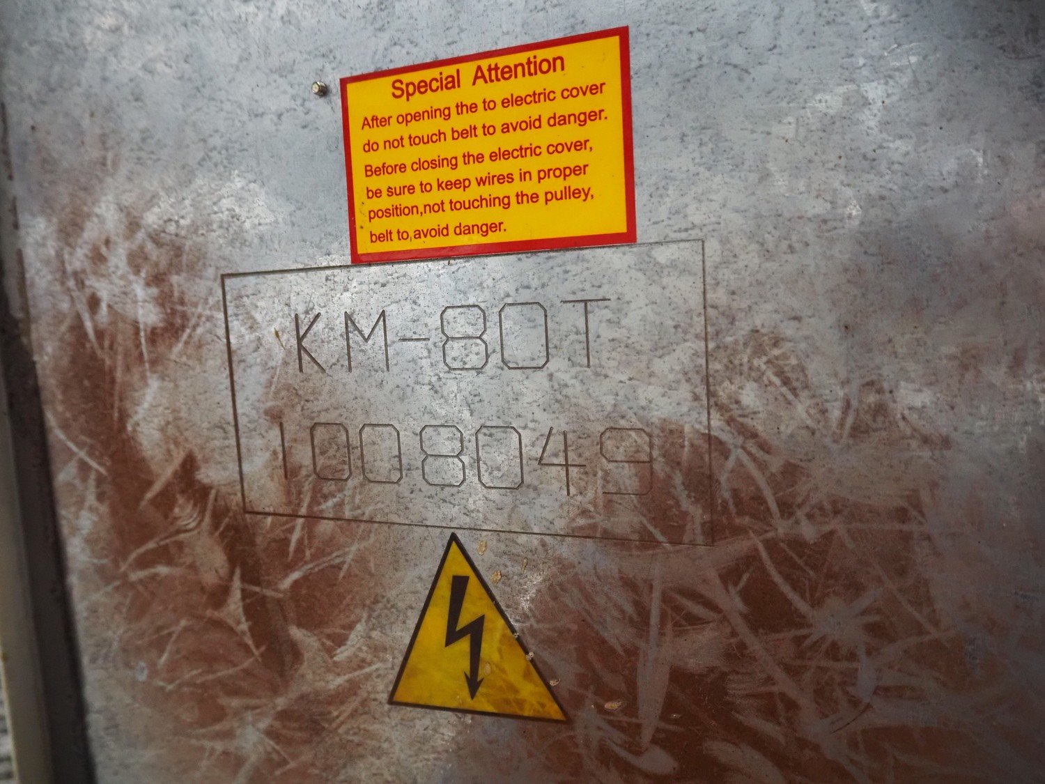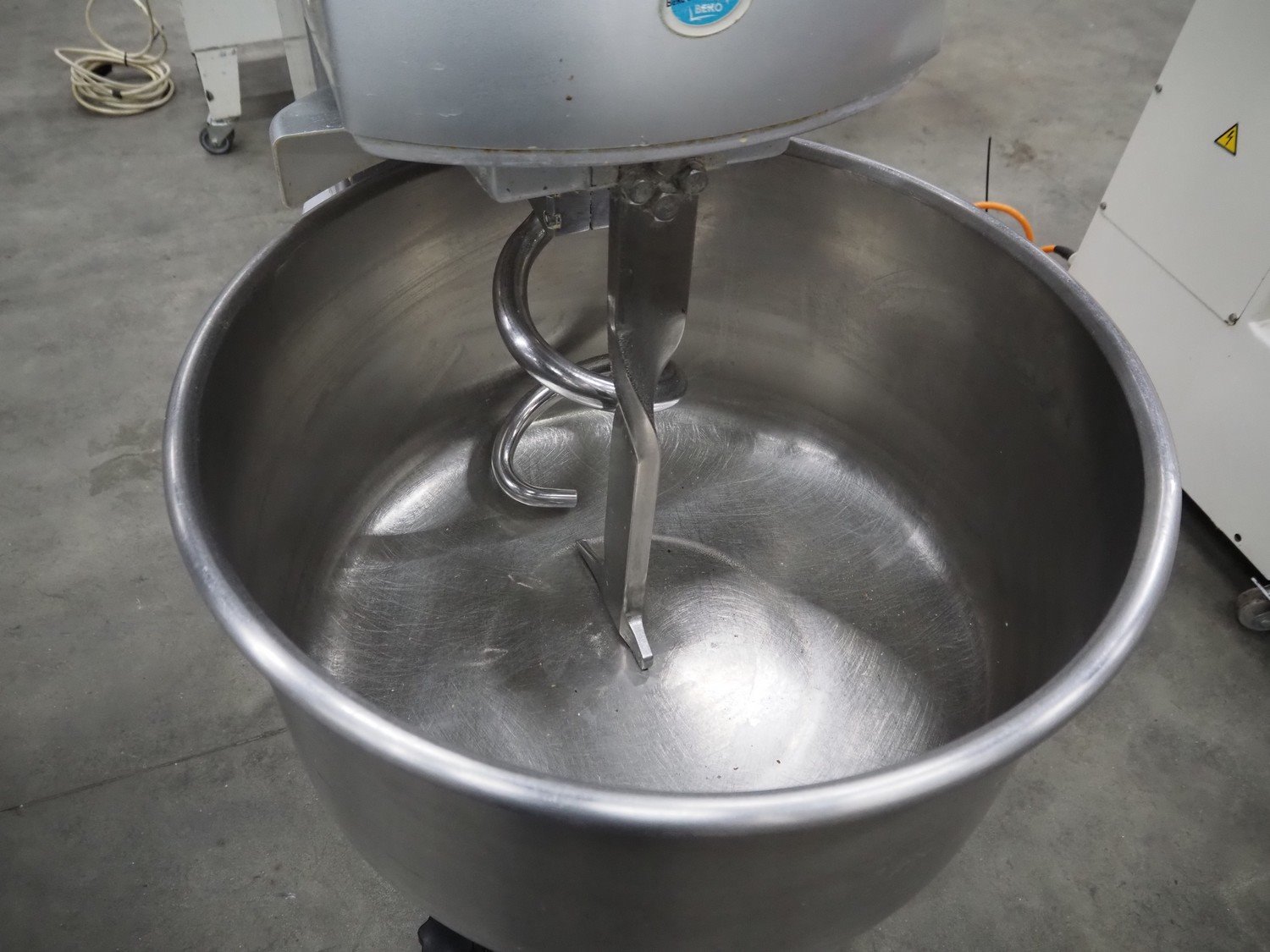 Sinmag Bakery Equipment spiral mixer, model: KM-80T, serial number: 1008049, year of construction: 2011.01, 380 V, 3 Ph, 50 Hz, 12.3 A, 5.25 kW, machine weight: 390 kg, capacity: 80 kg dough, s/s bowl, bowl dimensions: Ø 670 mm x 380 mm, total dimensions: 1250 mm x 700 mm x 1300 mm.