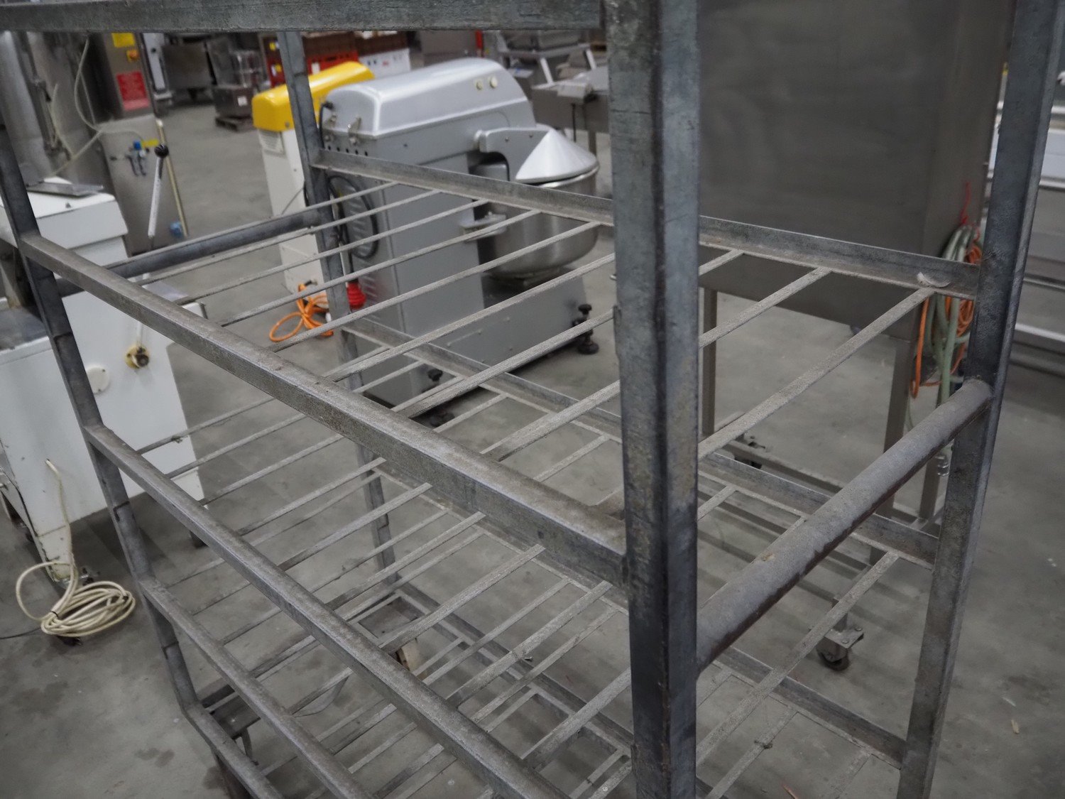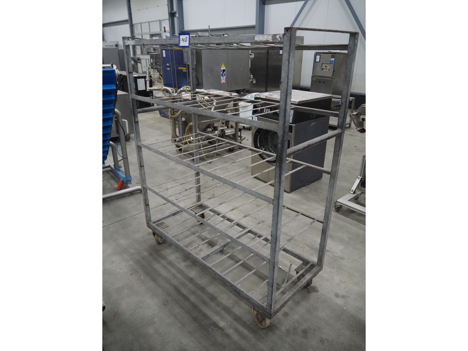 Steel trolley, 5 floors, dimensions floors: (5x) 1400 mm x 600 mm, dimensions: 1400 mm x 600 mm x 1730 mm.