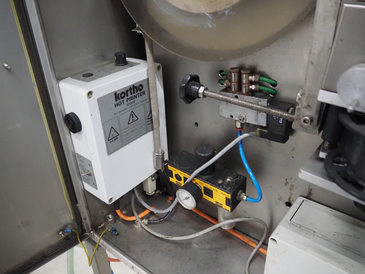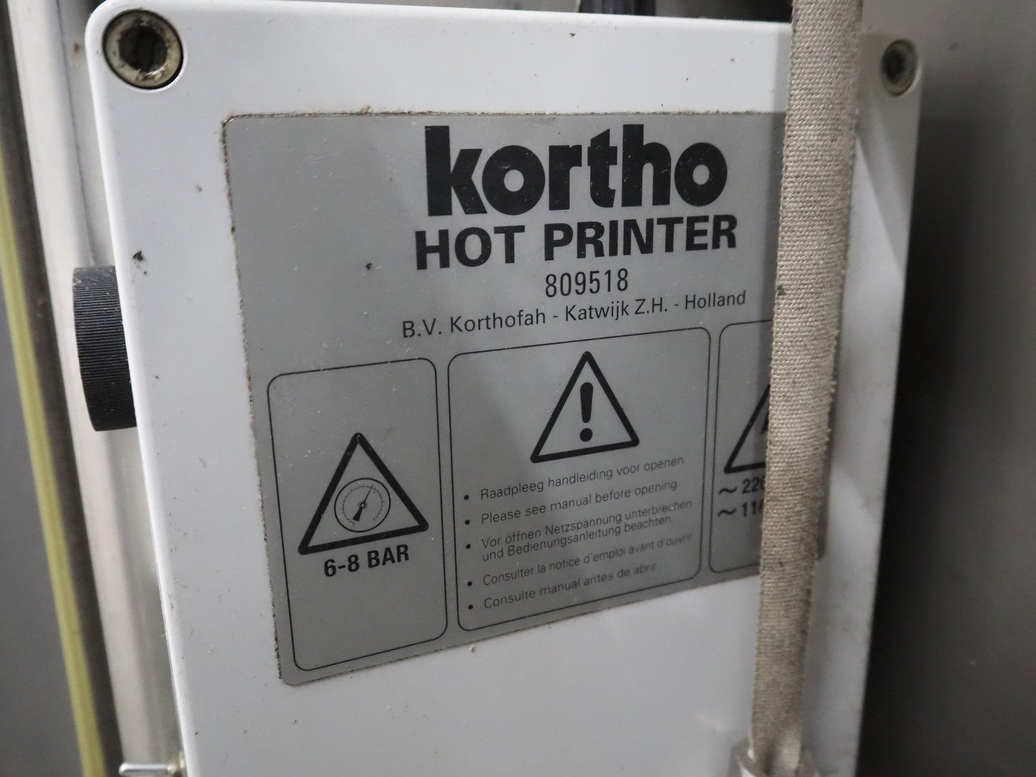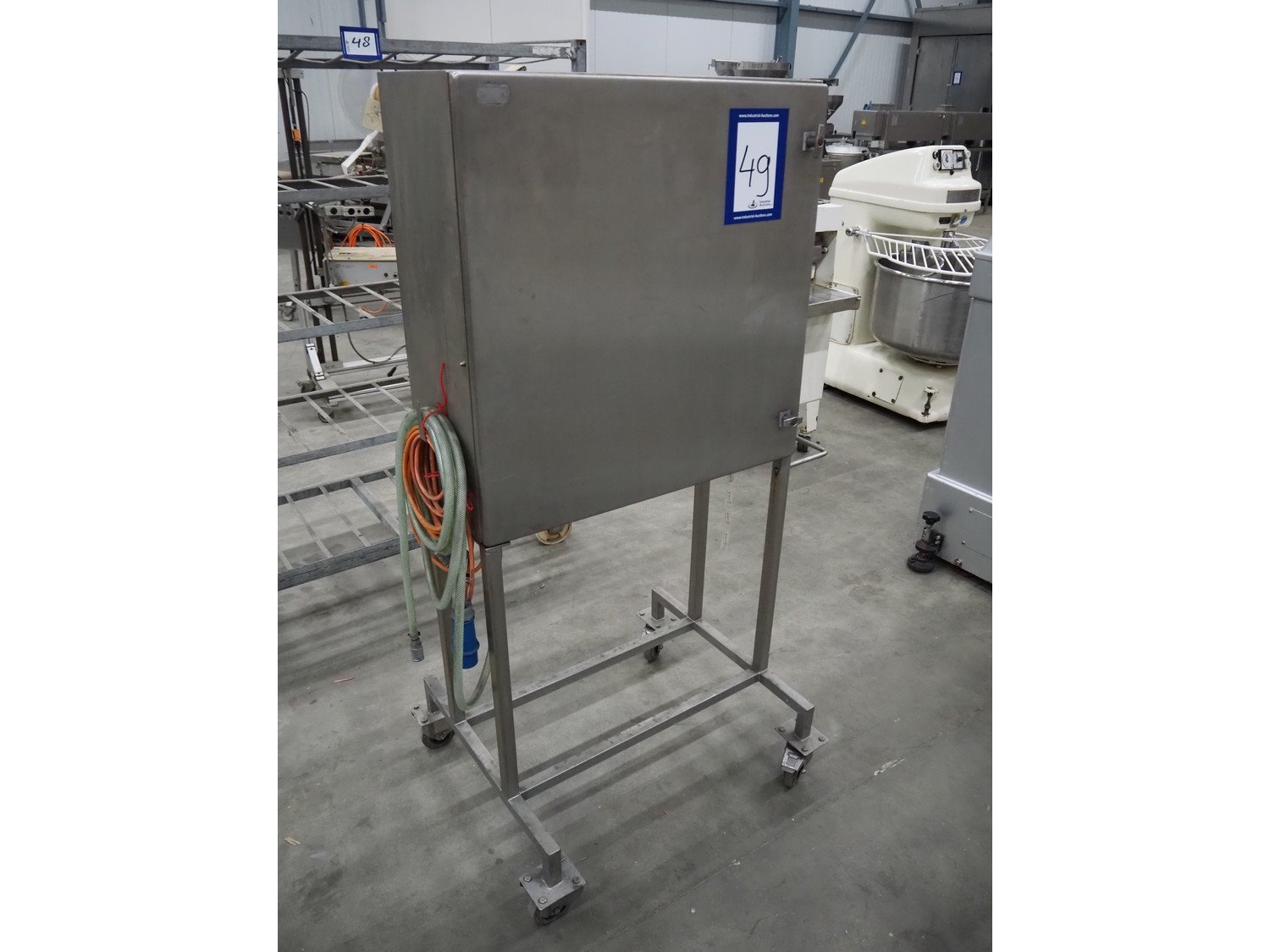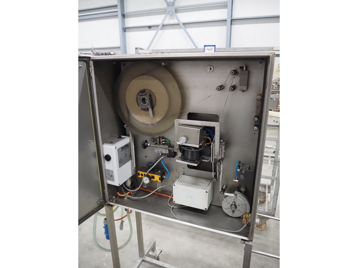 Kortho label printer in mobile s/s cabinet, type: 809518, dimensions: 960 mm x 750 mm x 1670 mm.