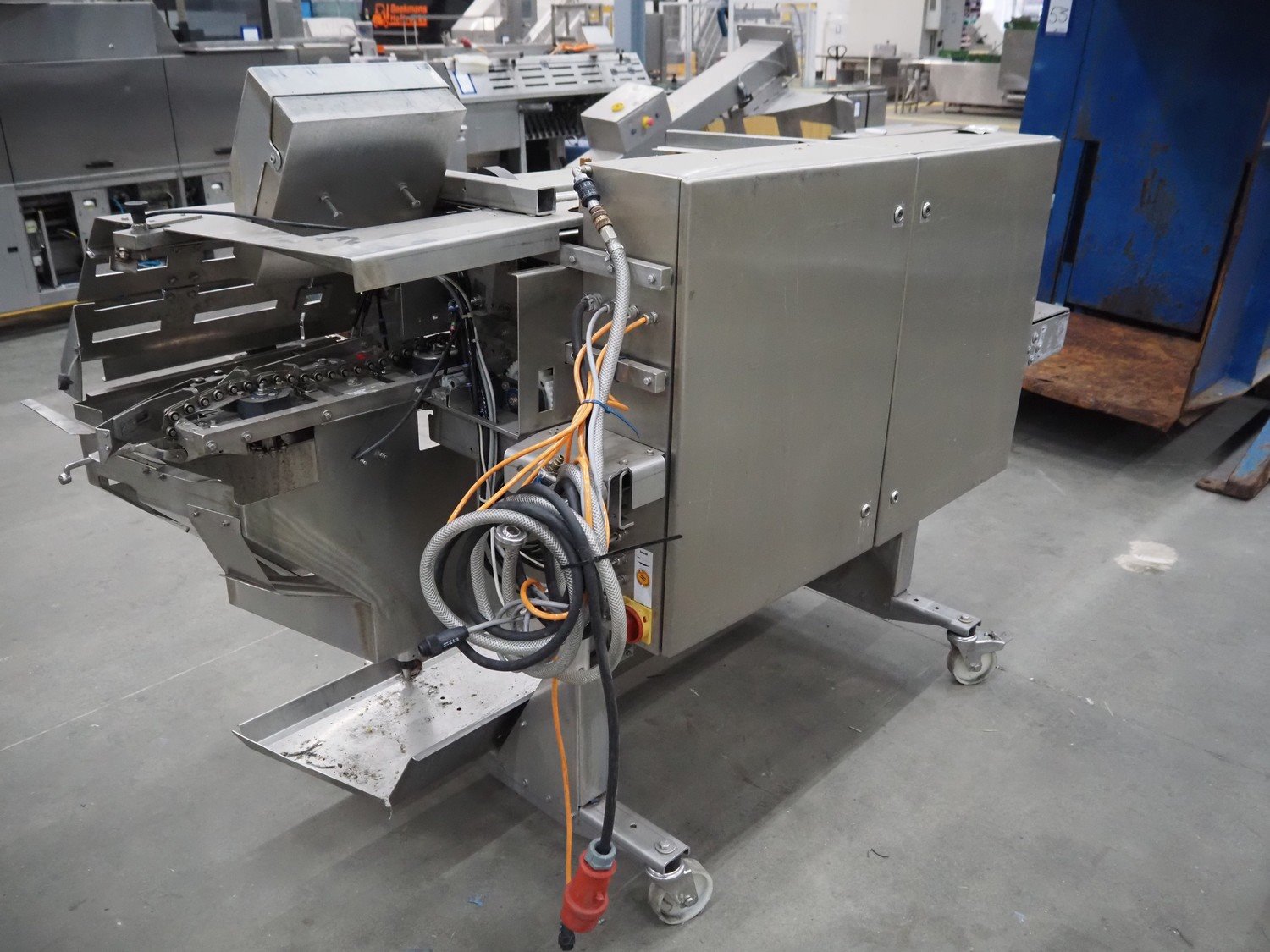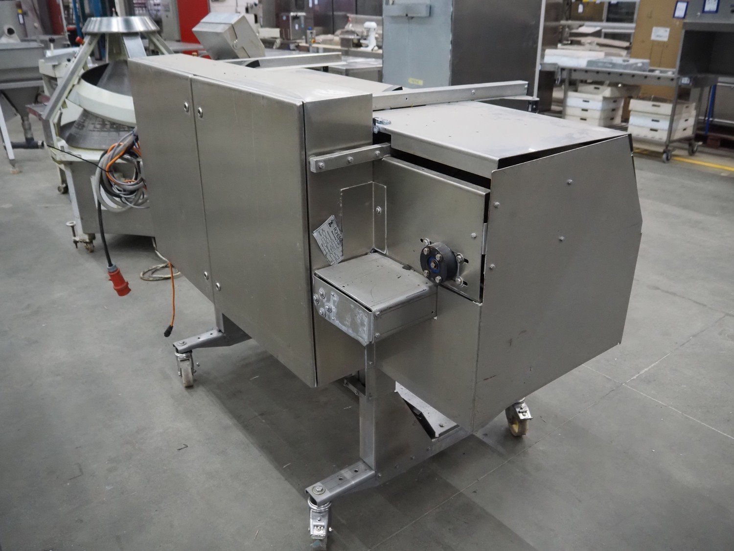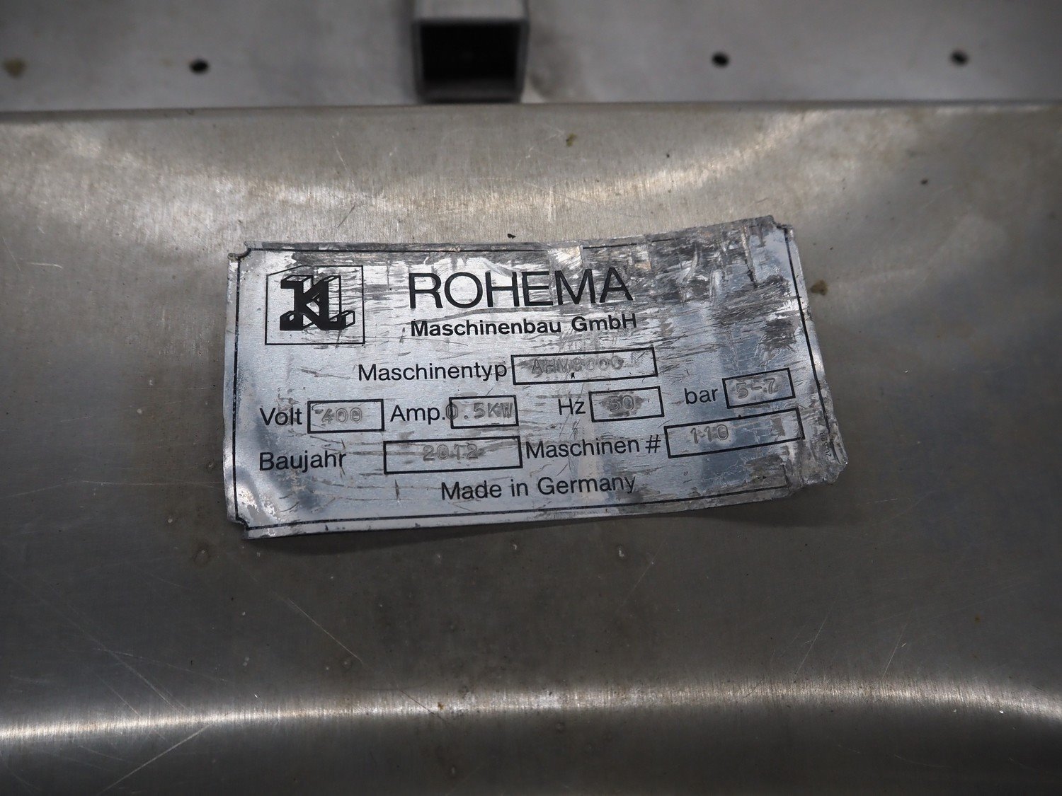 Rohema Maschinenbau GmbH mobile hanging line for sausages, type: AHV8000, number: 110, year of construction: 2012, 400 V, 50 Hz, 0.5 kW, 5-7 bar, dimensions: 2200 mm x 1200 mm x 1600 mm.