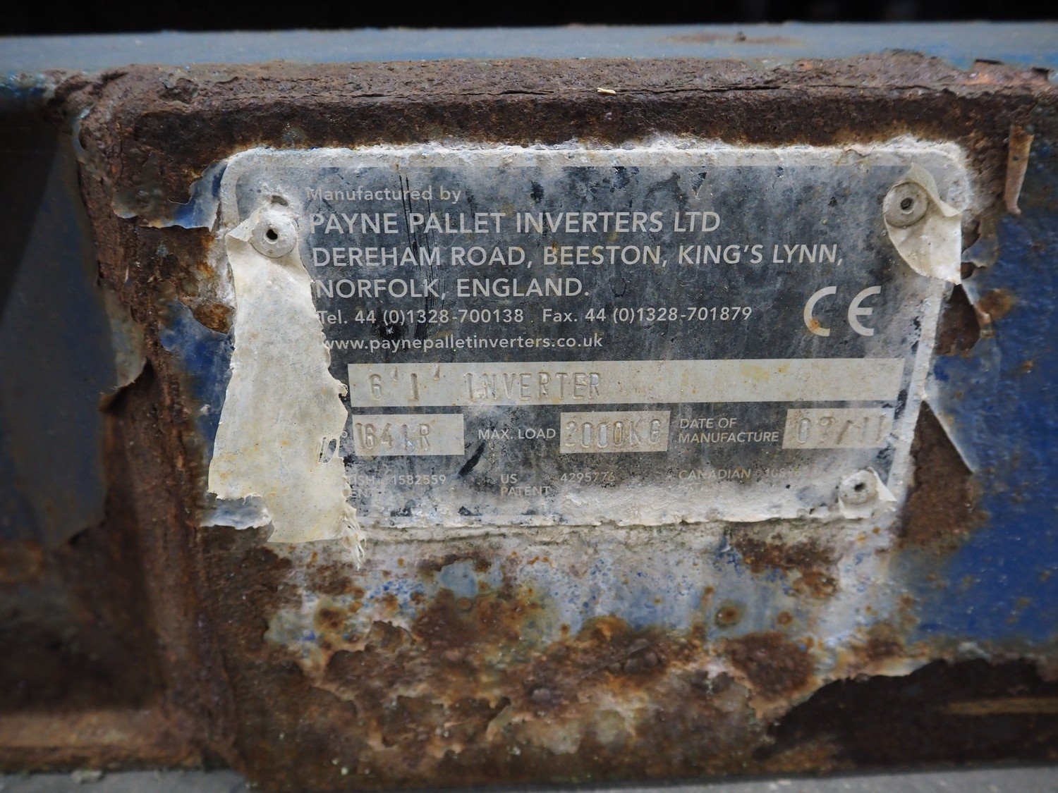 Payne pallet inverters pallet destacker, type: 6 I INVERTER, number: I64IR, year of construction: 07/11, capacity: 2000 kg, total dimensions: 2050 mm x 1800 mm x 2270 mm.