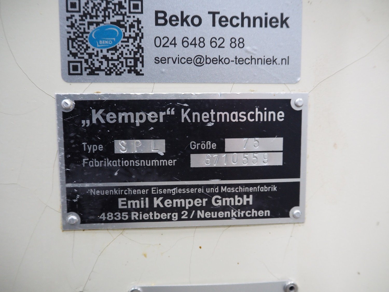 Emil Kemper GmbH mobile mixer, type: SPL, number: 6710559, capacity: 75 kg dough, s/s bowl, bowl dimensions: Ø 760 mm x 400 mm, total dimensions: 1150 mm x 800 mm x 1380 mm.