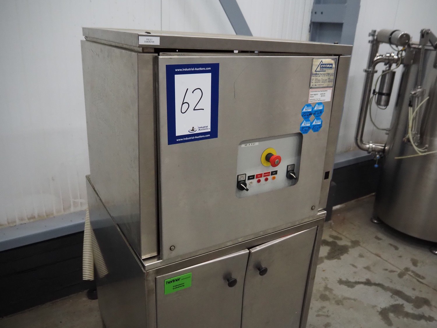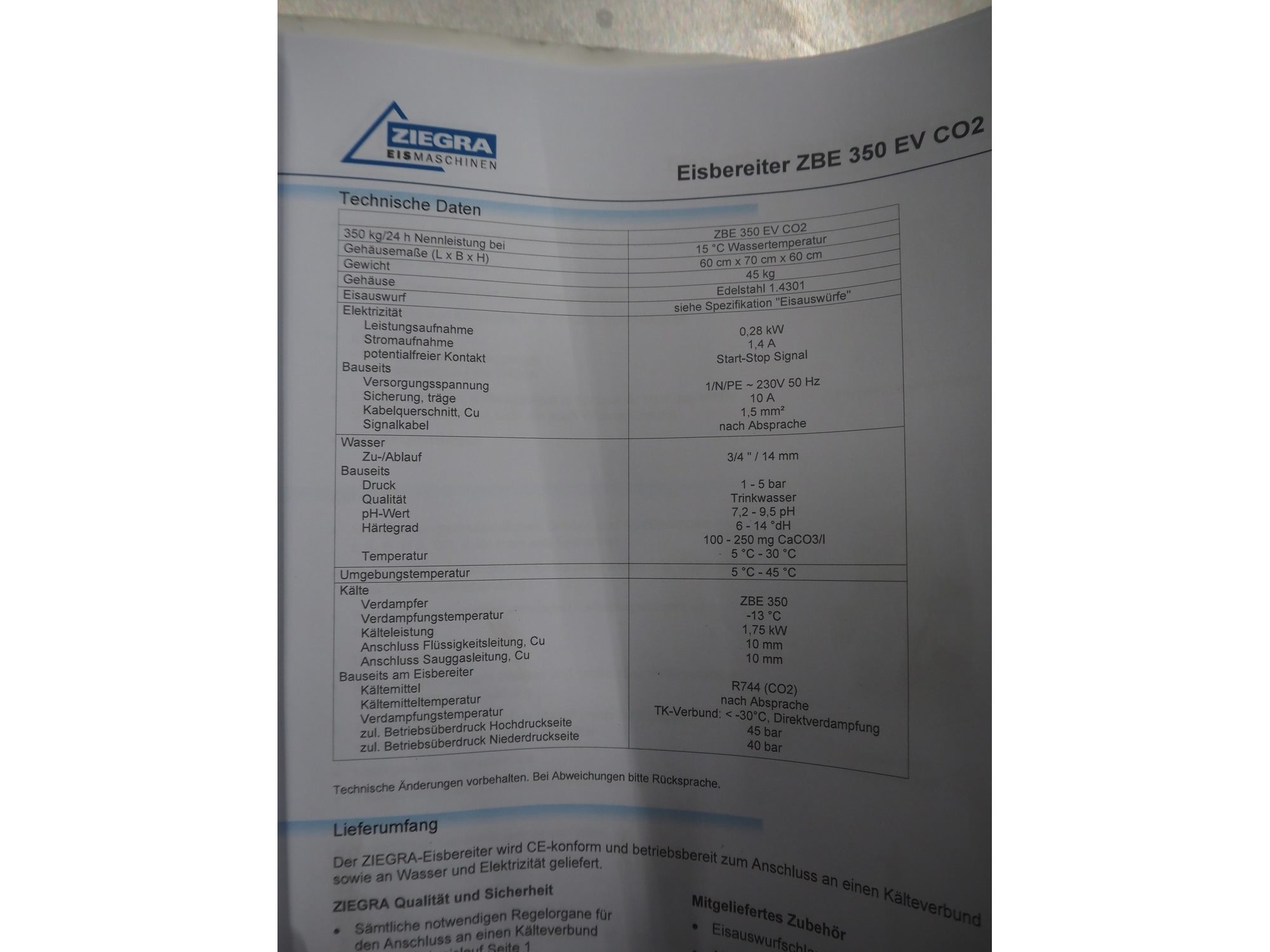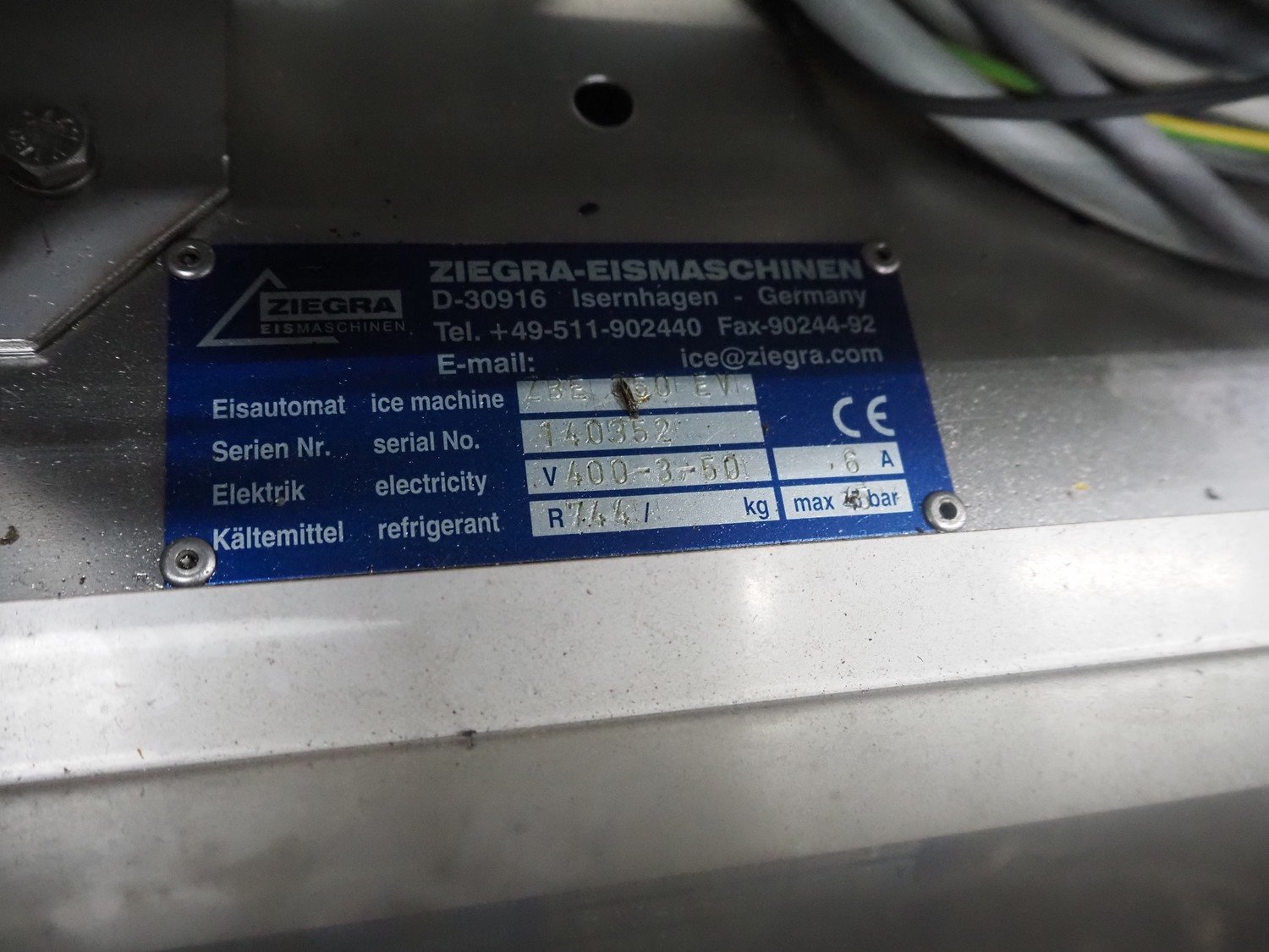 Ziegra-Eismaschinen flake ice machine with BWT water softener, type: ZBE 350 EV, serial number: 140352, 400 V, 3 Ph, 50 Hz, 6 A, refrigerant: R744, dimensions: 700 mm x 750 mm x 1600 mm.