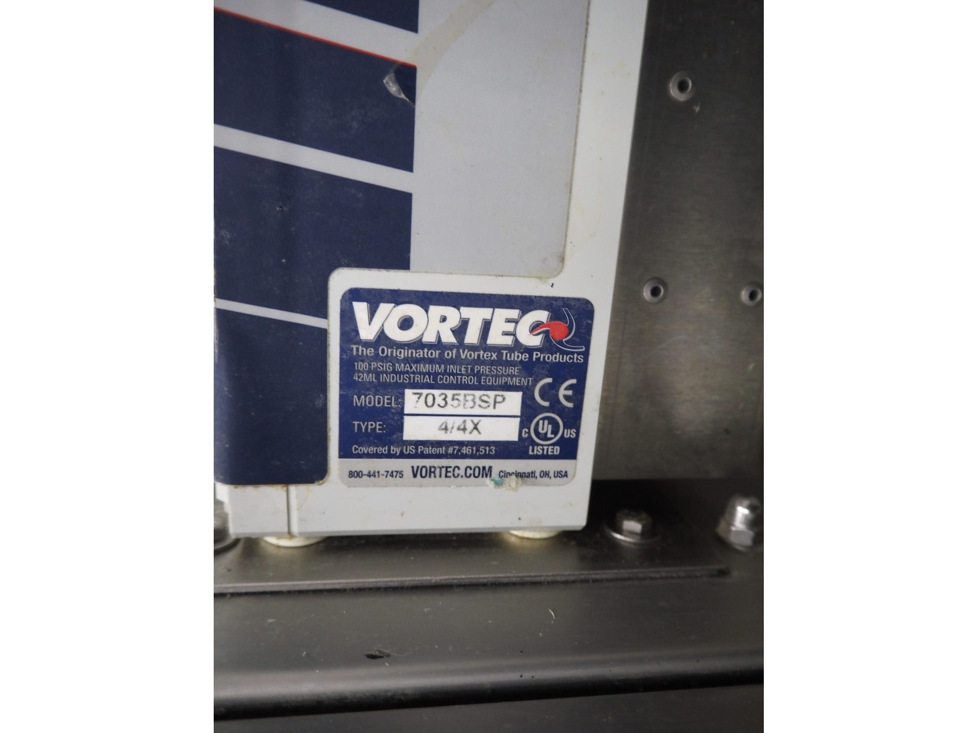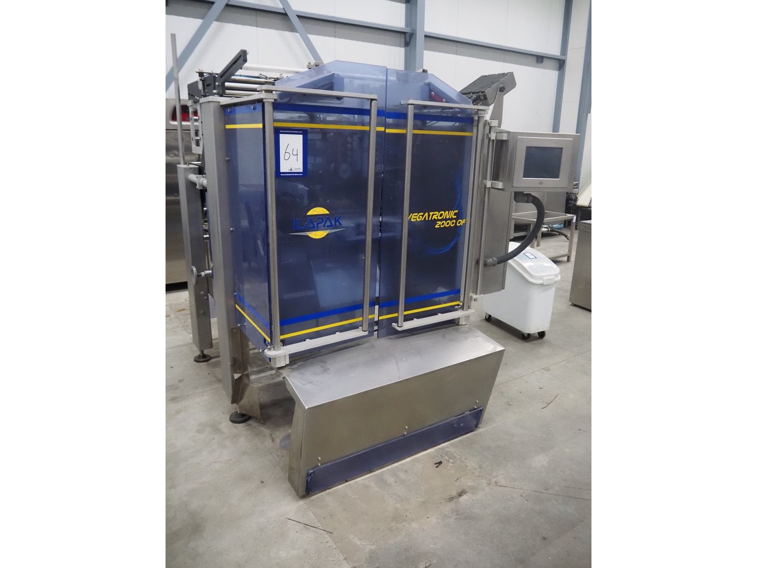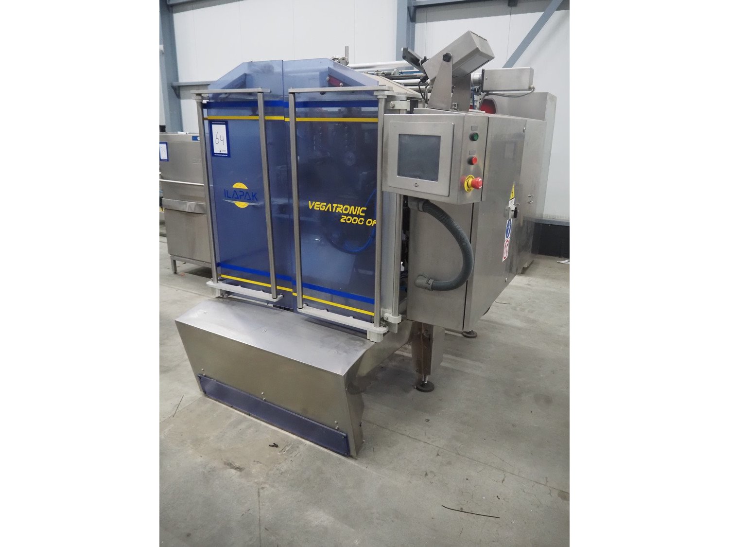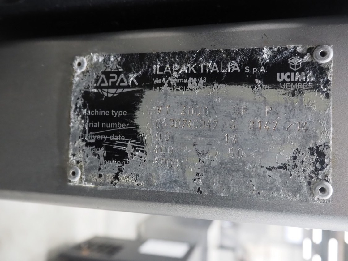Ilapak vertical bag form-, fill-, and seal machine, model: VT 2000 OF P, serial number: 063070047 S 3147/14, 400 V, 50 Hz, diameter filling pipe: 170 mm, vertical seal length: 400 mm, horizontal seal width: 450 mm, Videojet ink jet printer, model: 8.4 Clarity and Vortec switch cabinet cooler, model: 7035BSP, type: 4/4X, total dimensions: 1620 mm x 2380 mm x 2230 mm.