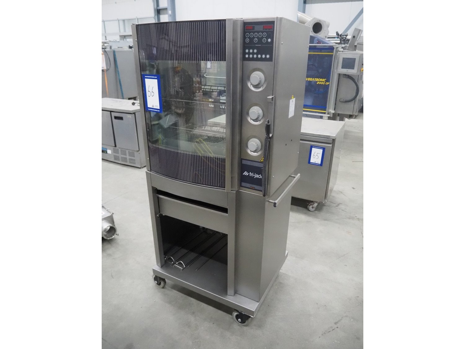 Fri-Jado b.v mobile rotary grill, model: STG5-P, number: 100027081, year of construction: 2005, 400/230 V, 50/60 Hz, 9 A, 6100 W, dimensions: 900 mm x 650 mm x 1750 mm.