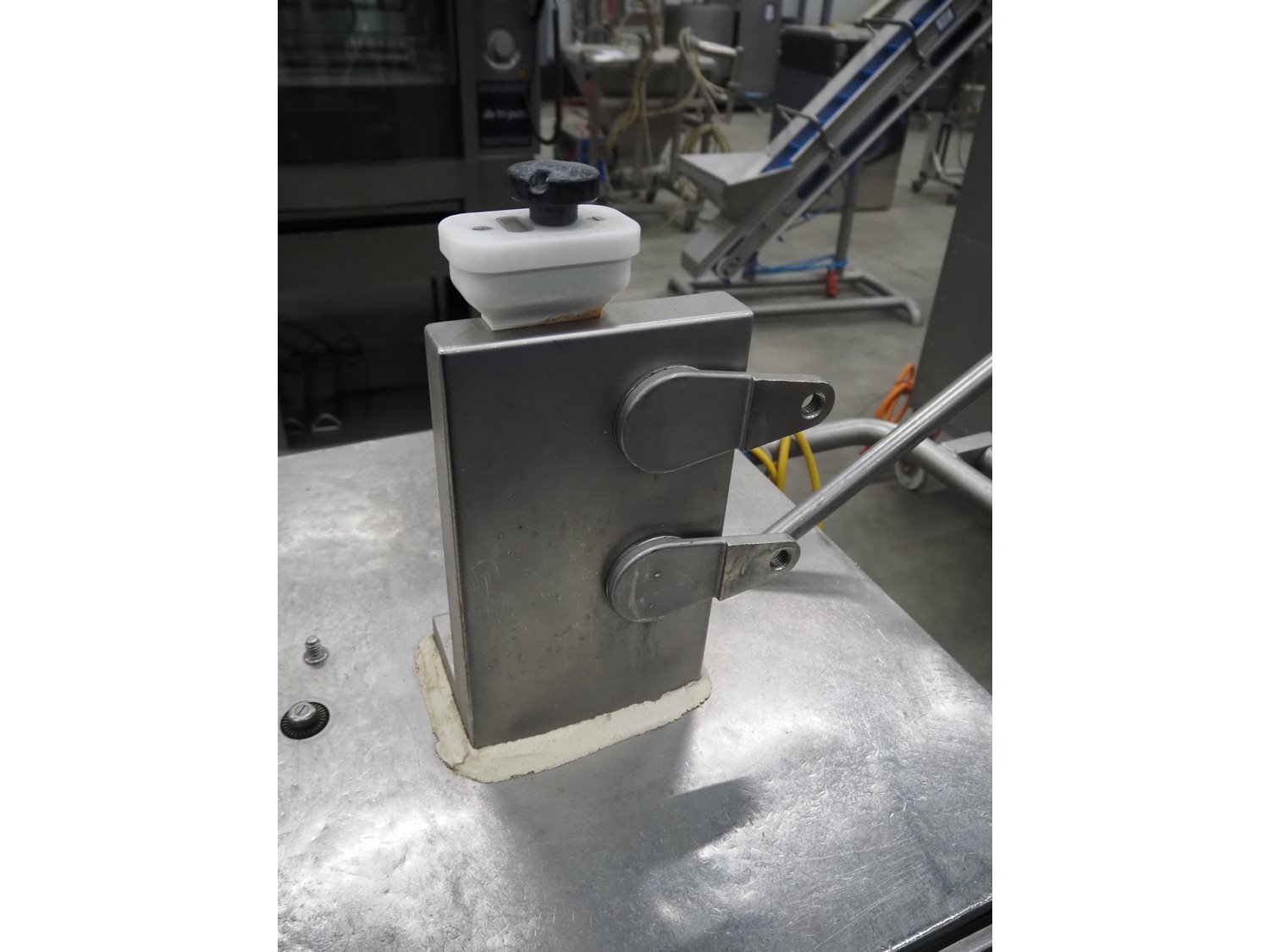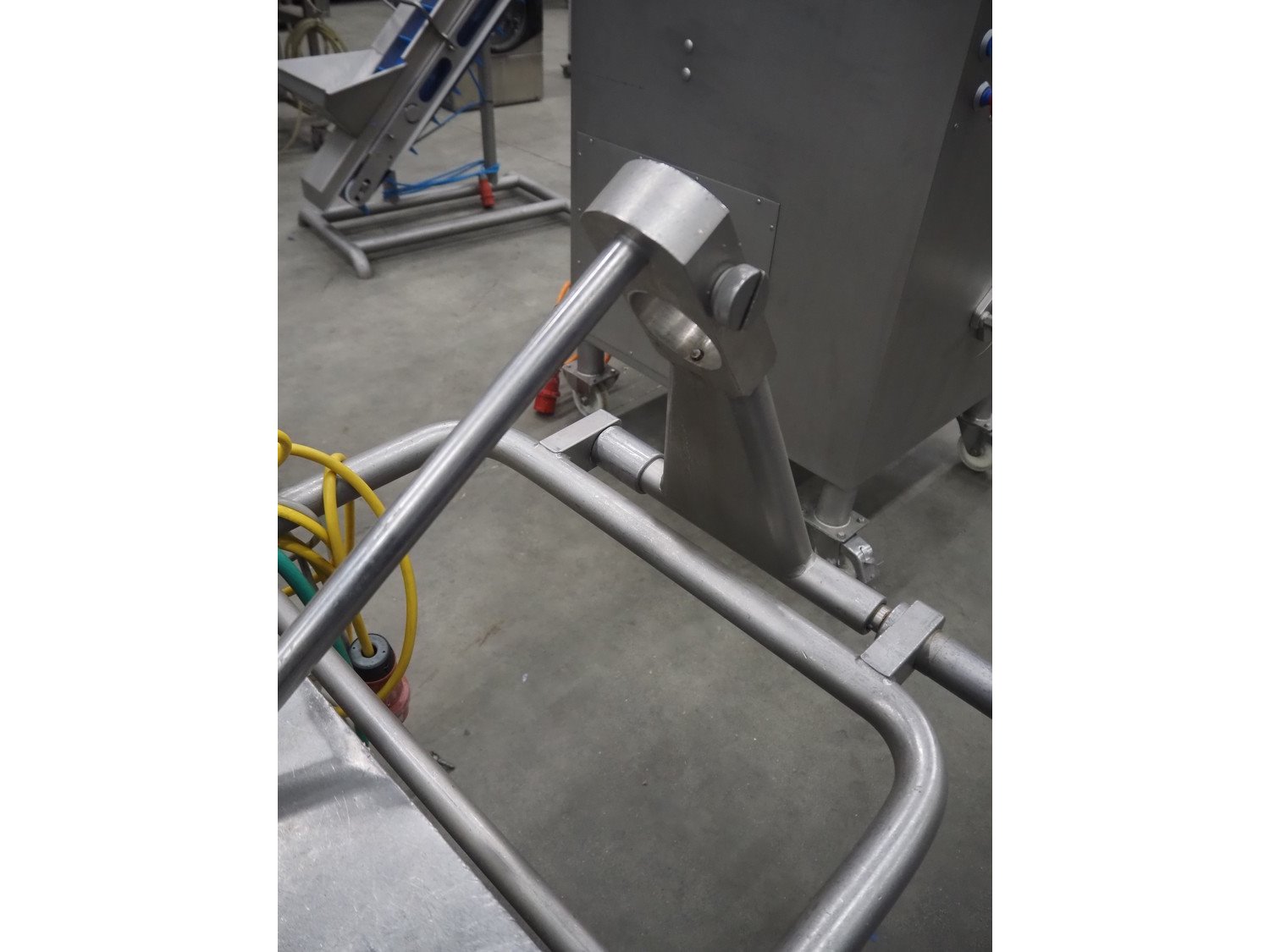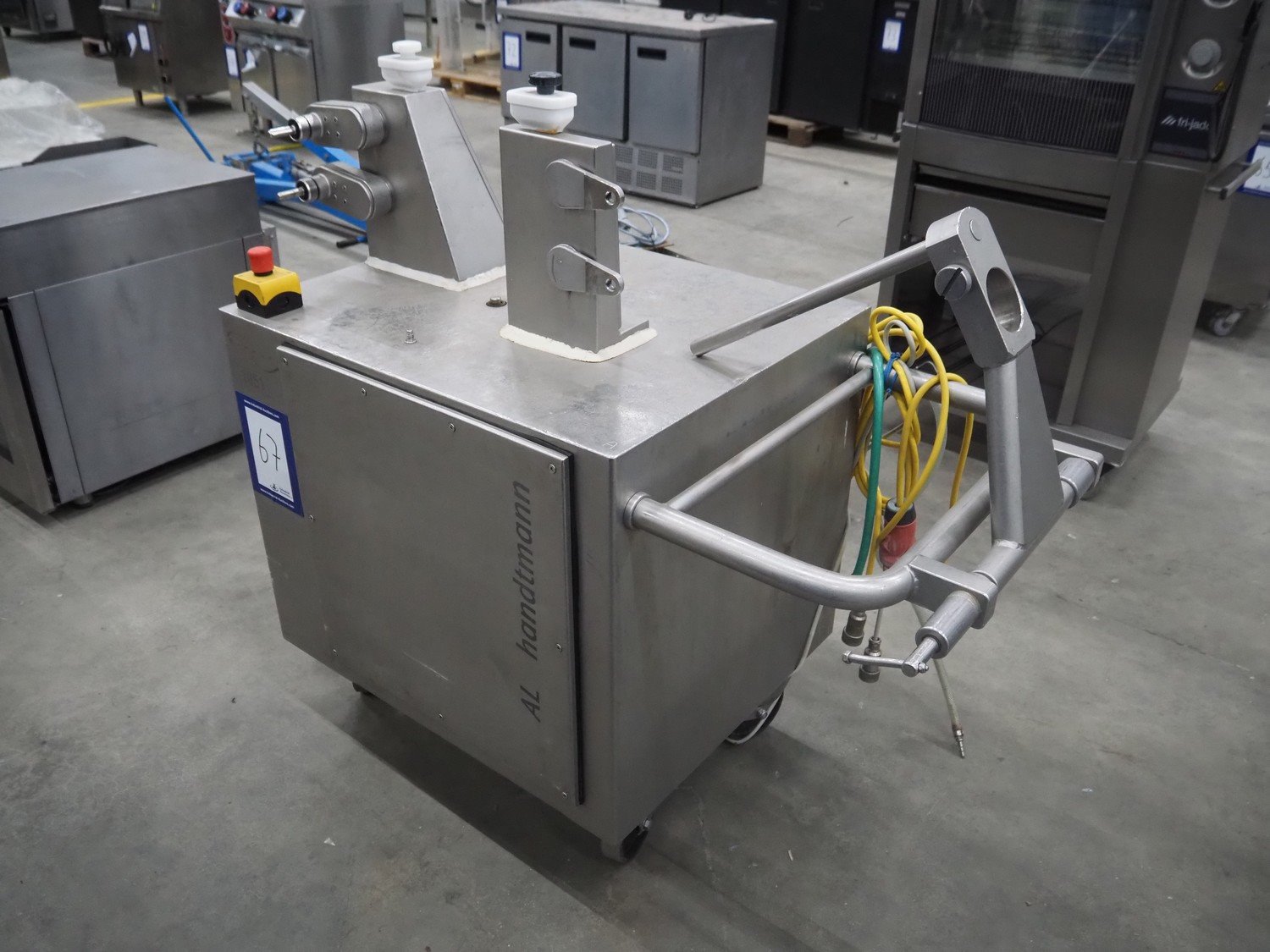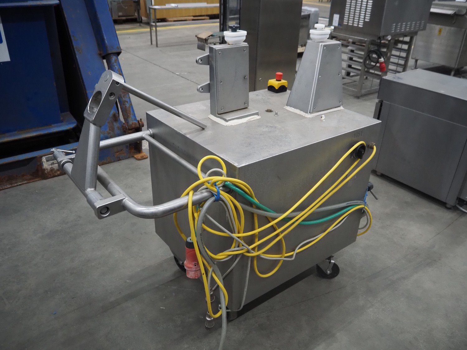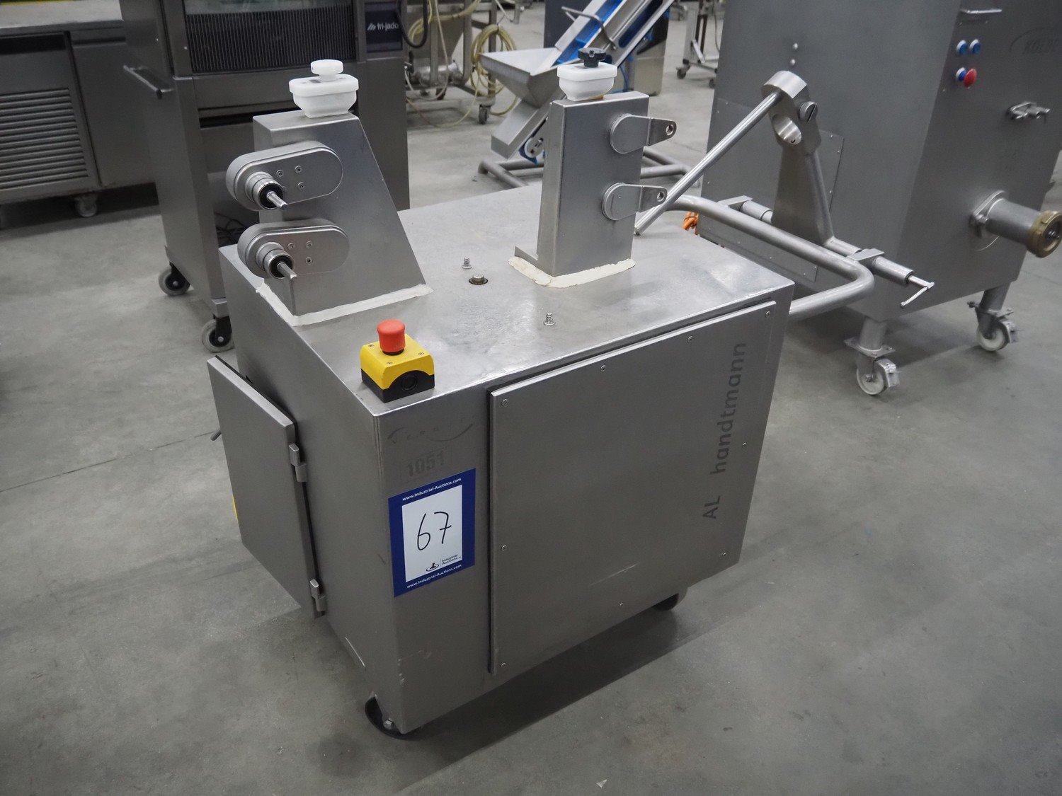 Handtmann mobile linker, type: 115-21, number: 677, year of construction: 2006, 400 V, 3 Ph, 50 Hz, 3.6 A, 2.5 kW, dimensions: 1300 mm x 700 mm x 1250 mm. Incomplete.