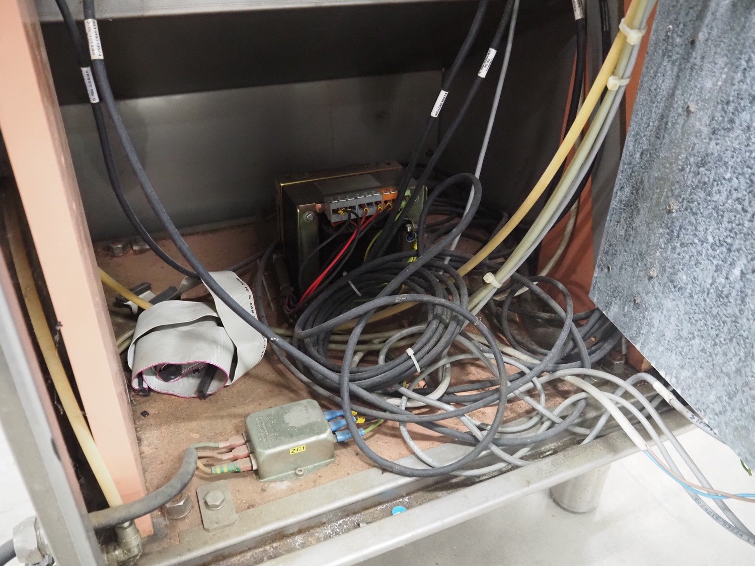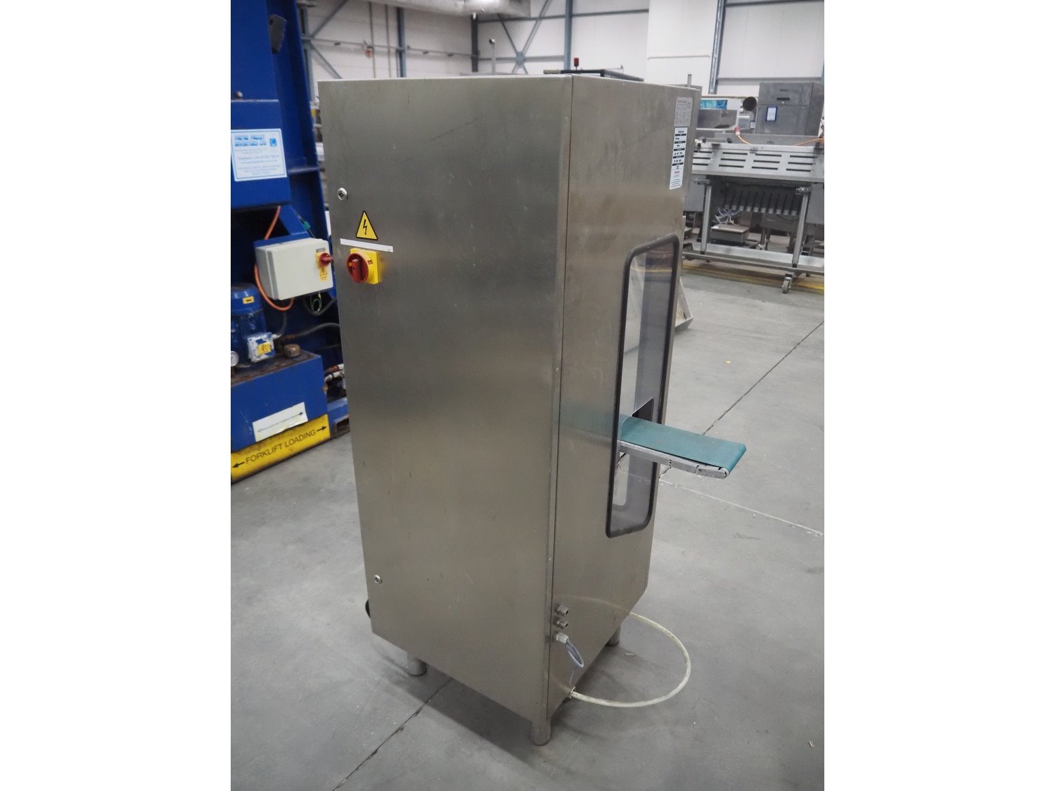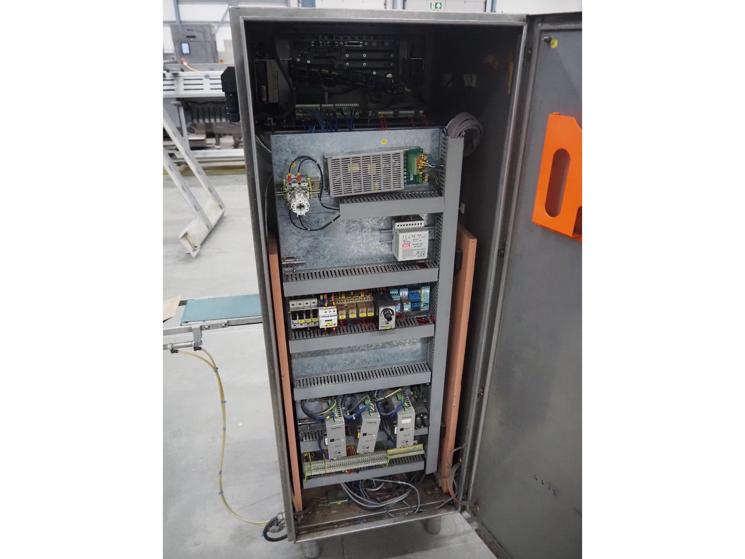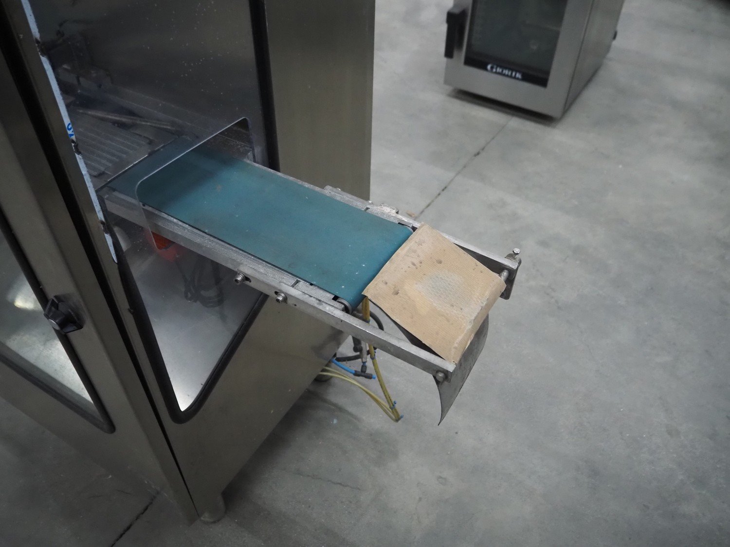 Thermo Ramsey checkweigher, model: RXM, serial number: 5774, year of construction: 2003, 230 V, 50 Hz, 0.6 kVa, plastic belt, belt width: 140 mm, total dimensions: 1080 mm x 630 mm x 1600 mm. Last calibrated: 29 July 2020.