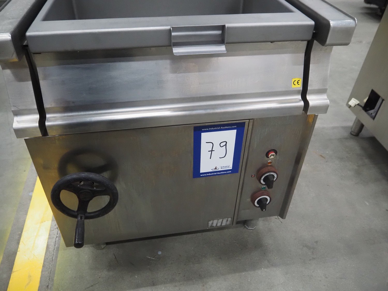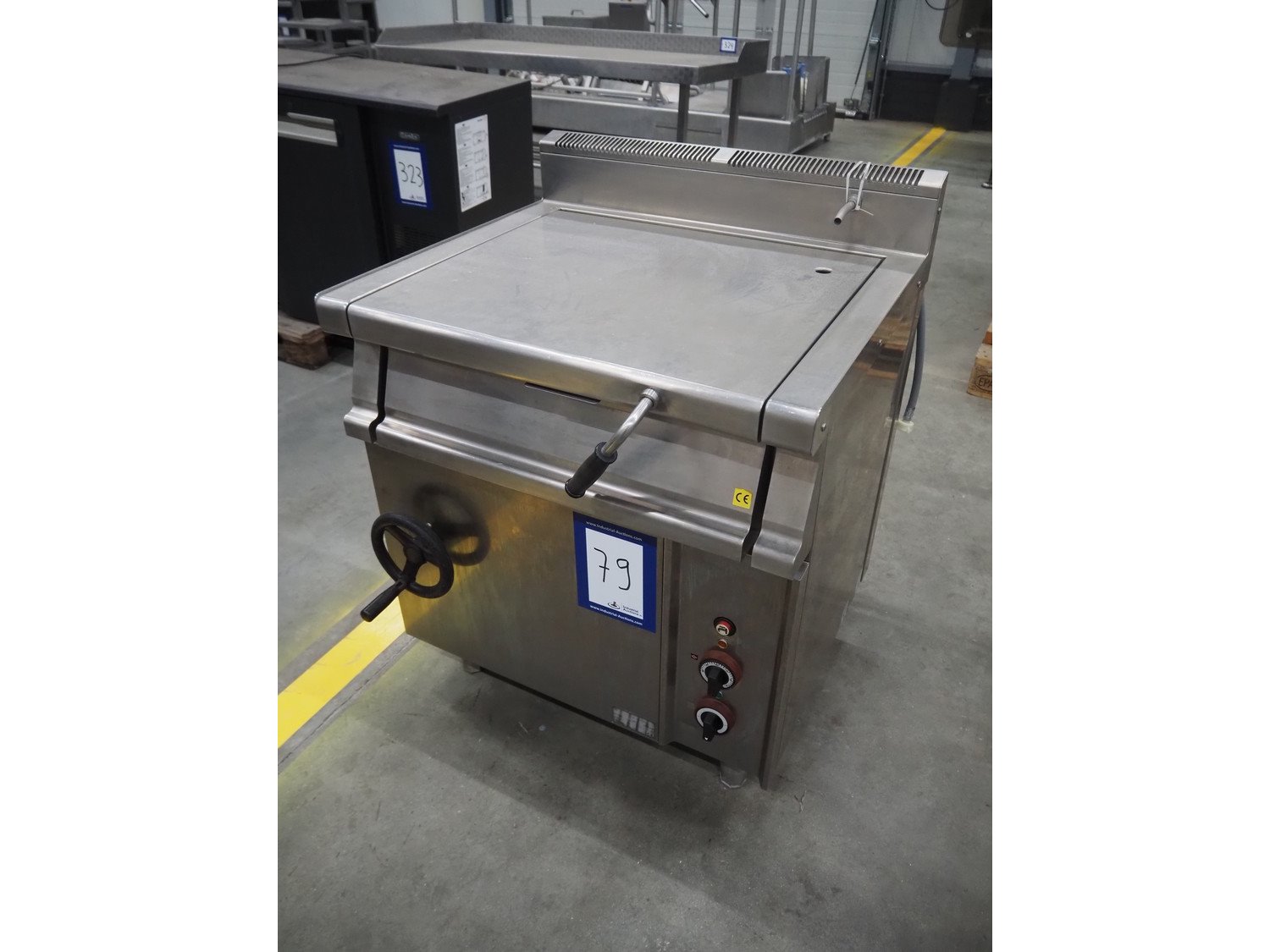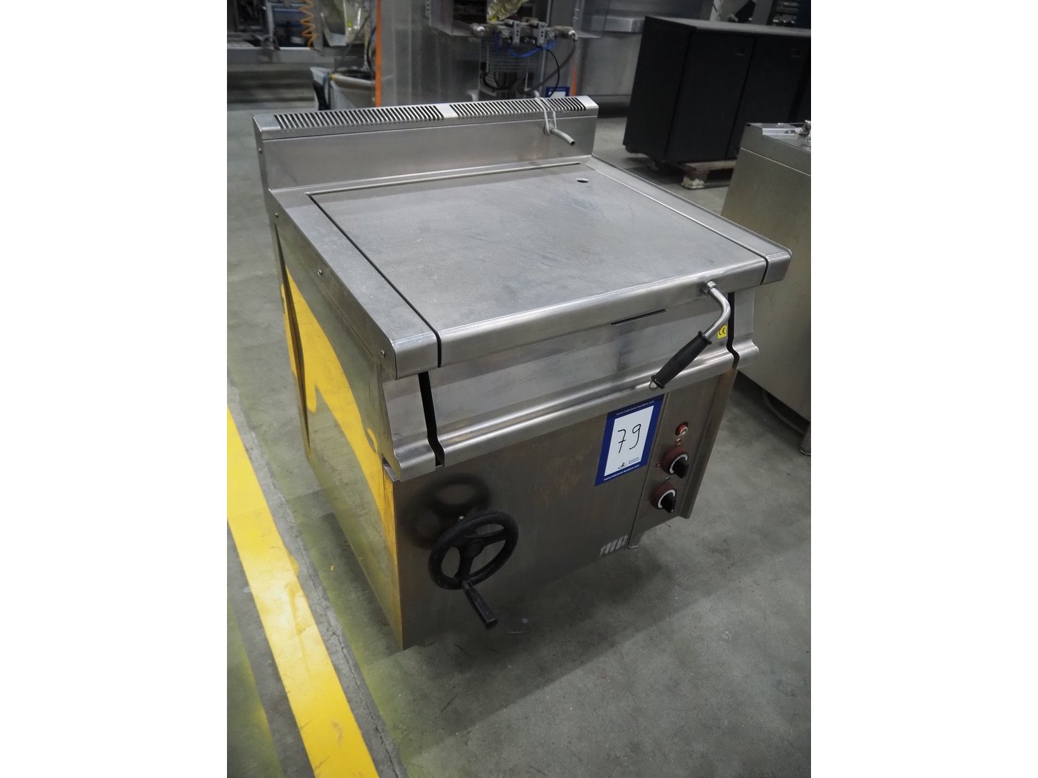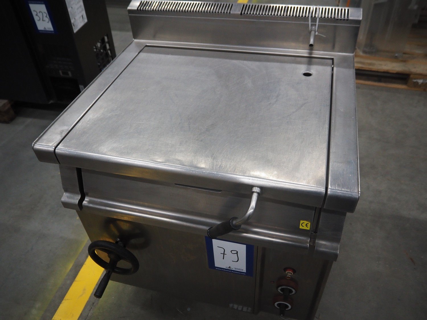 Tiltable frying pan, type: 700/930, serial number: AS07885001, 400 V, 3 Ph, 50 Hz, 7.8 kW, 500 kPa, inside dimensions: 600 mm x 430 mm x 200 mm, total dimensions: 810 mm x 750 mm x 1030 mm.