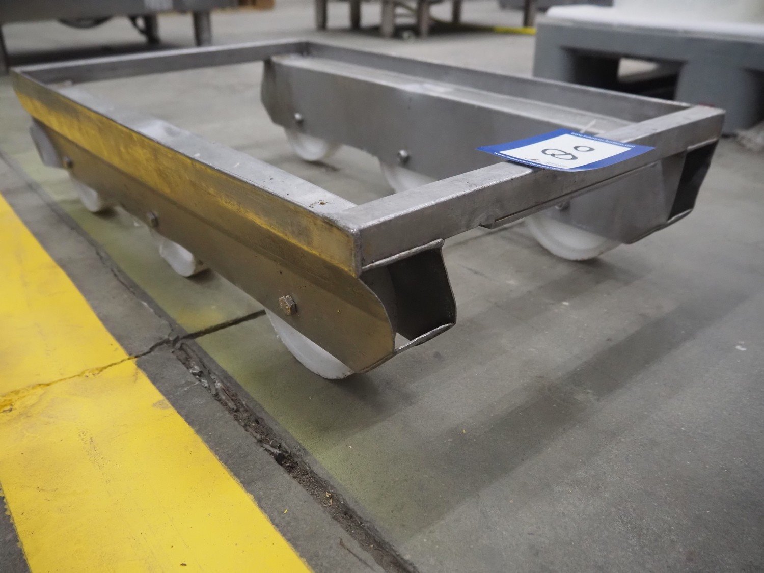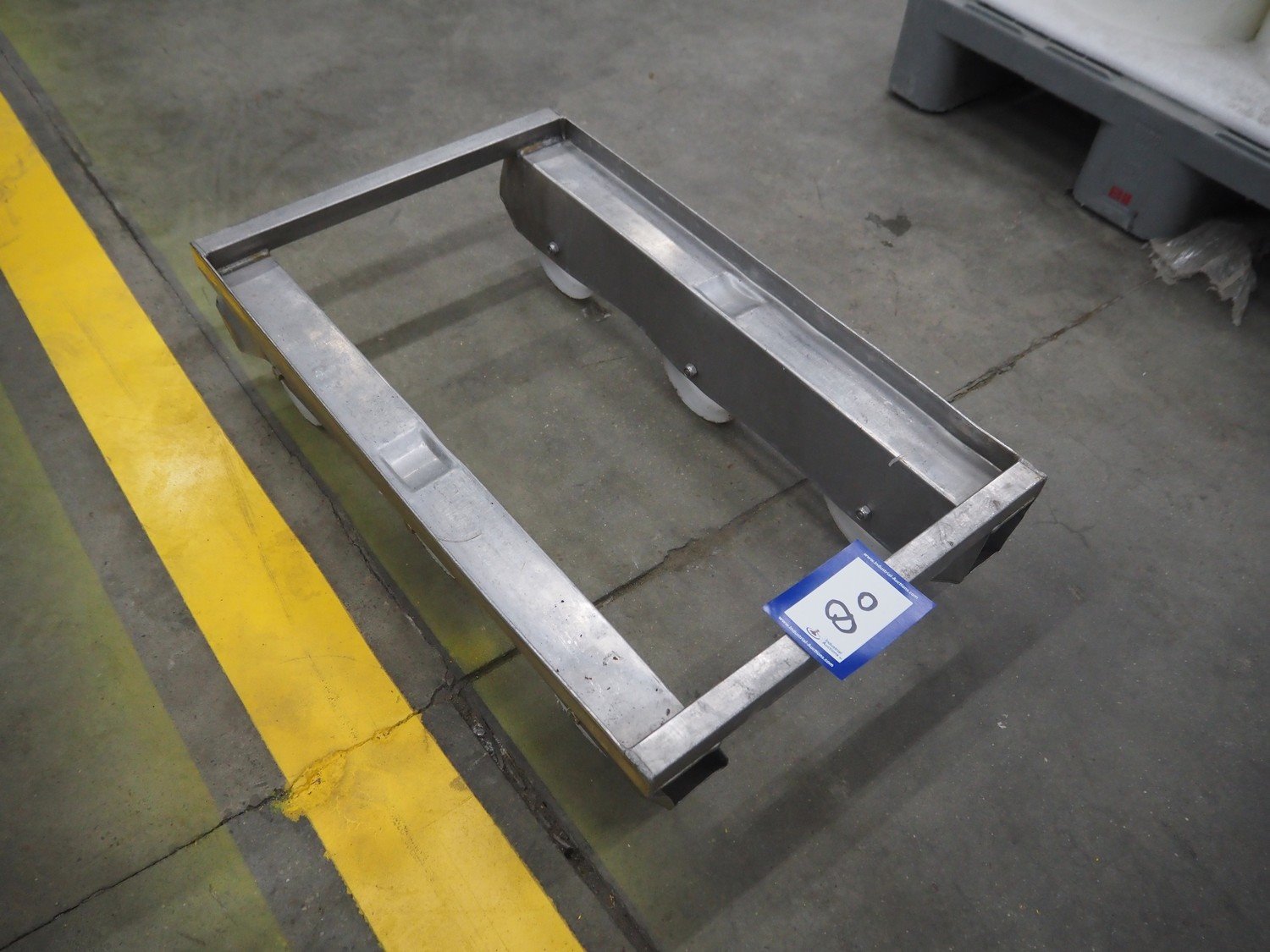 S/s rollie for E2 crate, dimensions: 650 mm x 410 mm x 170 mm.