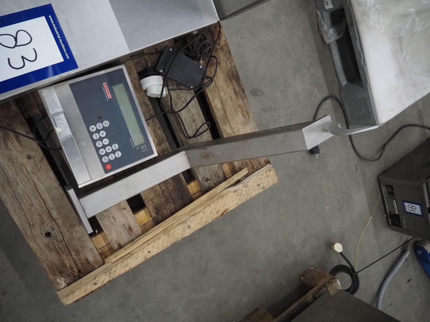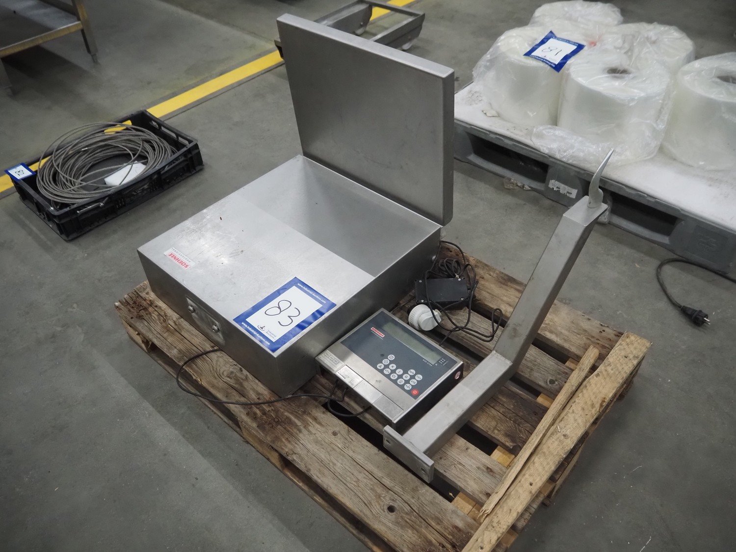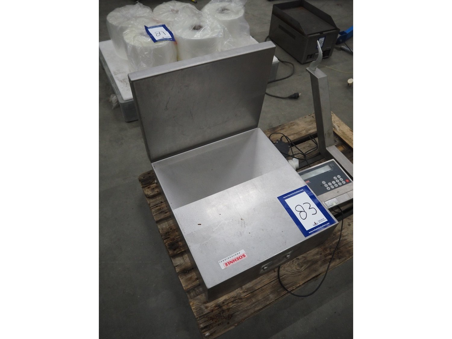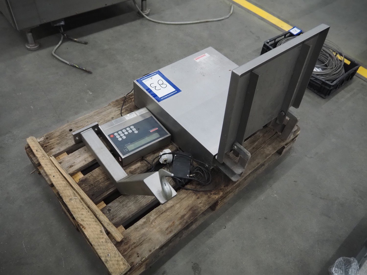 Soehnle hook weighing scale with indicator, serial number: 28213350066, maximum weight: 150 kg, minimum weight: 1 kg, e= 50 gram, dimensions: 570 mm x 300 mm x 700 mm.