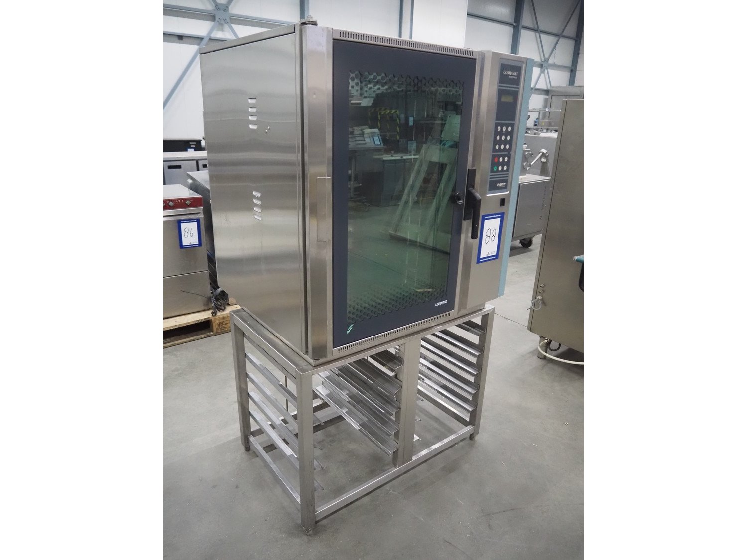 Leventi combi steamer, model: Combimat, 10 floors, dimensions each floor: 550 mm x 390 mm, total dimensions: 980 mm x 950 mm x 1750 mm.