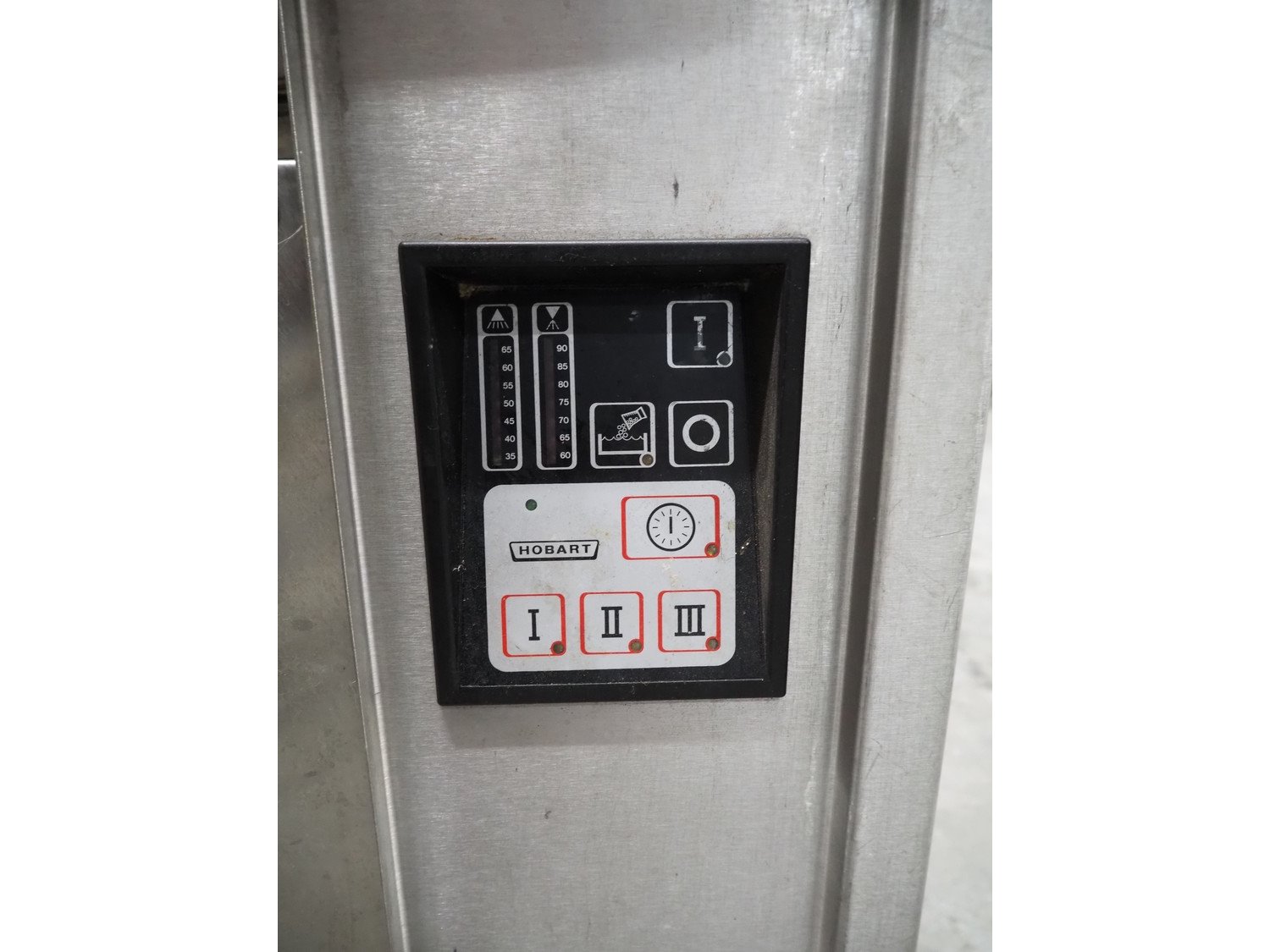 Hobart washing machine, model: UW2, serial number: 86142229, 380 V, 3 Ph, 50 Hz, 8.6 A, dimensions: 1200 mm x 750 mm x 1700 mm.