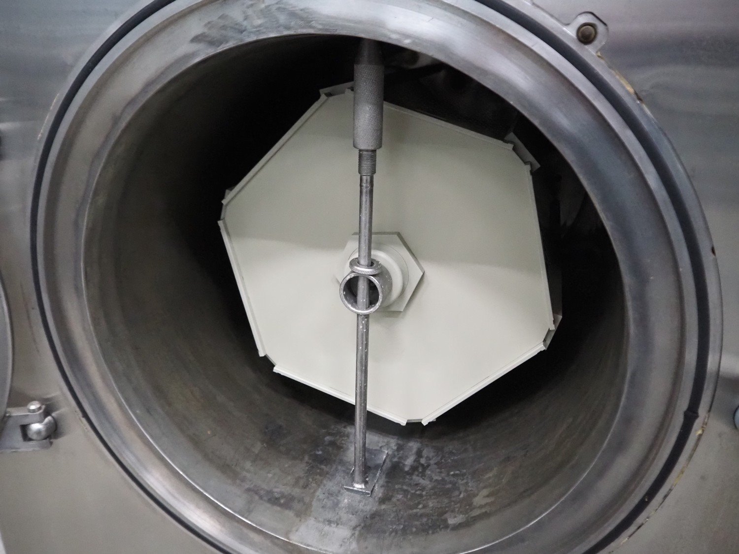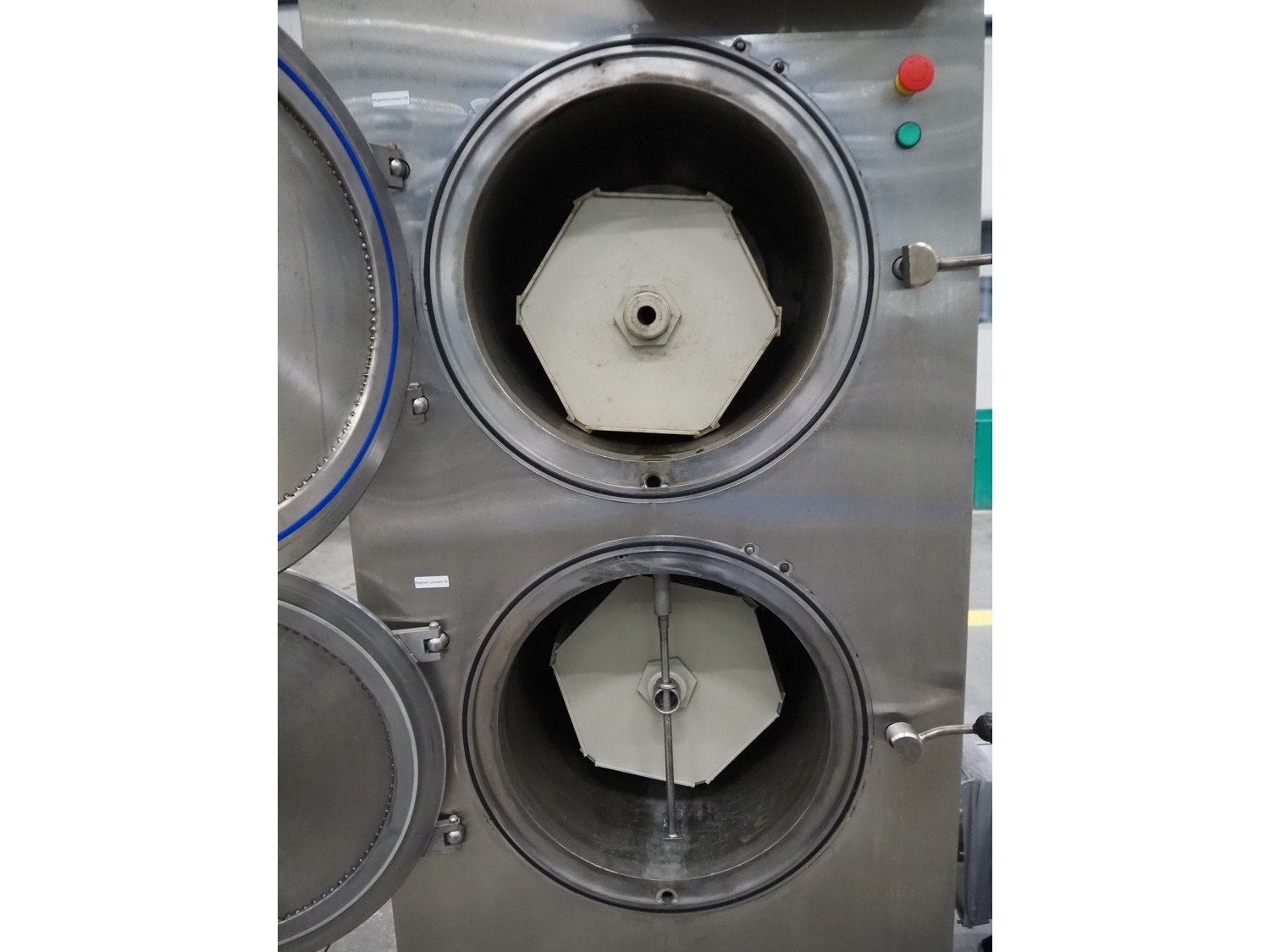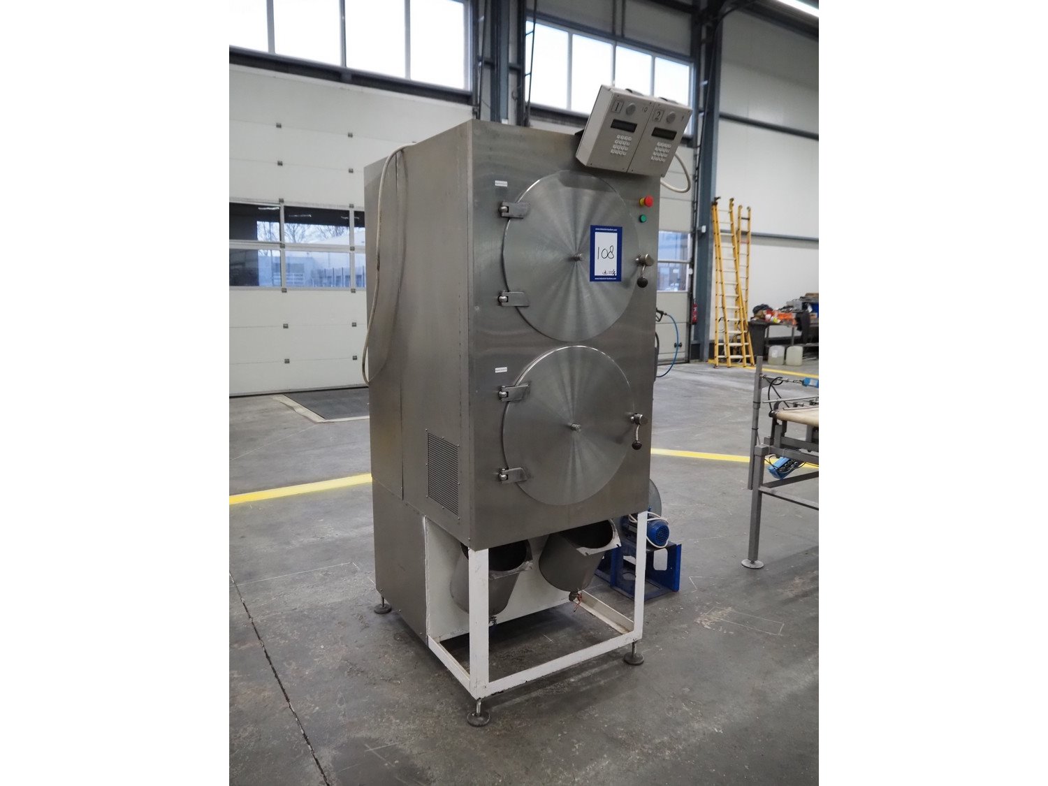 Vacuum oven/microwave, inside dimensions: (2x) Ø 440 mm x 690 mm, dimensions plastic forms: 500 mm x 370 mm x 550 mm, total dimensions: 1020 mm x 1600 mm x 2200 mm.