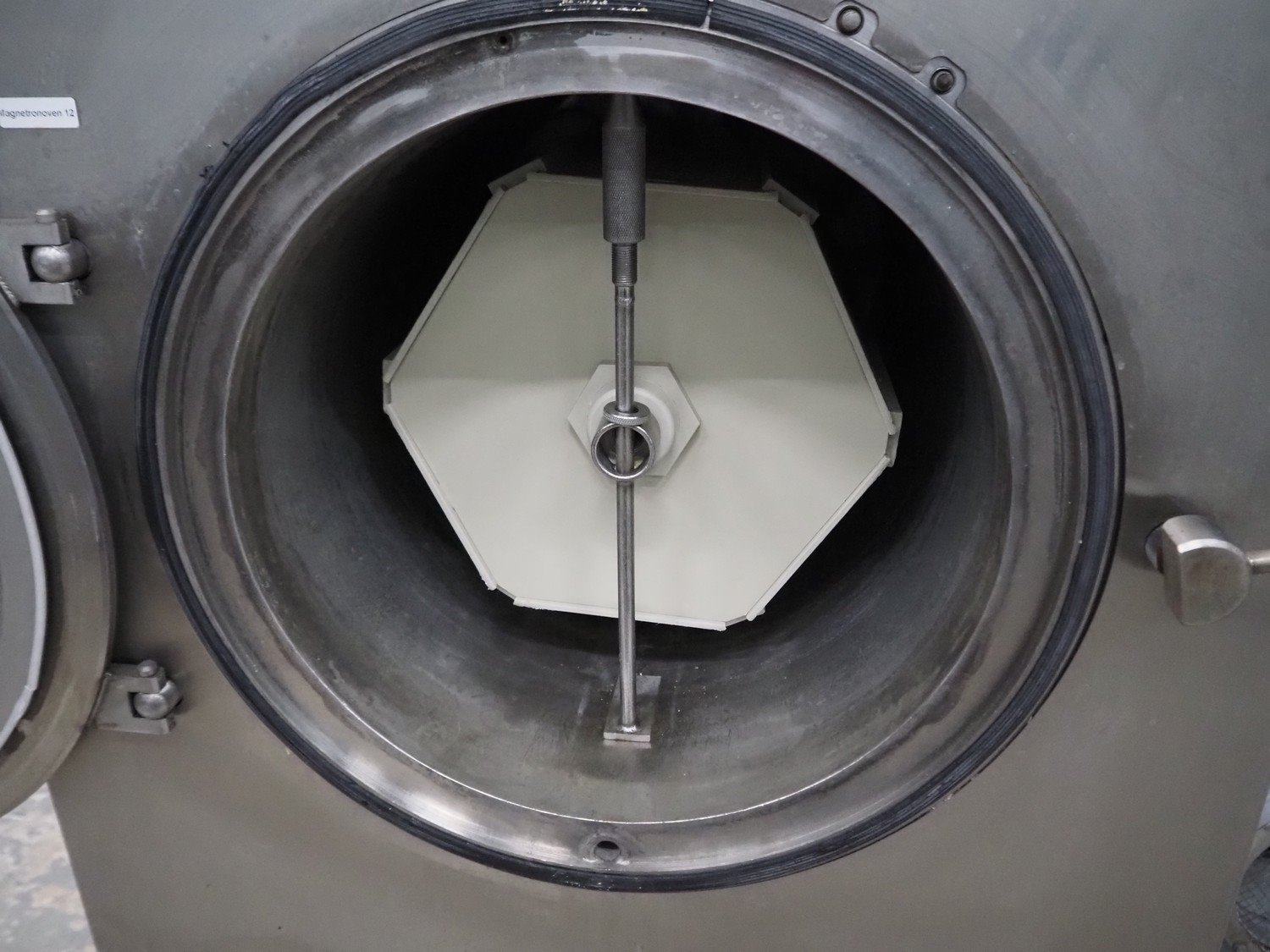 Vacuum oven/microwave, inside dimensions: (2x) Ø 440 mm x 690 mm, dimensions plastic forms: 500 mm x 370 mm x 550 mm, total dimensions: 1020 mm x 1600 mm x 2200 mm.