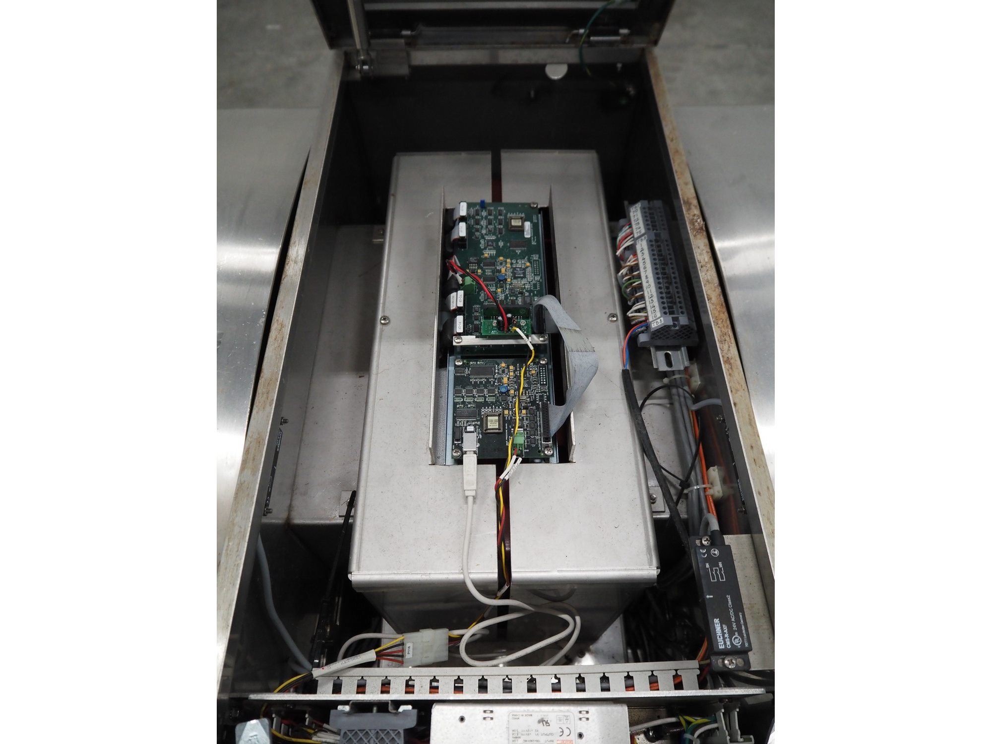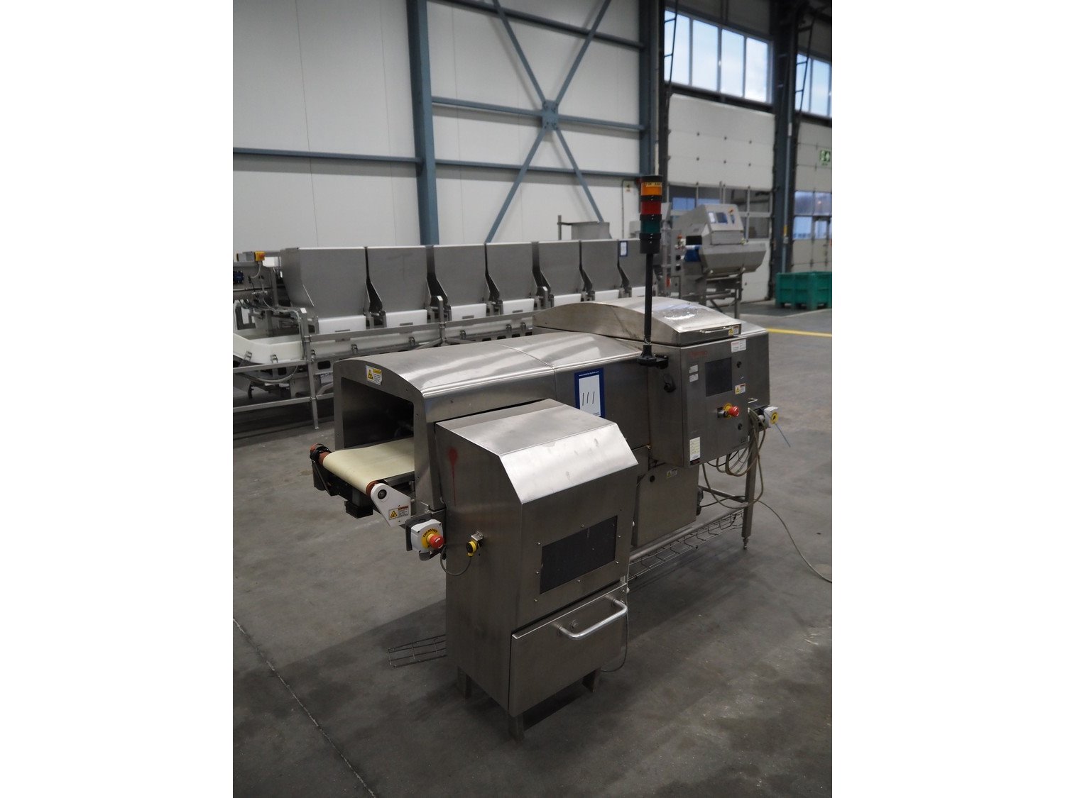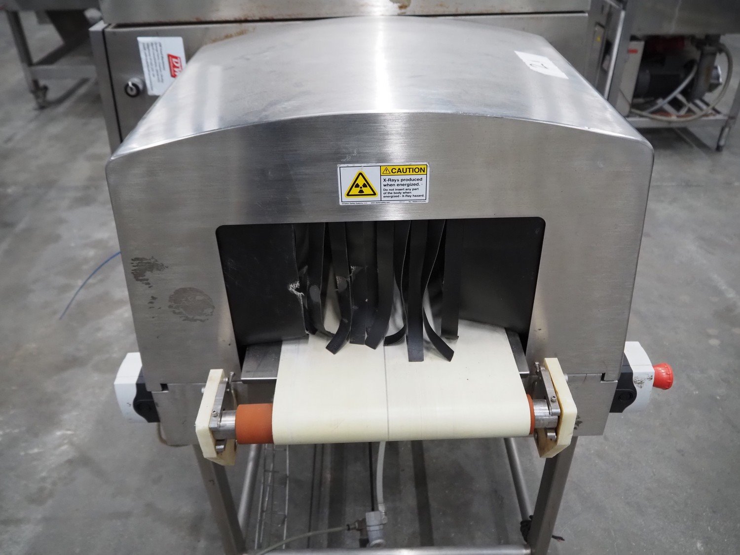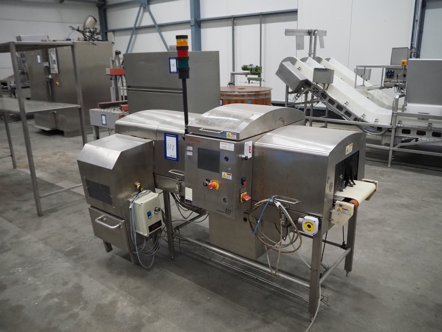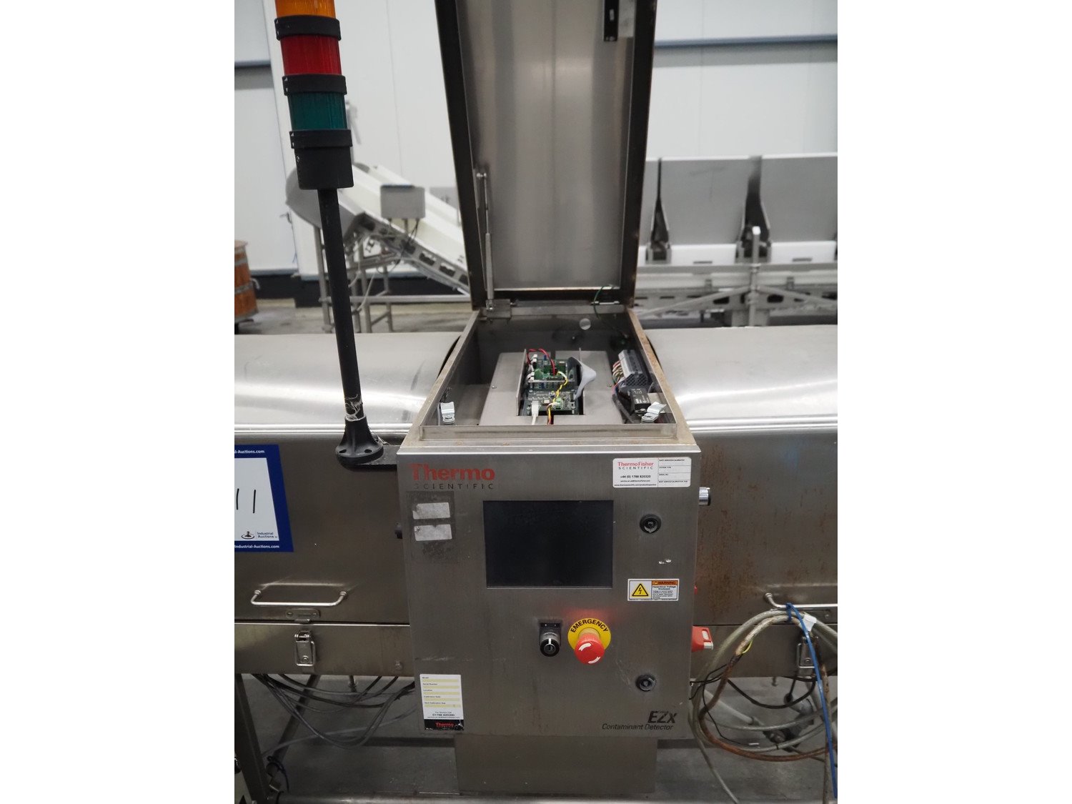 Thermo Fischer x-ray scanner with rejecter, type: EZX 420, serial number: 08243260, year of construction: JUNE 2008, 100-240 V, 50//60 Hz, 7.5-15 A, plastic belt, belt width: 310 mm, clearance: 380 mm x 190 mm, total dimensions: 2000 mm x 1100 mm x 1730 mm.