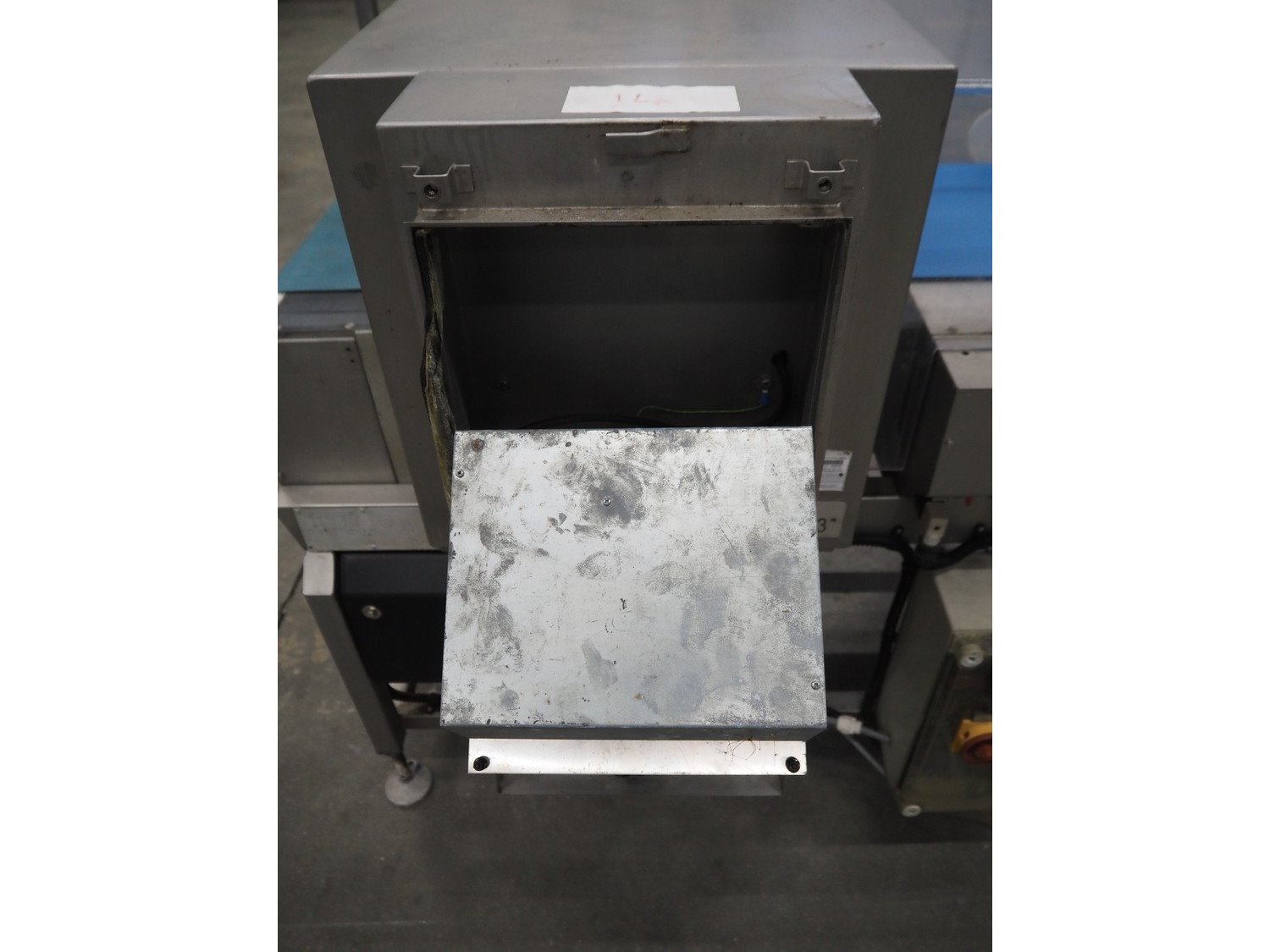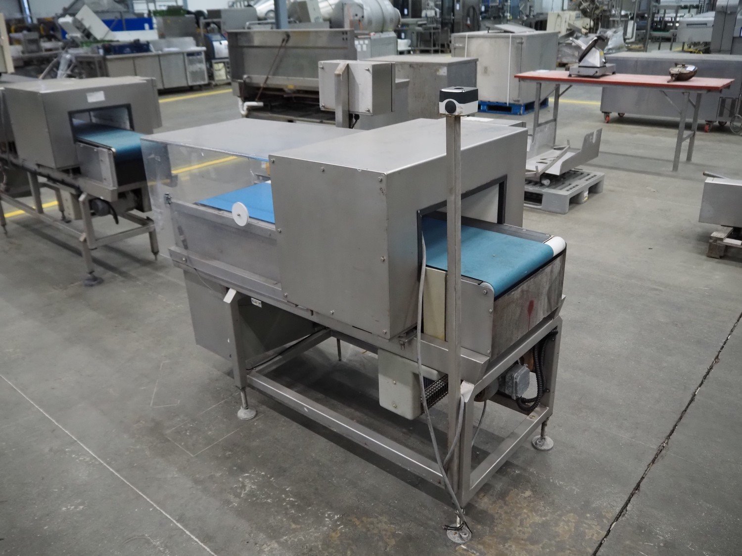 Loma Systems metal detector, model: Euroscan F, serial number: 32F188, year of construction: march 1991, 415/240 V, 3 Ph, 50 Hz, clearance: 450 mm x 140 mm, plastic belt, belt width: 350 mm, total dimensions: 1500 mm x 900 mm x 1370 mm.