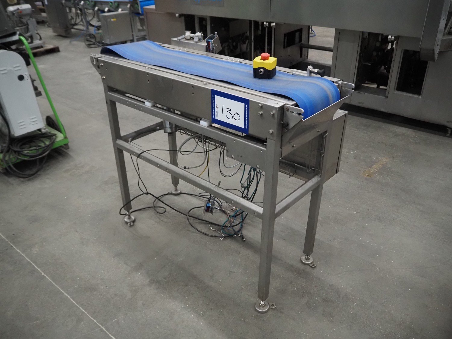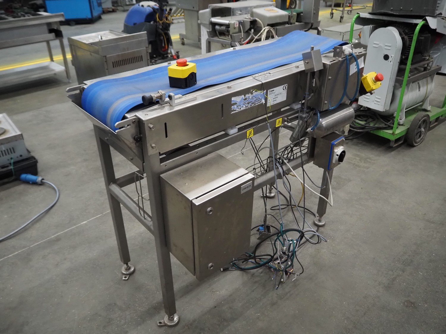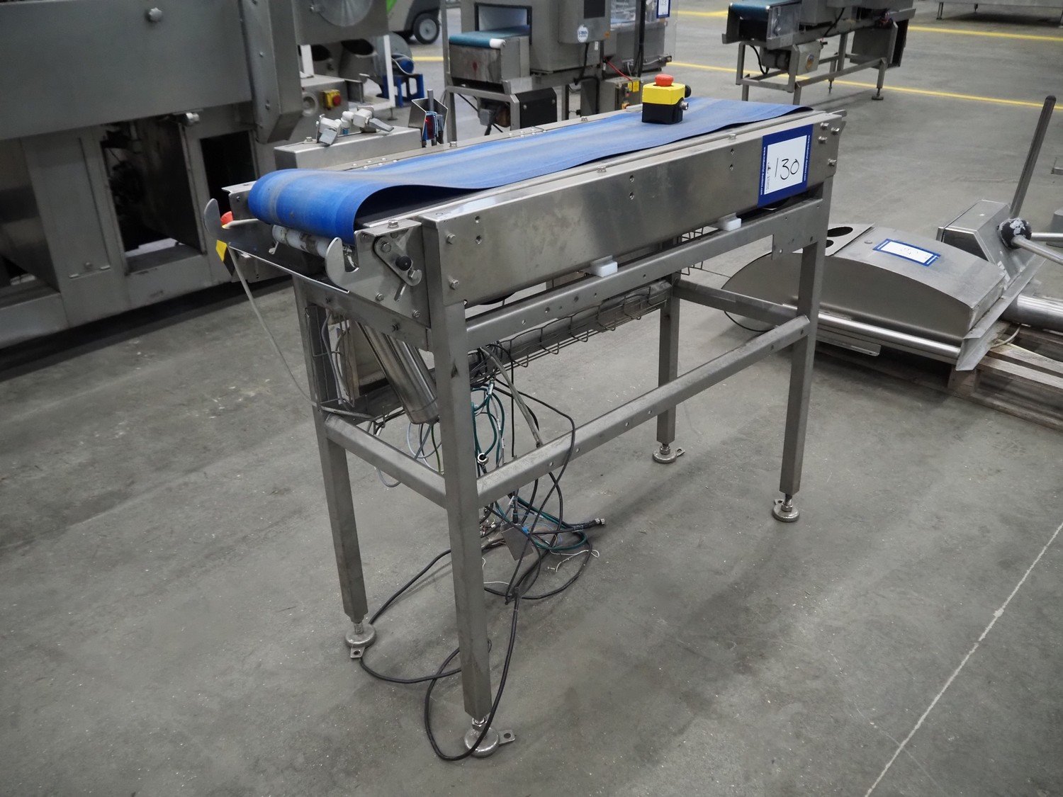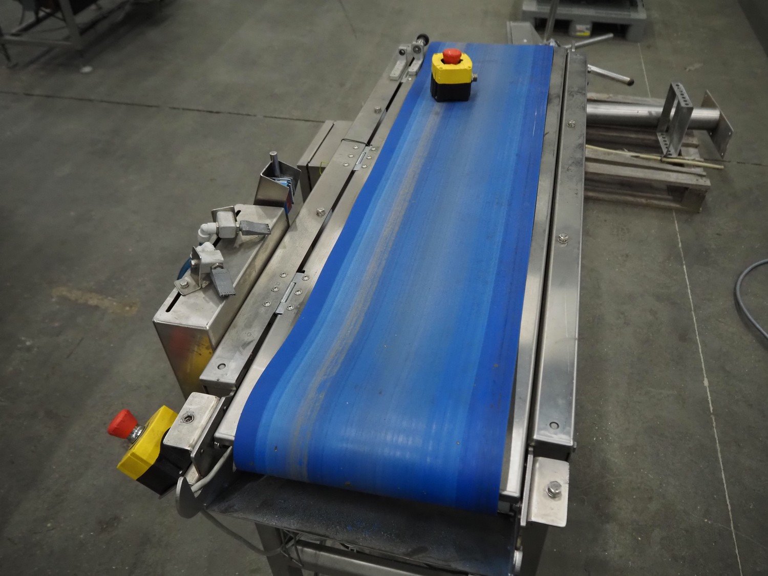 Ulma transport belt for vision system, model: 6555580, year of construction: 2017, plastic belt, belt width: 300 mm, total dimensions: 1450 mm x 700 mm x 1240 mm.