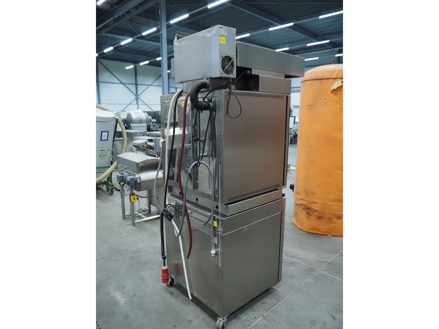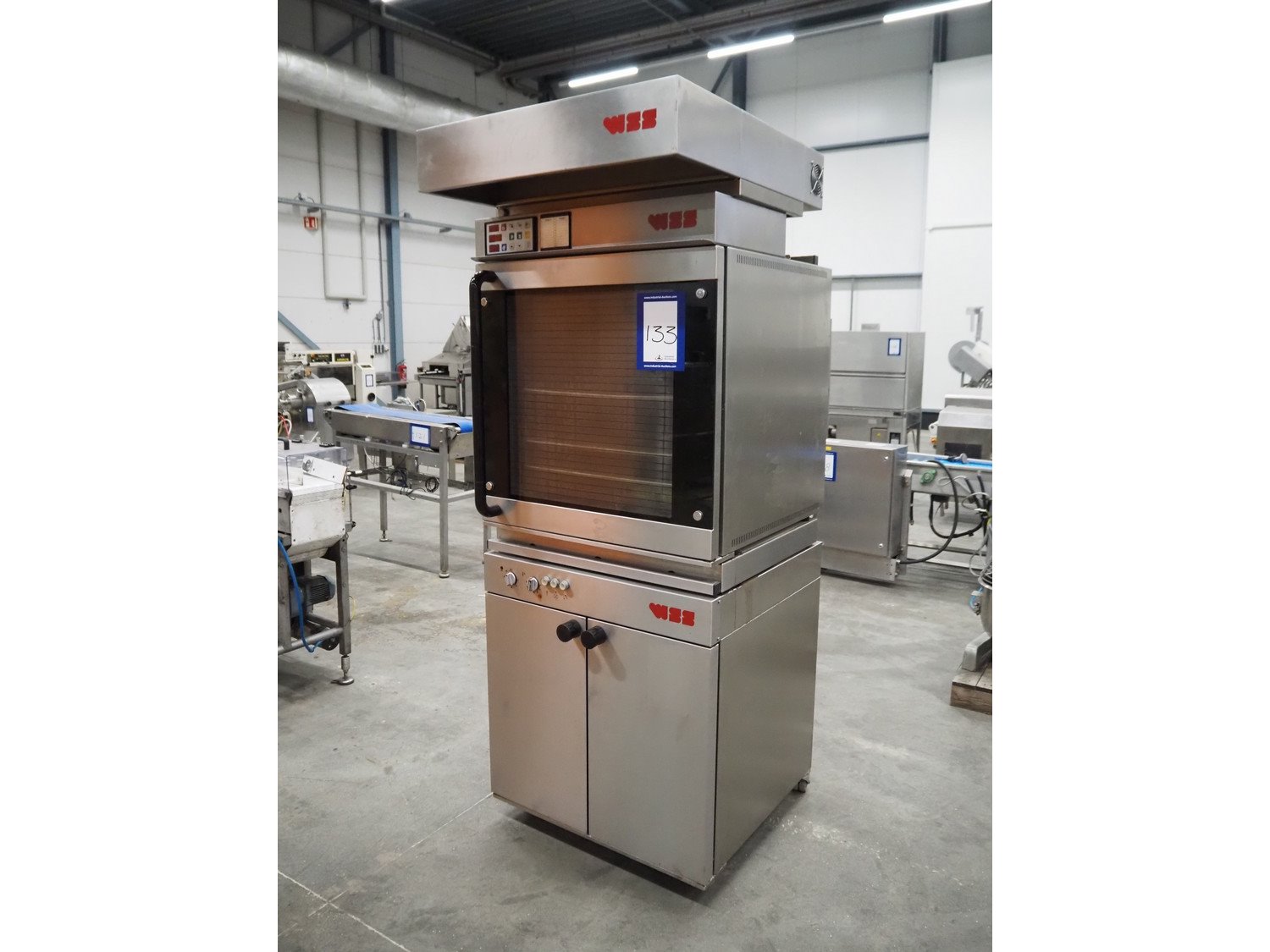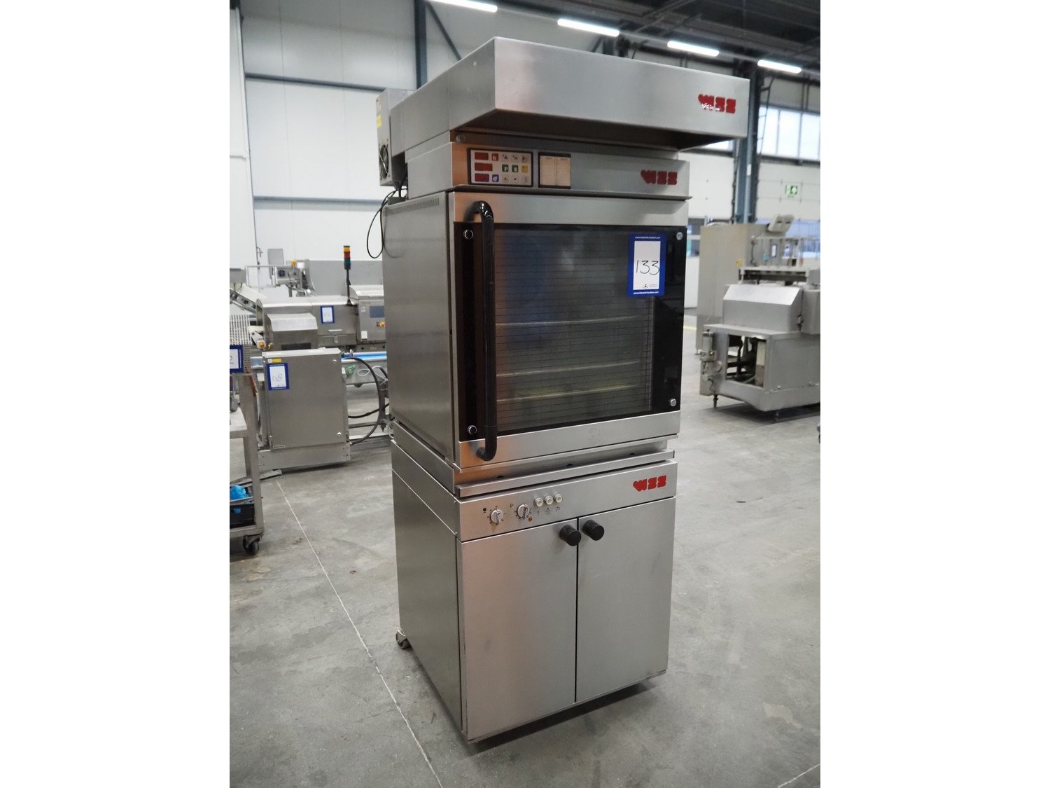 WSS mobile oven with proofer and hood, type oven: SBU8E-DE/1816, year of construction: 2002, 380 V, 3 Ph, 25 A, 12 kW, type proofer: GSU8M/2354, year of construction: 2002, 220 V, 1 Ph, 9.2 A, type hood: DAH-DK/7206, year of construction: 2002, 220 V, 1 Ph, 0.16 A, 0.63 kW, dimensions: 820 mm x 770 mm x 2150 mm.