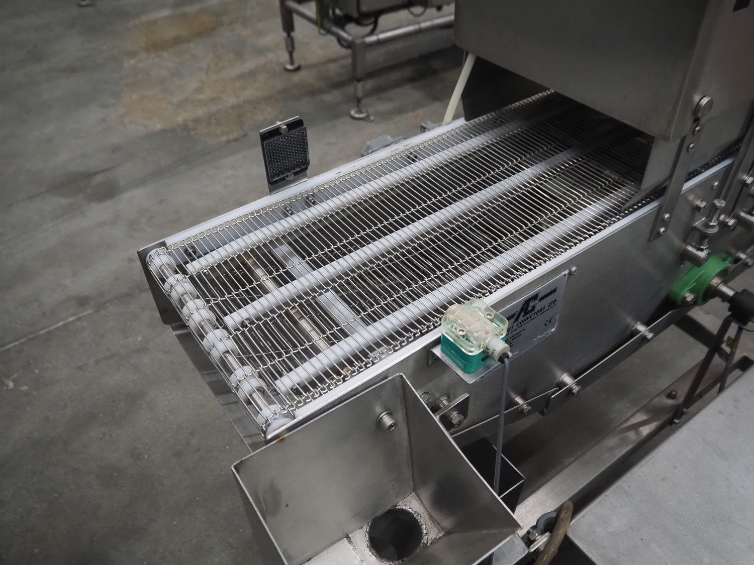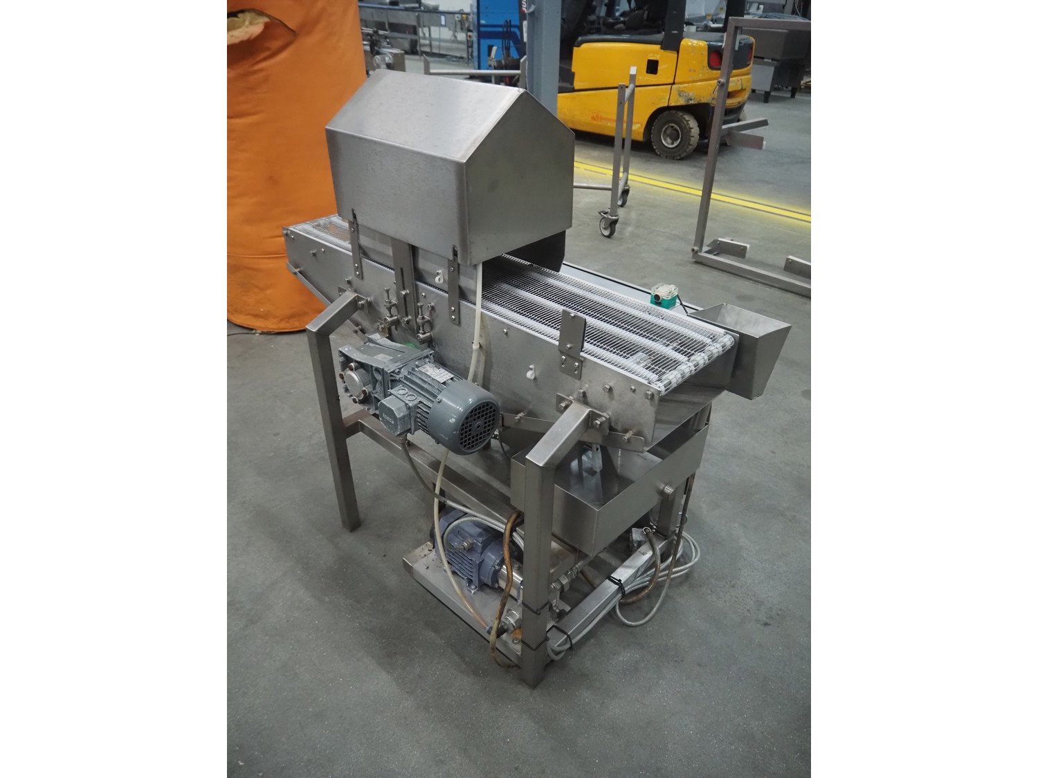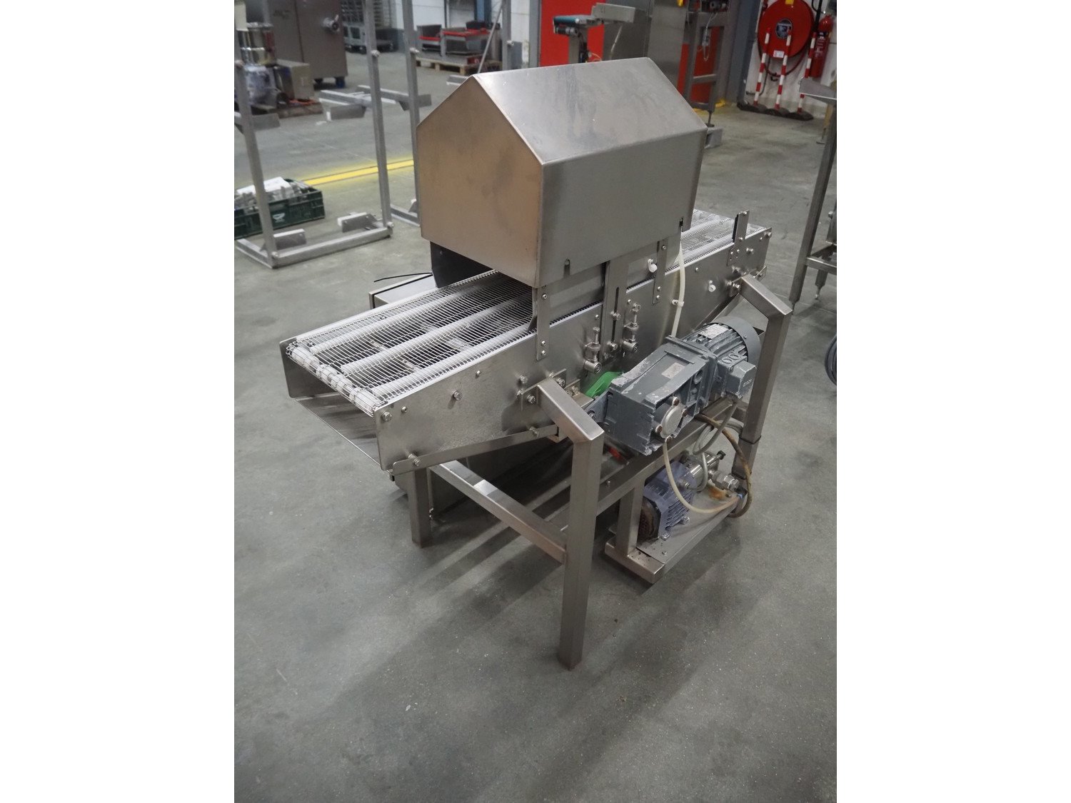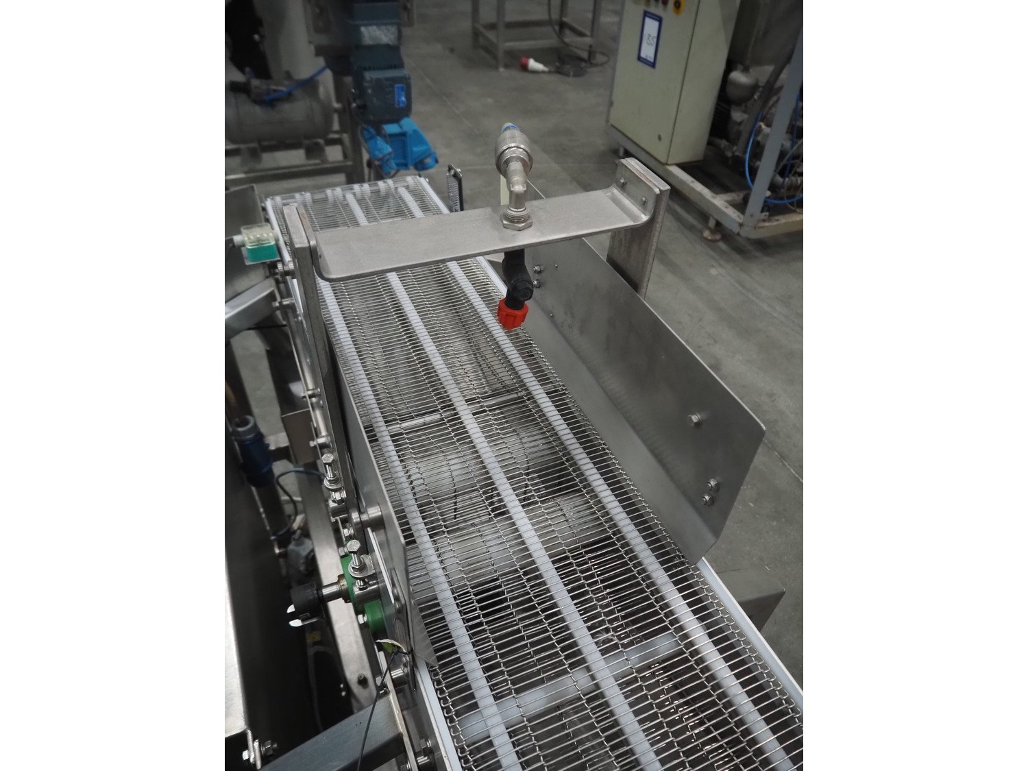 Arnott spraying belt, number: OC.11443-4, year of construction: 07-06, s/s mesh belt, belt width: 250 mm, total dimensions: 1250 mm x 850 mm x 1200 mm.
