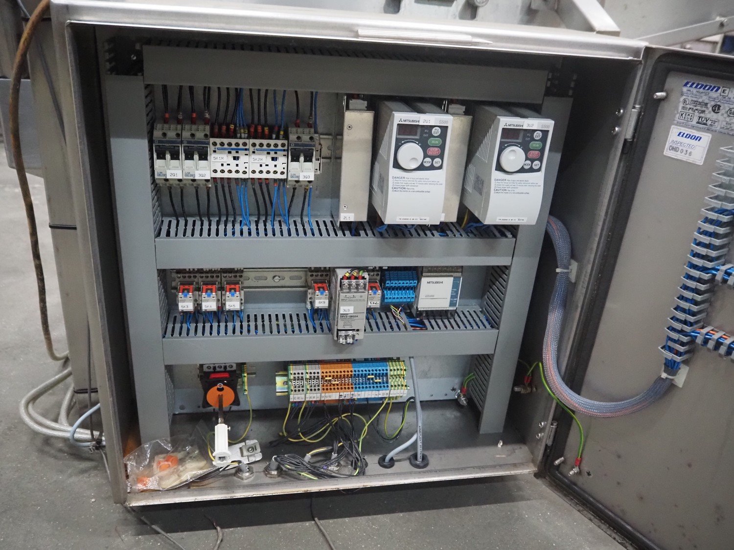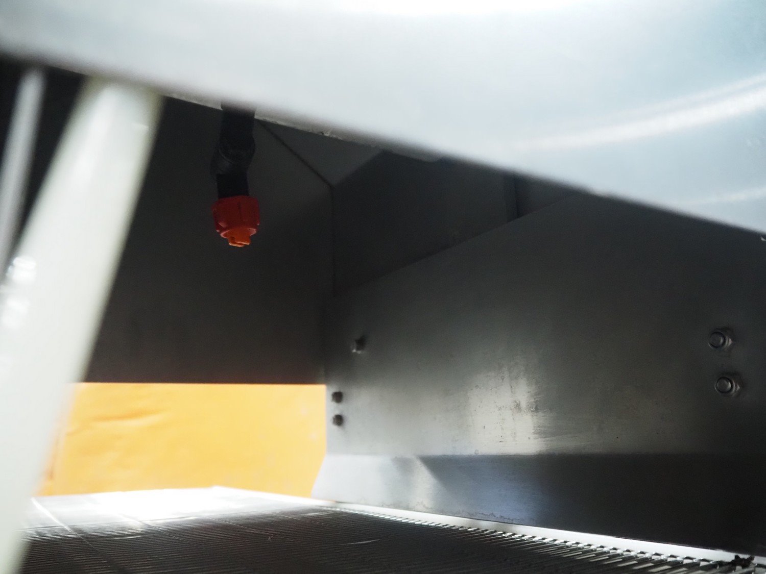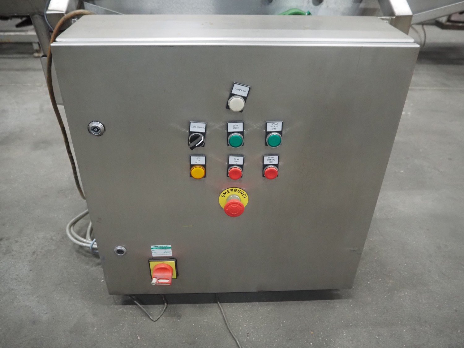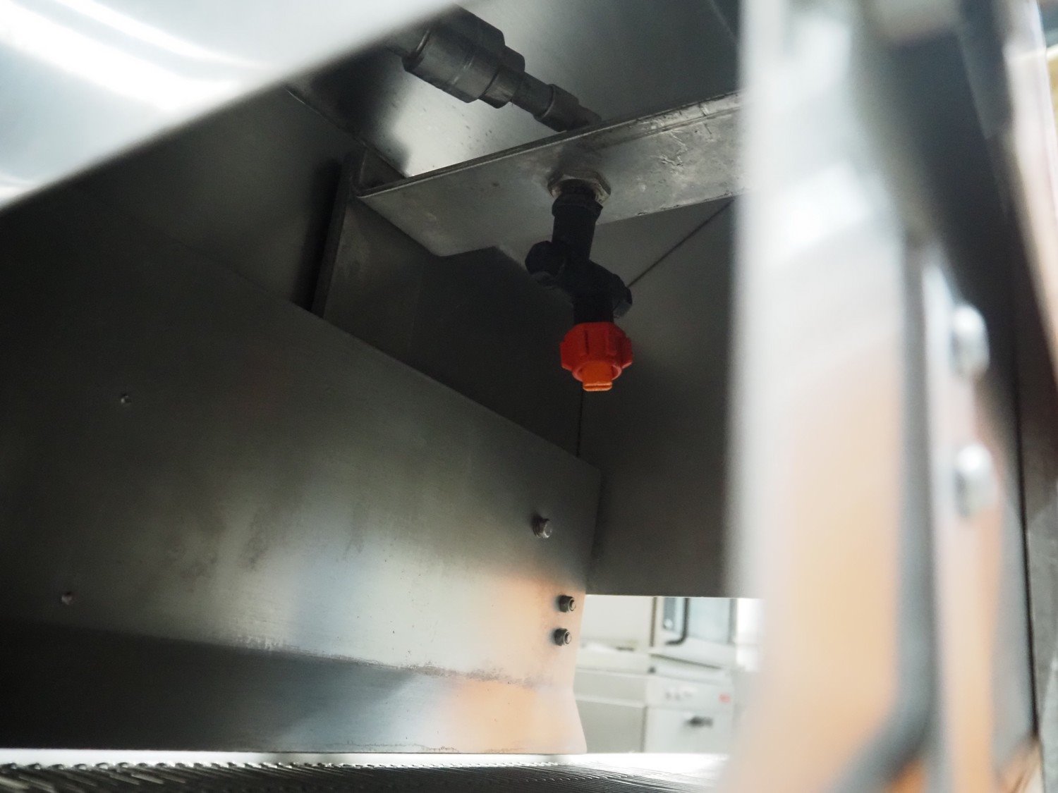 Arnott spraying belt, number: OC.11443-4, year of construction: 07-06, s/s mesh belt, belt width: 250 mm, total dimensions: 1250 mm x 850 mm x 1200 mm.
