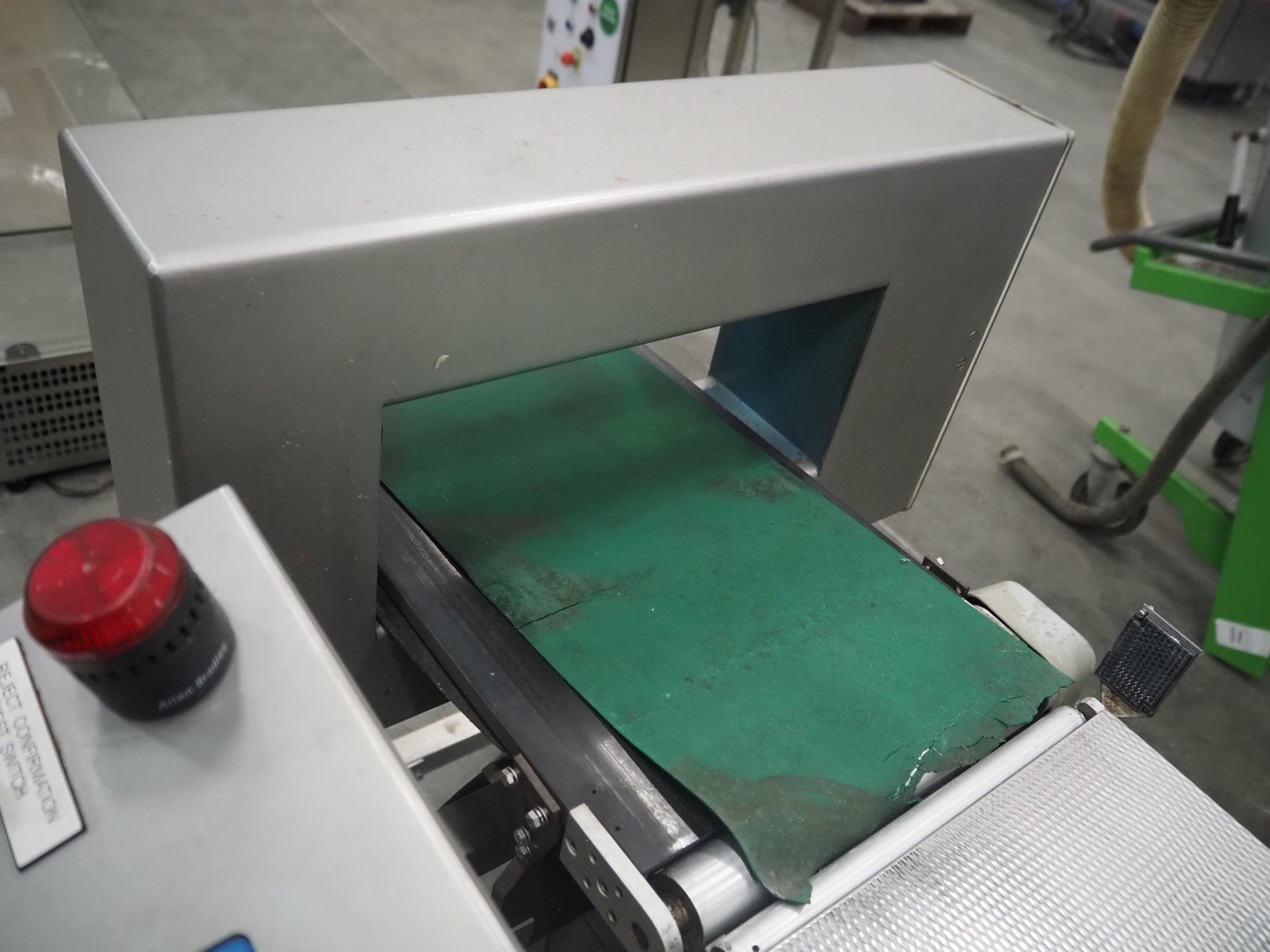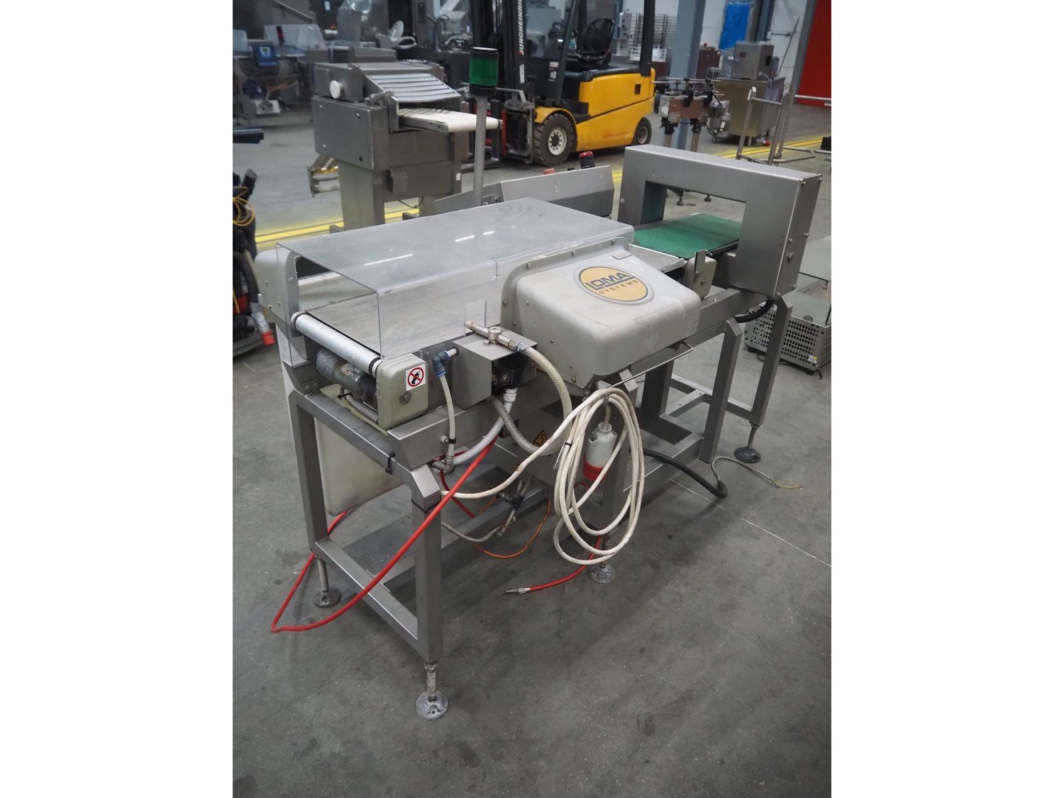 Loma Systems checkweigher with metal detector and rejector, model: 7000 series, serial number: PC39162-31458, year of construction: 2003, 230 V, 1 Ph, 50 Hz, plastic belt, belt width: 250 mm, total dimensions: 1650 mm x 1000 mm x 1370 mm.