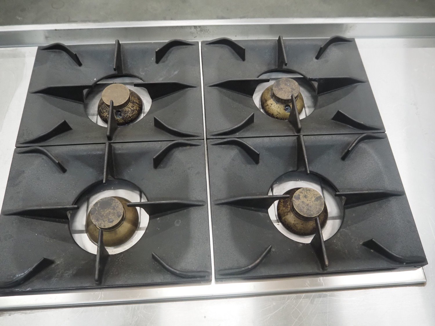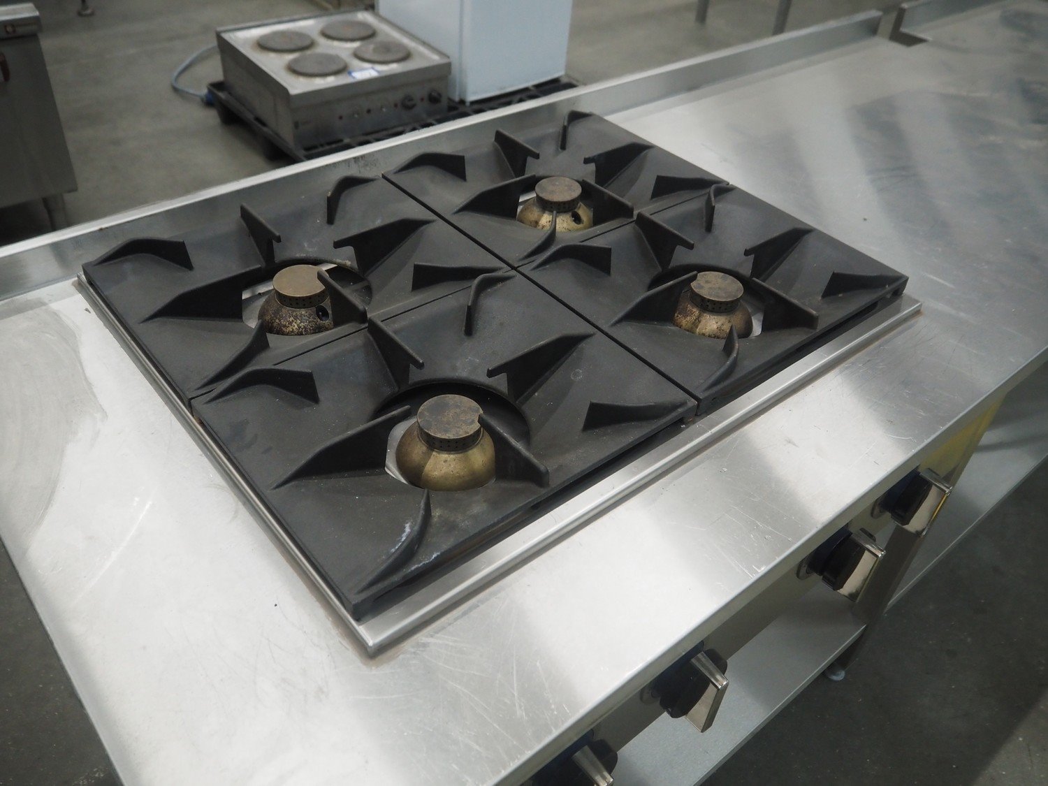 4-pits stove, gas heated, dimensions: 2600 mm x 840 mm x 915 mm.
