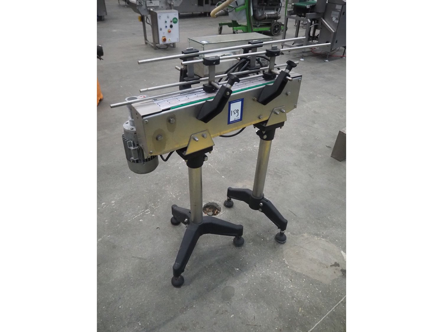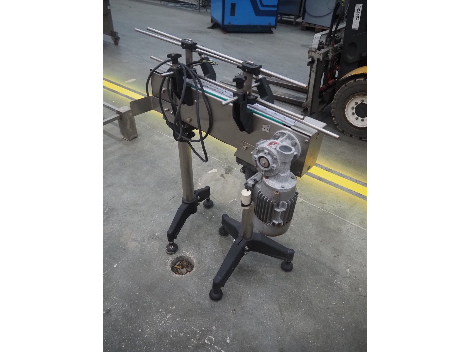 Transport belt, s/s frame, plastic belt, belt width: 80 mm, total dimensions: 1000 mm x 350 mm x 1100 mm.