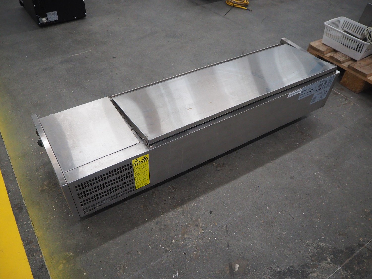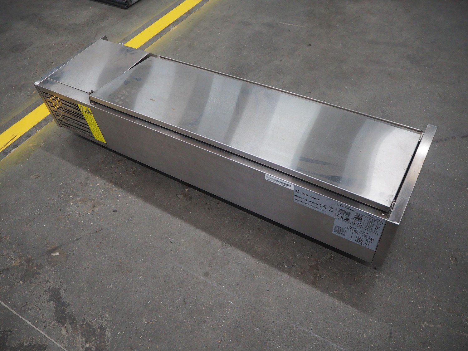 Cool Head refrigerated showcase, model: VRX 14/38/S/S, year of construction: 08/2017, 220/240 V, 50 Hz, 1.3 A, 160 W, refrigerant: R600a / 40 g, weight: 42 kg, volume: 53 liter, dimensions: 1450 mm x 395 mm x 360 mm.
