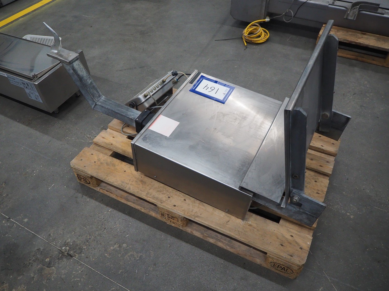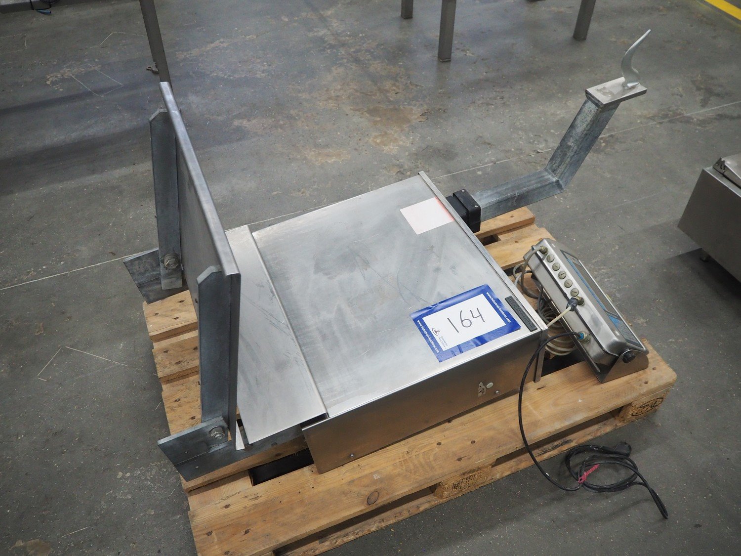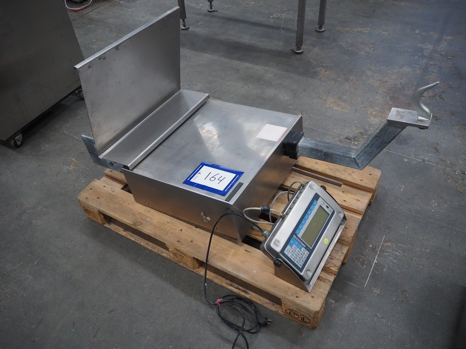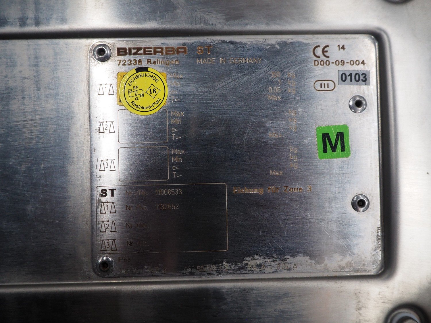 Bizerba hook weighing scale, type: ST, number: 11008533, 240 V, 50/60 Hz, 0.25 A, maximum weight: 150 kg, minimum weight: 1 kg, e= 0.05 kg, dimensions: 600 mm x 700 mm x 1300 mm.