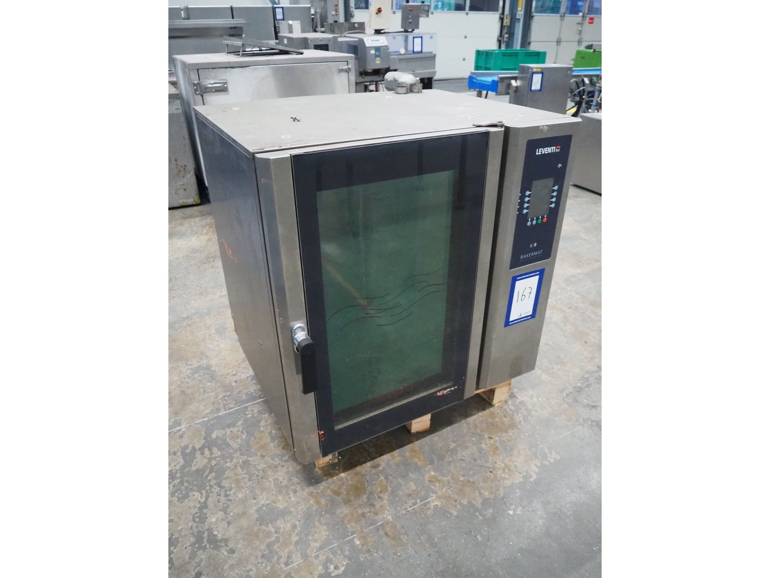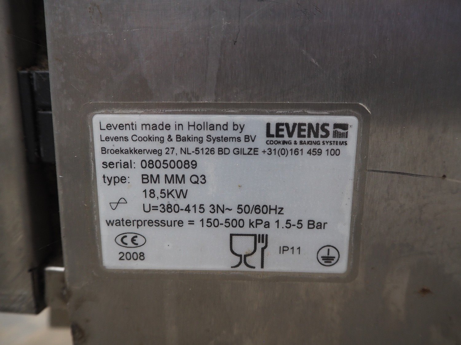 Leventi combi steamer, type: BM MM Q3, serial number: 08050089, year of construction: 2008, 380-415 V, 3 Ph, 50/60 Hz, 18.2 kW, 8 floors, dimensions each floor: 600 mm x 400 mm, total dimensions: 970 mm x 850 mm x 1100 mm.