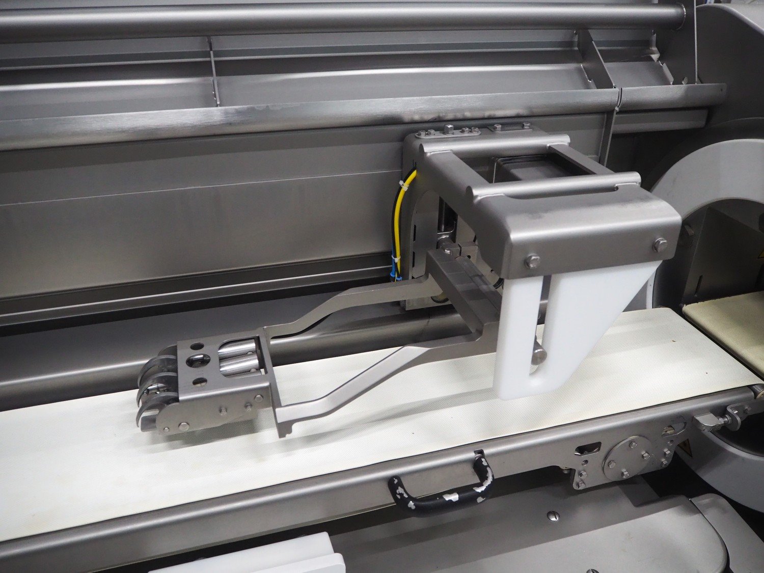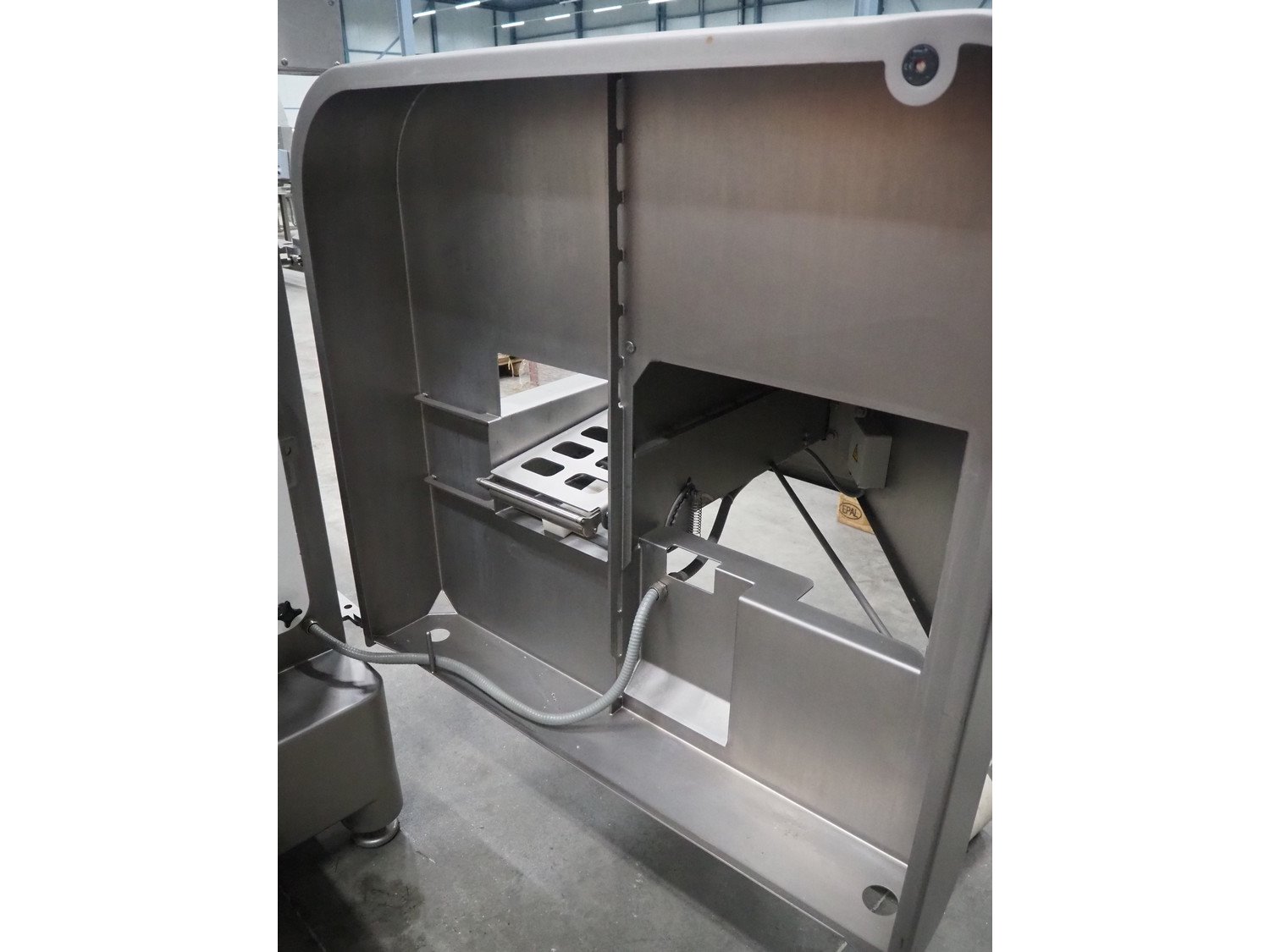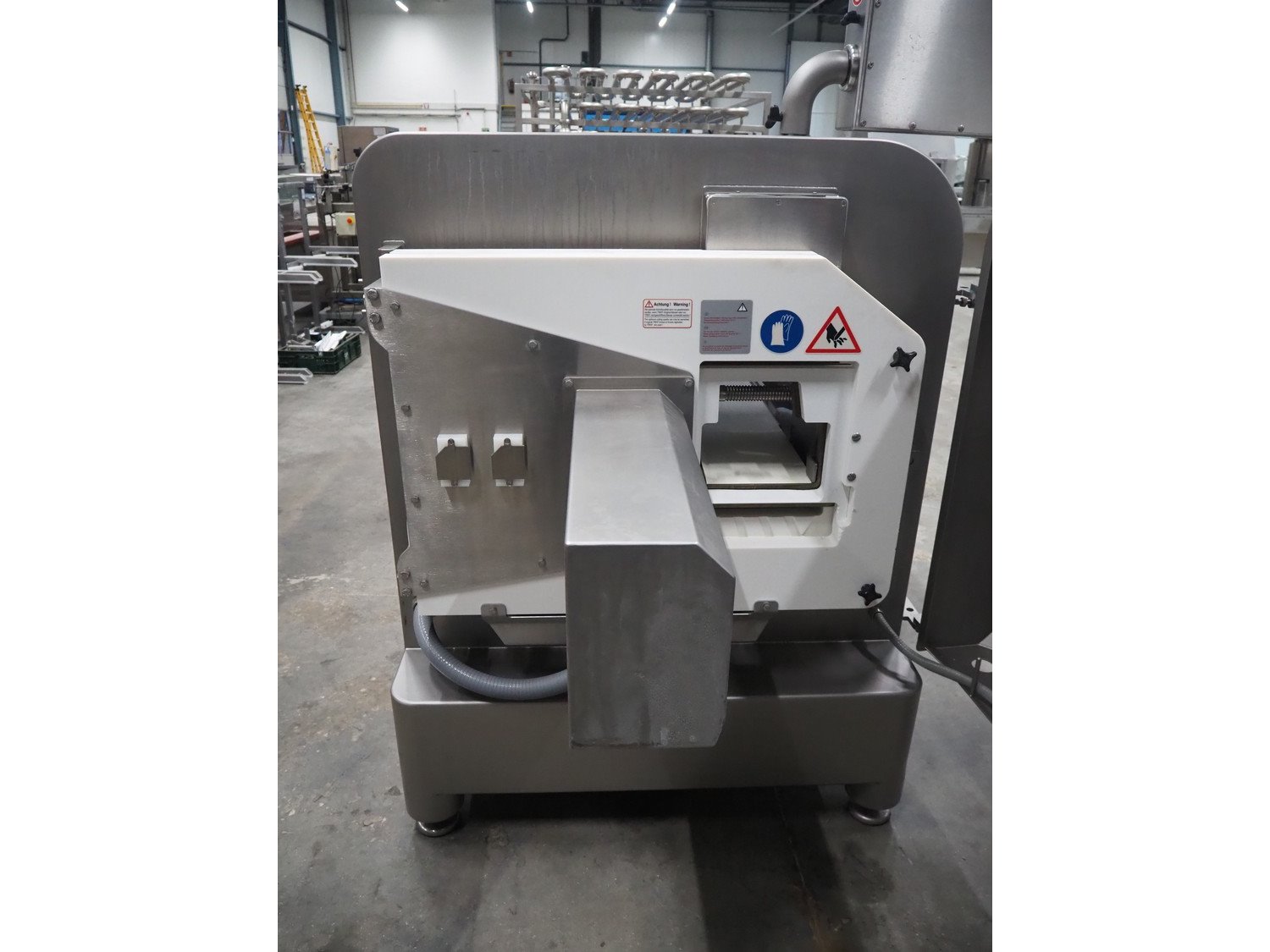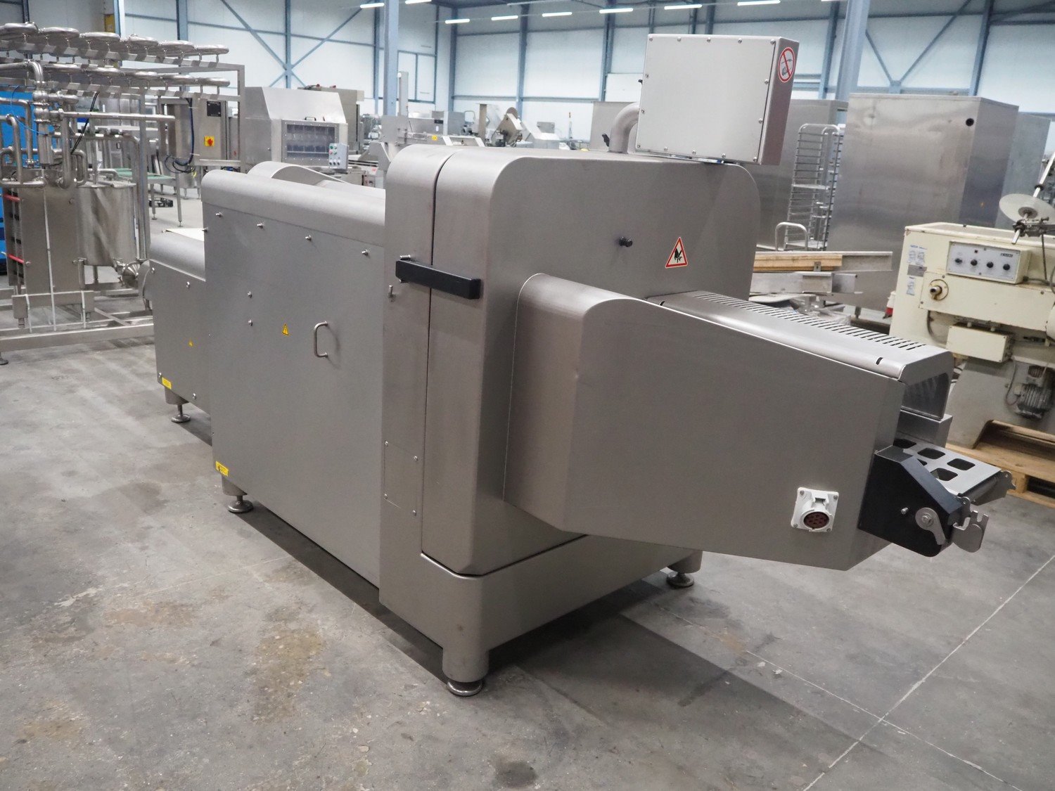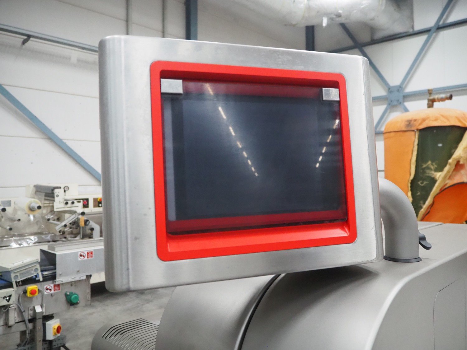 Treif slicer, model: FALCON conti, machine number: 461004.61938.108350, year of construction: 2010, 380-480 V, 3 Ph, 50/60 Hz, 32 A, 8.6/11.7 kW, weight: 750 kg, plastic belt, clearance: 260 mm x 180 mm, total dimensions: 4600 mm x 1250 mm x 1830 mm. Without knife.