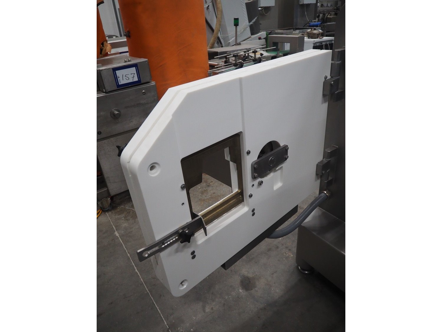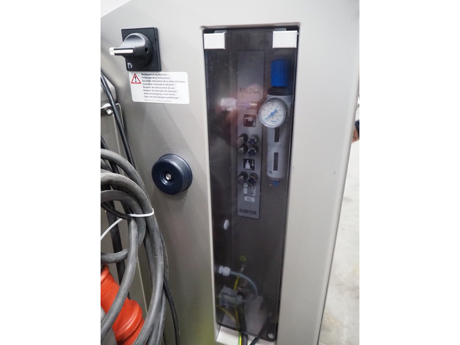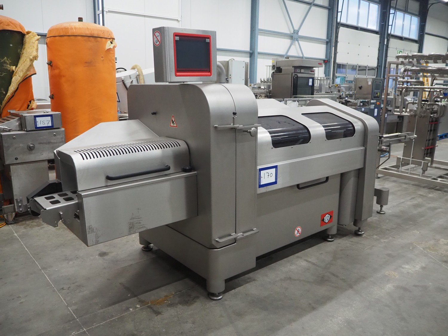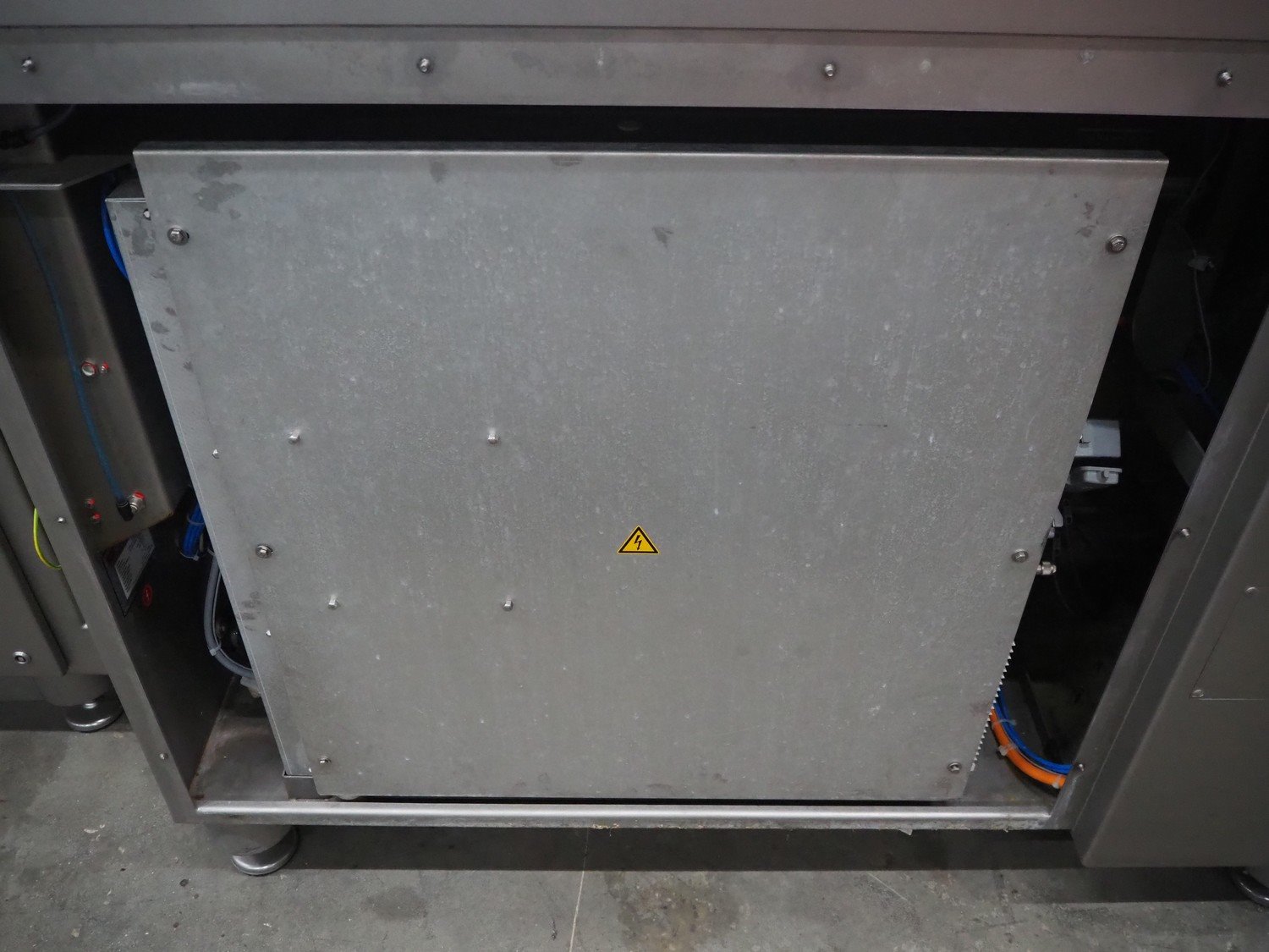 Treif slicer, model: FALCON conti, machine number: 461004.61938.108350, year of construction: 2010, 380-480 V, 3 Ph, 50/60 Hz, 32 A, 8.6/11.7 kW, weight: 750 kg, plastic belt, clearance: 260 mm x 180 mm, total dimensions: 4600 mm x 1250 mm x 1830 mm. Without knife.