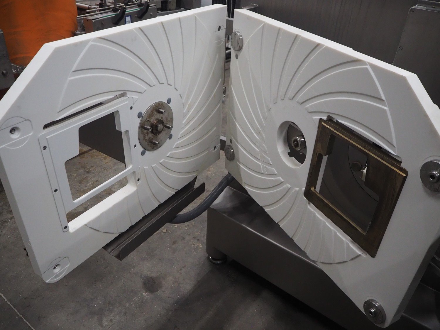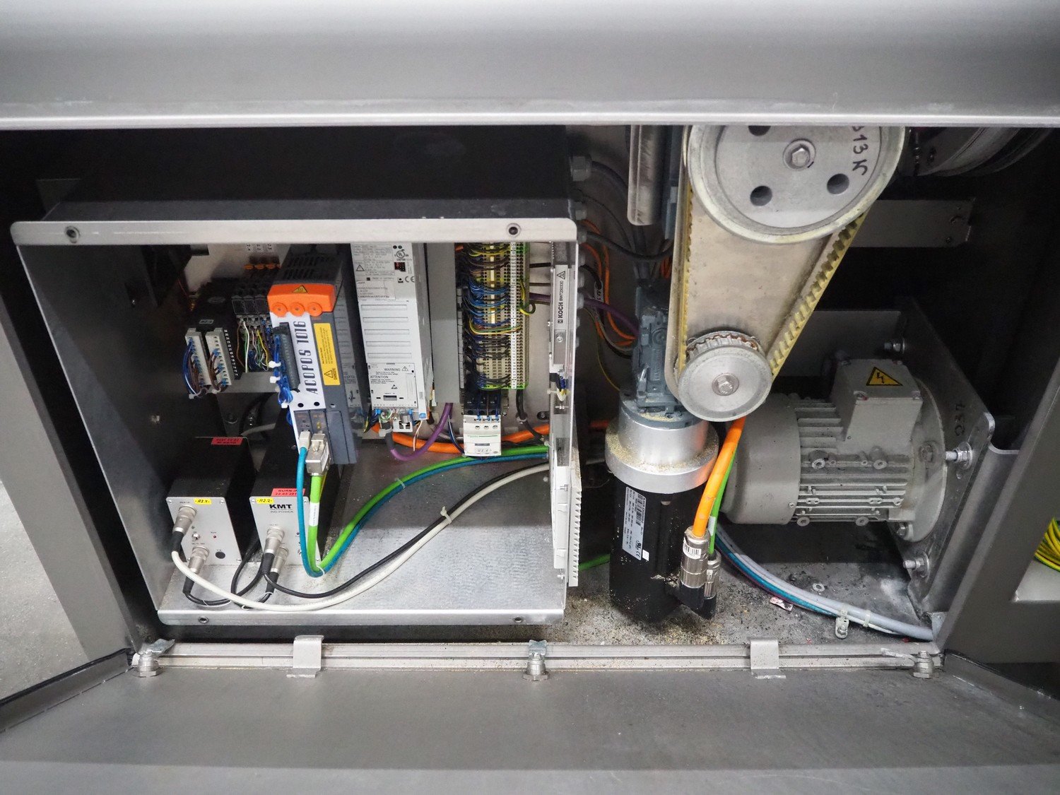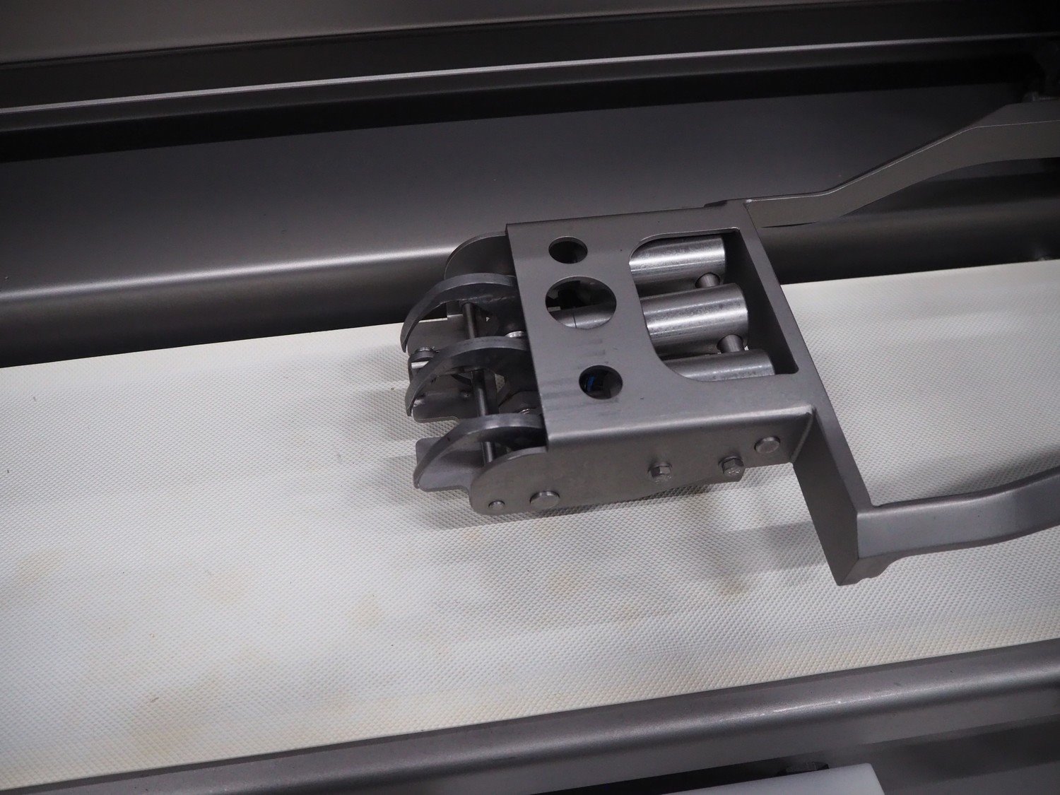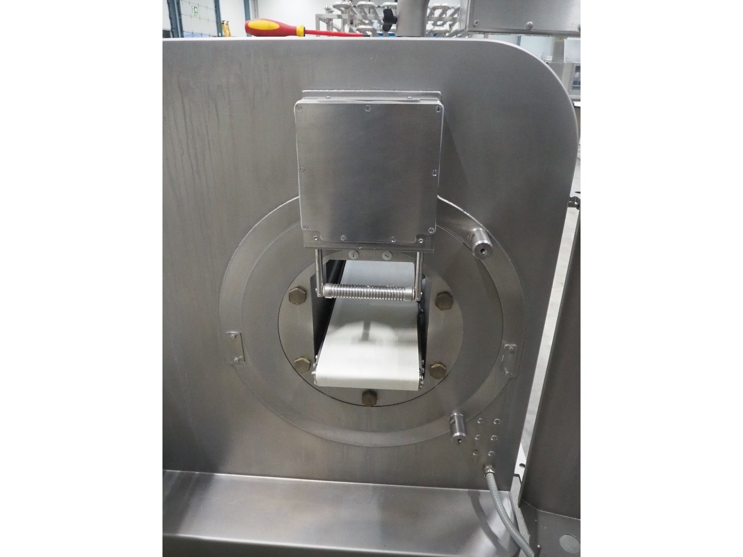 Treif slicer, model: FALCON conti, machine number: 461004.61938.108350, year of construction: 2010, 380-480 V, 3 Ph, 50/60 Hz, 32 A, 8.6/11.7 kW, weight: 750 kg, plastic belt, clearance: 260 mm x 180 mm, total dimensions: 4600 mm x 1250 mm x 1830 mm. Without knife.
