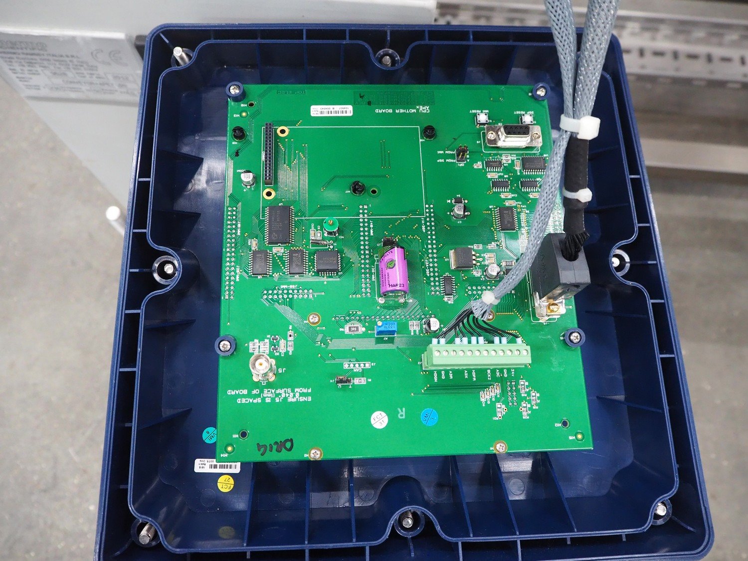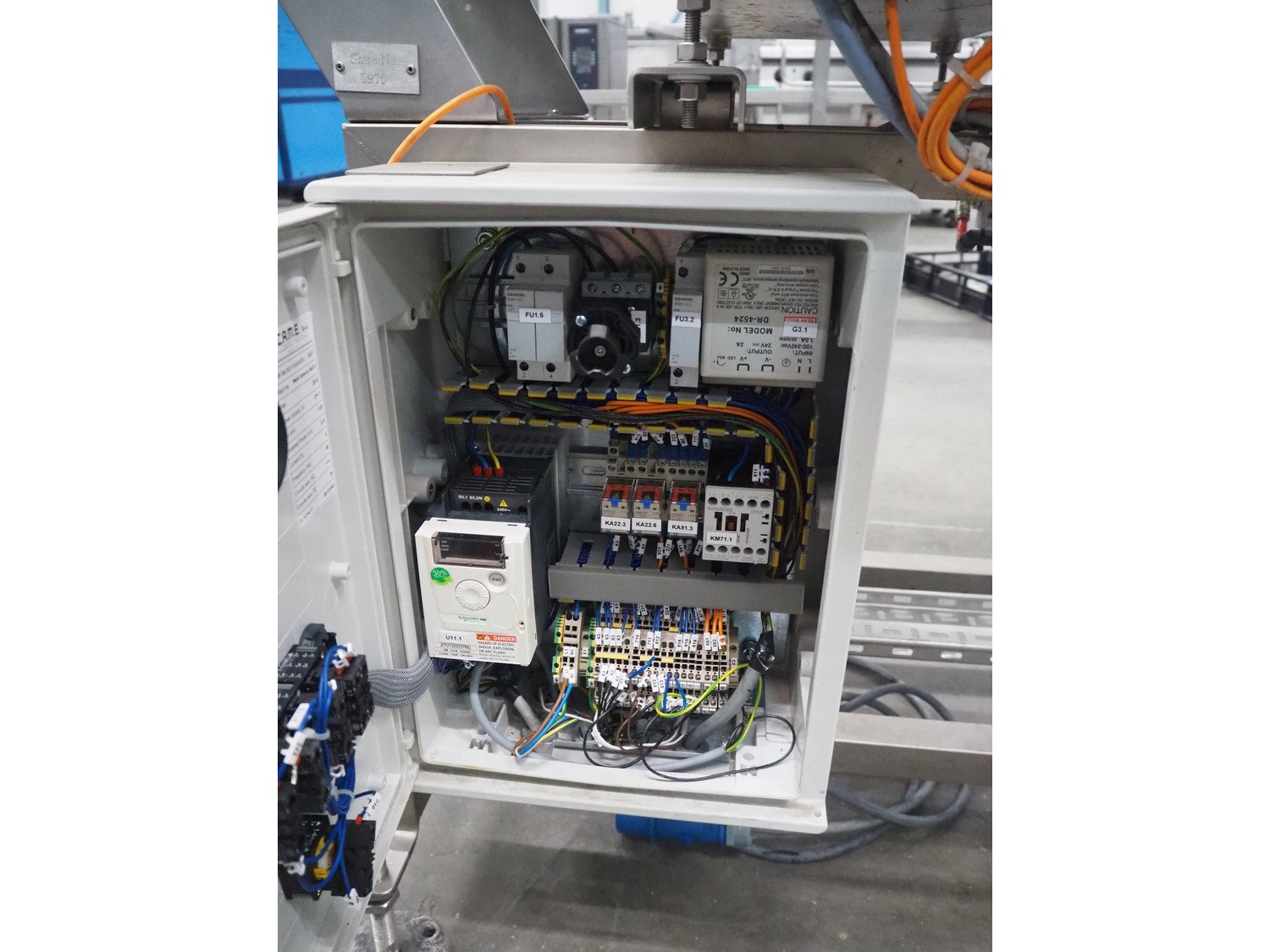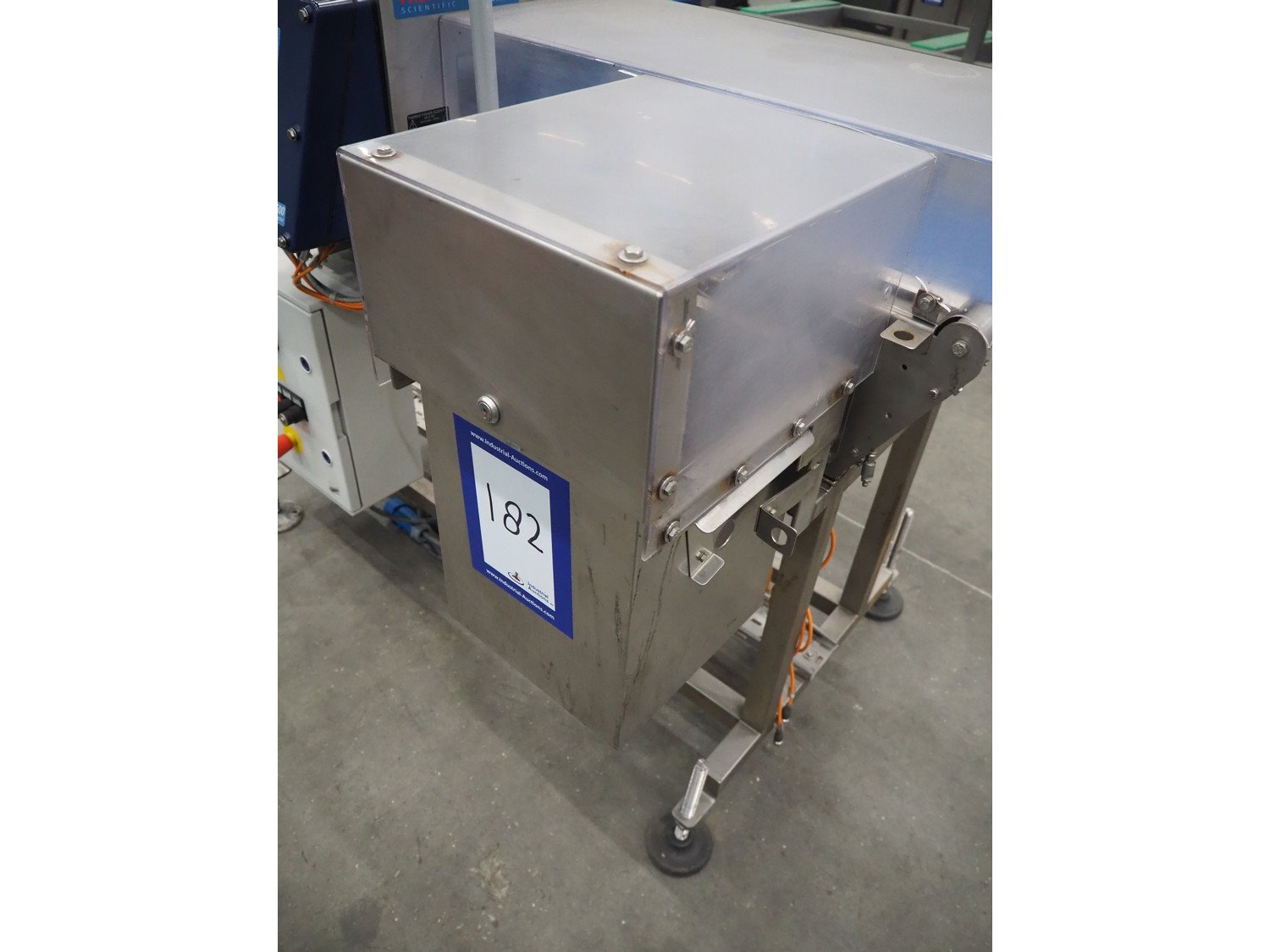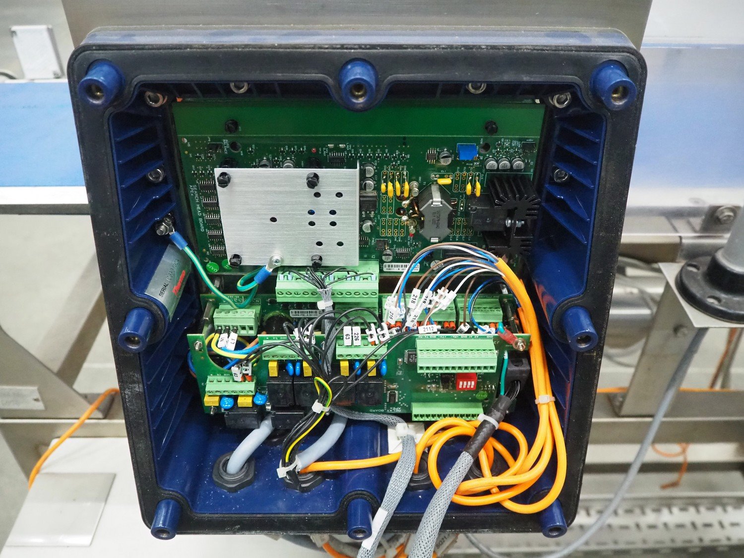 Thermo Fisher metal detector with rejecter, model: Apex500, serial number: 9628, year of construction: 2012, 120/230 V, 50/60 Hz, 0.4 A, plastic belt, belt width: 250 mm, clearance: 350 mm x 150 mm, total dimensions: 1400 mm x 960 mm x 1460 mm.