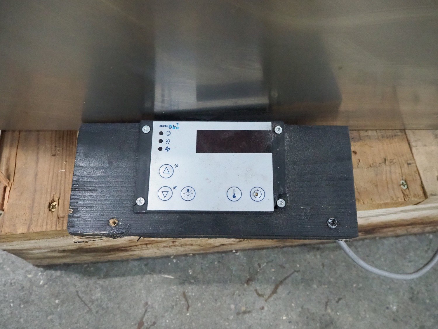 Refrigerated showcase, dimensions: 1000 mm x 1300 mm x 2040 mm.