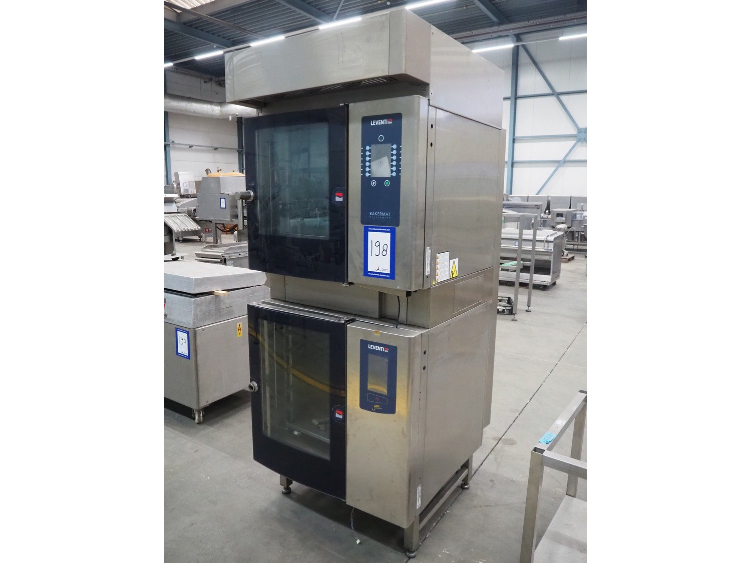 Leventi double combi steamer, type: BM 6 MM NG and BM 4 MM NG, number: 13 03 57830 and 13 03 57829, 400 V, 3 Ph, 50/60 Hz, 9 kW, 4 and 6 floors, dimensions each floor: 600 mm x 400 mm, total dimensions: 1000 mm x 900 mm x 2200 mm.
