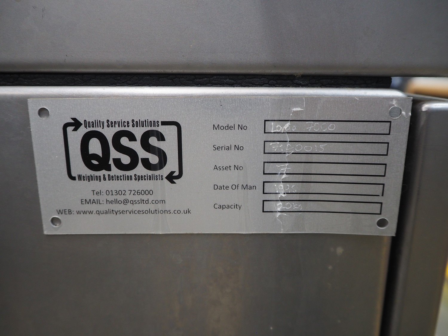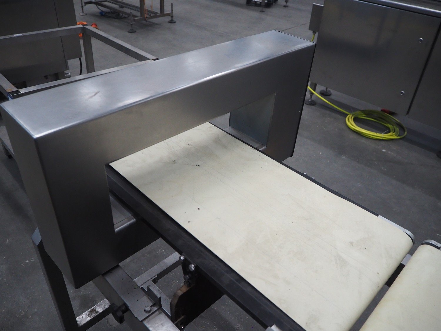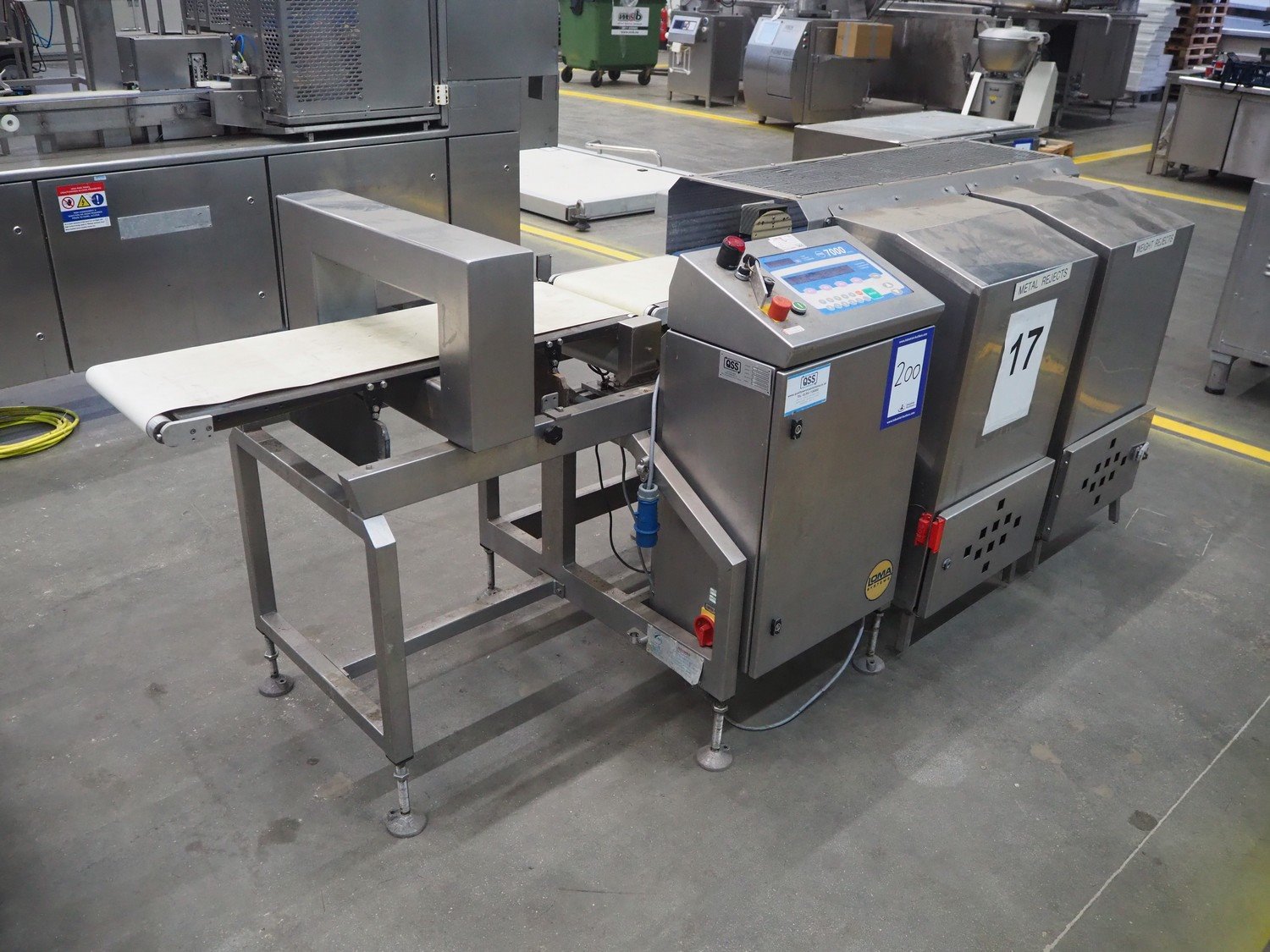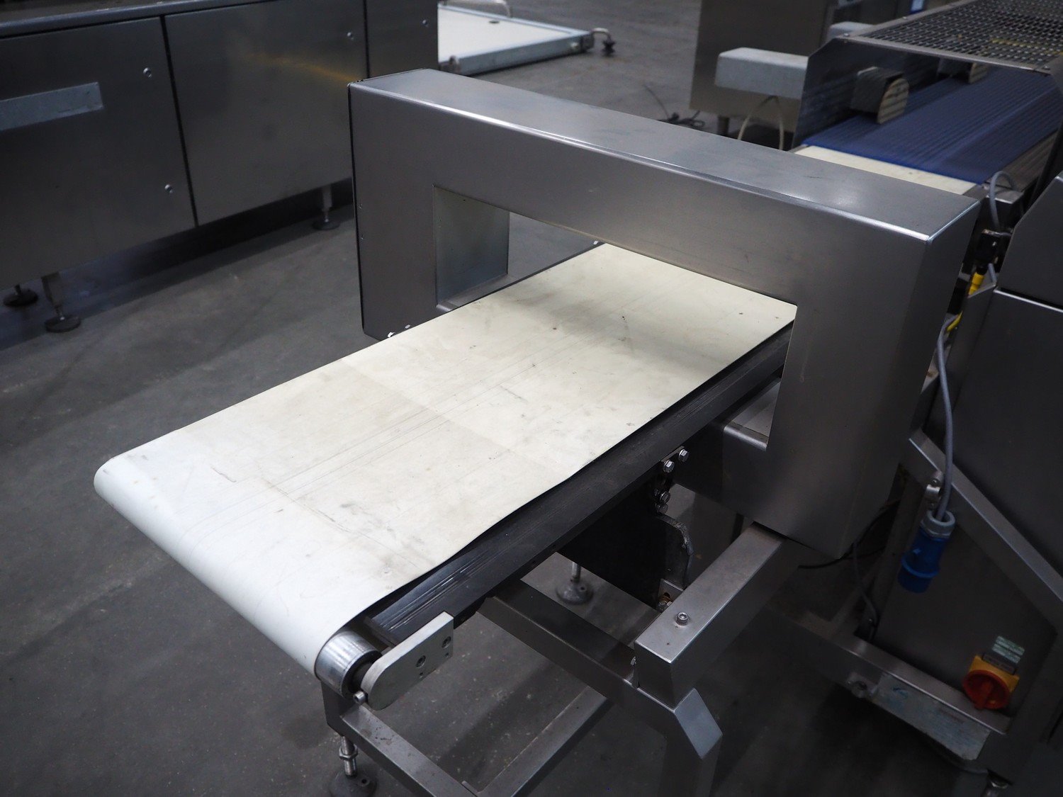 Loma systems checkweigher with metal detector and double rejector, serial number: 71A001, 240 V, 1 Ph, 50 Hz, plastic belt, belt width: 300 mm, clearance: 450 mm x 130 mm, total dimensions: 2750 mm x 1000 mm x 1050 mm.