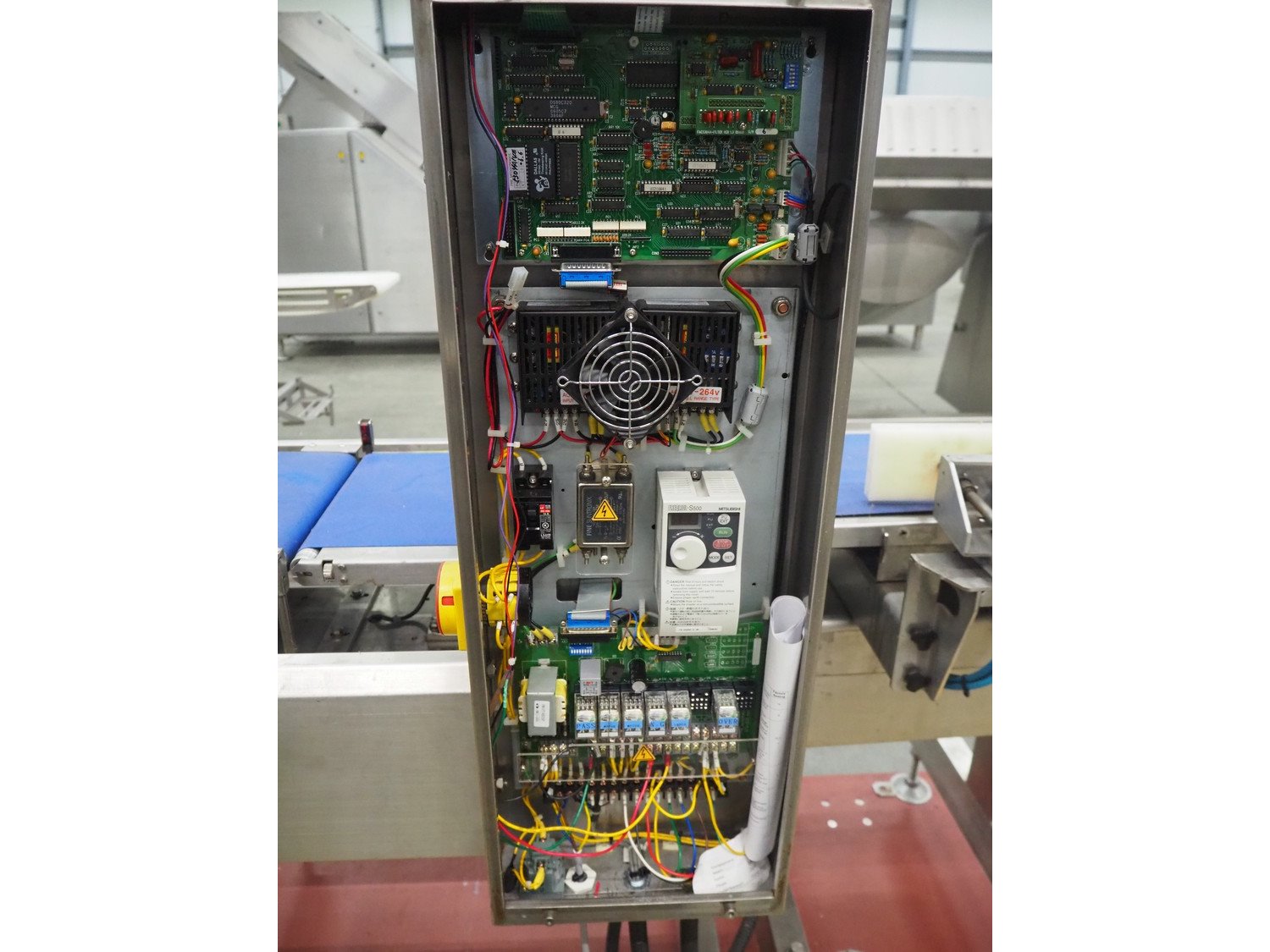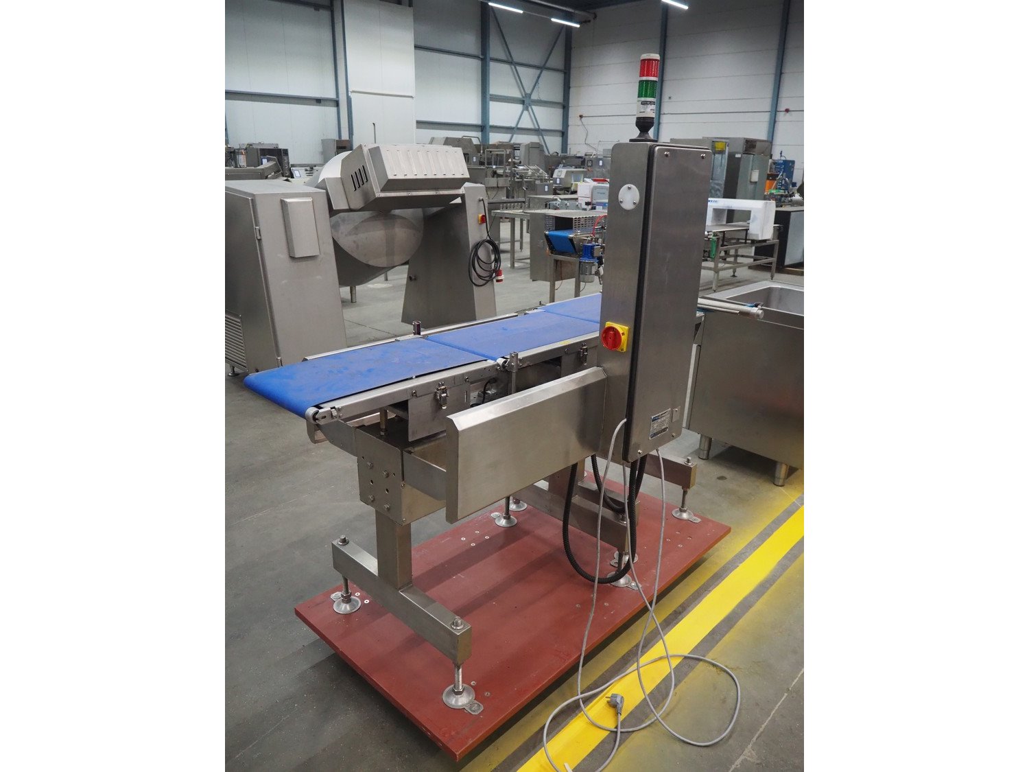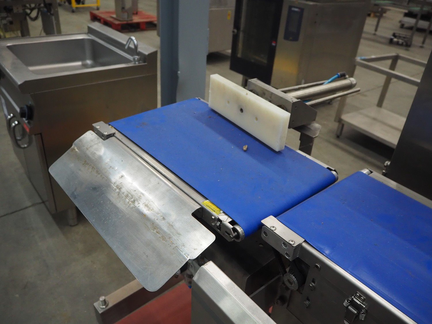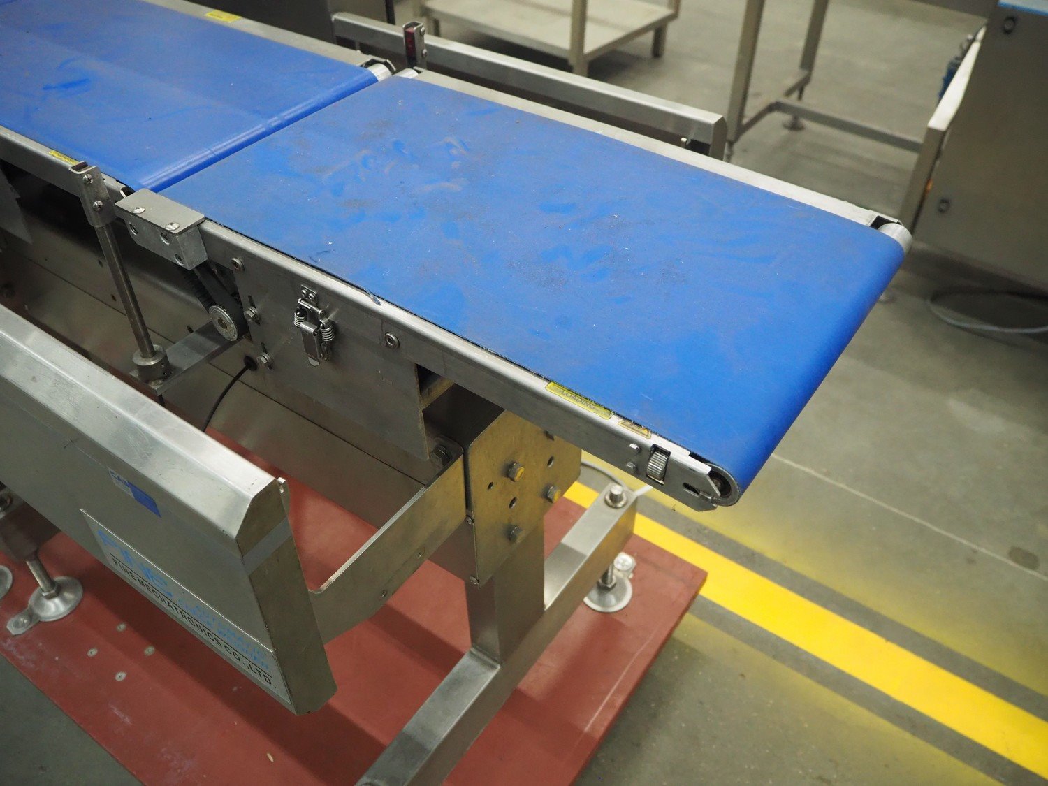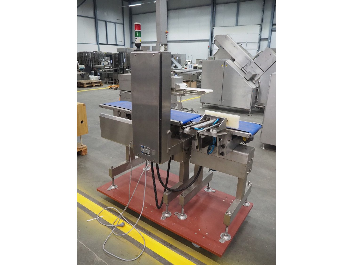 Fine Interkorea checkweigher with rejecter, model: FAC-5500 W335 535, serial number: E065031, year of construction: 2006/06, weight range: 1-500 gram, plastic belt, belt width: 300 mm, total dimensions: 1670 mm x 900 mm x 1630 mm.