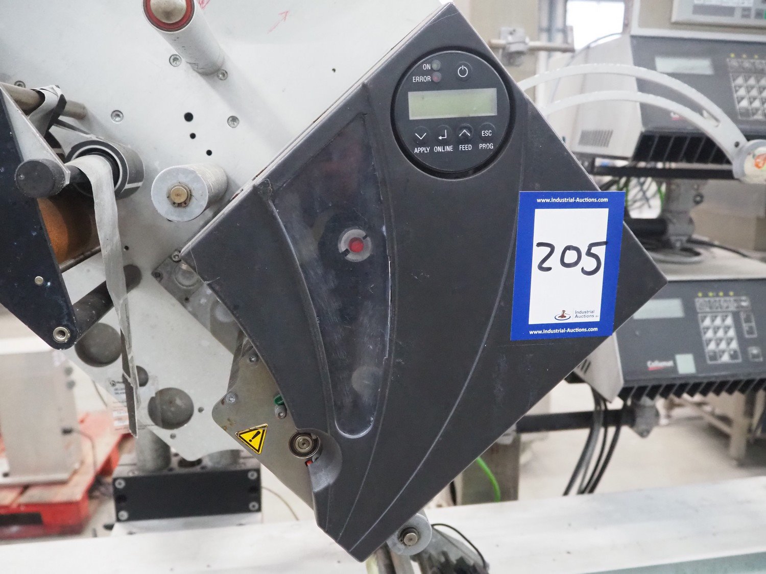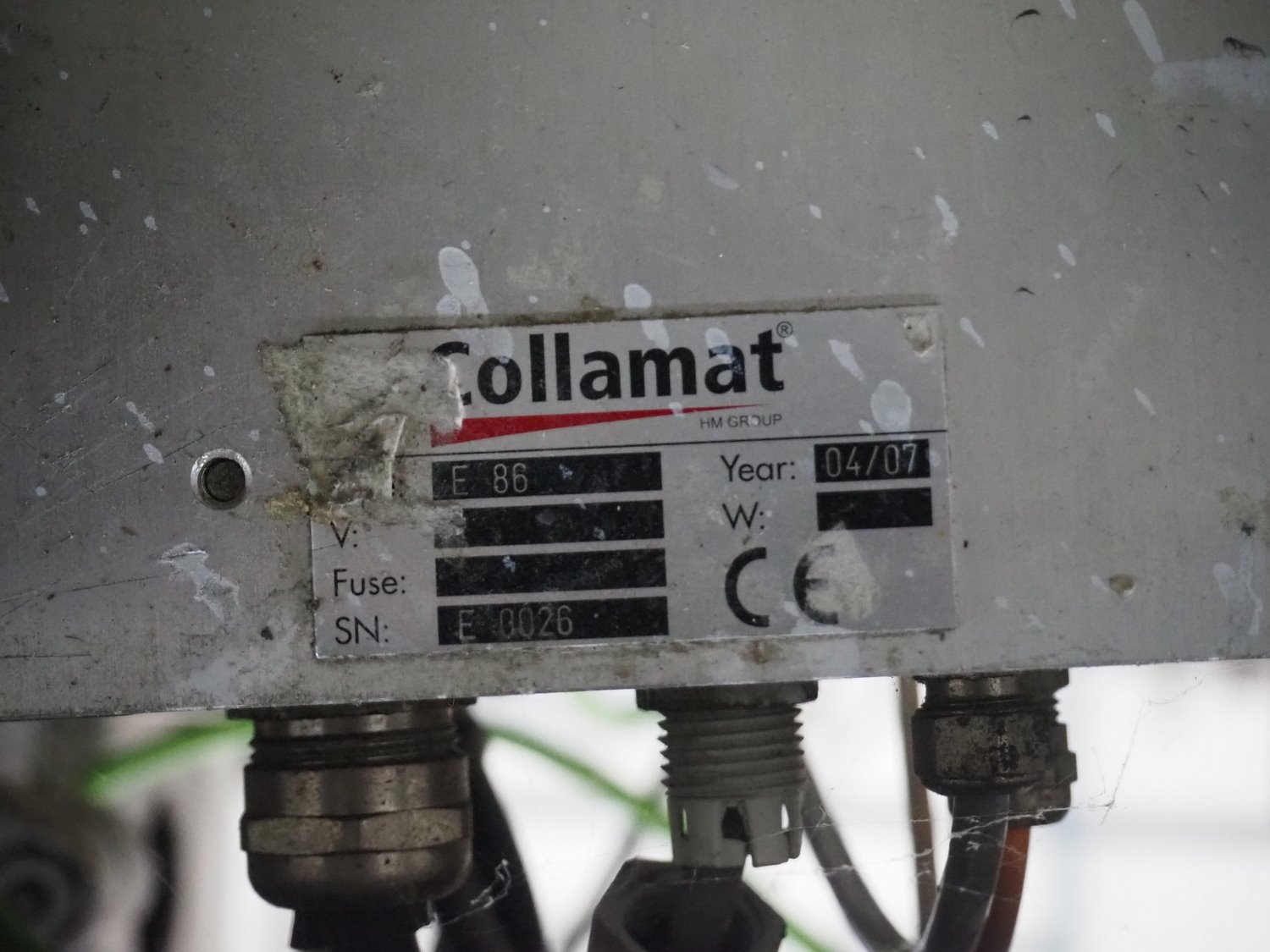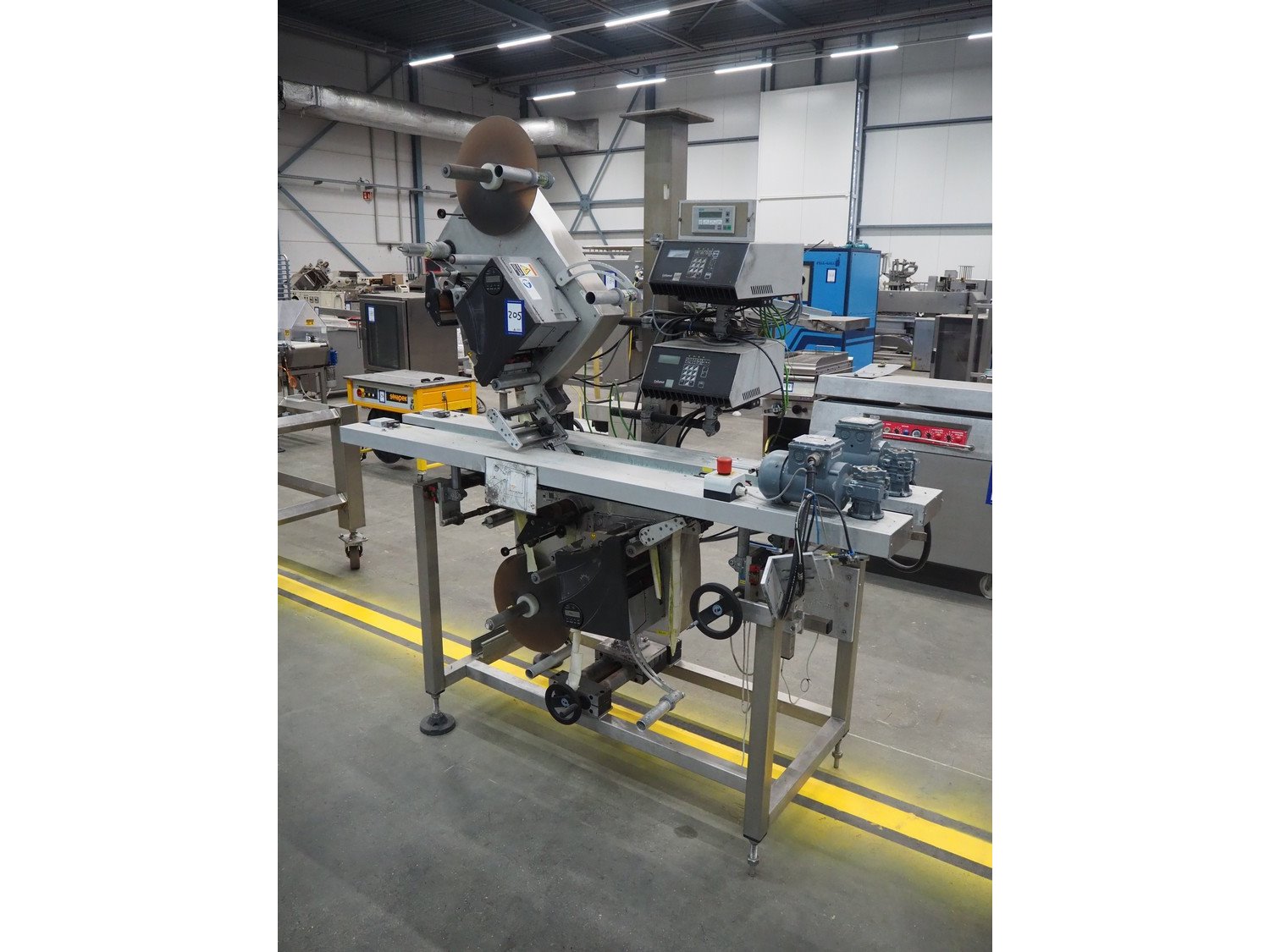 Collamat top and bottom labelling machine on s/s frame, consisting of; Collamat labeller and Collamat label printer, type labeller: E 86, serial number: E 0029, year of construction: 04/07, type label printer: C8610/20, serial number: 1366, year of construction: 04/07, 110/240 V, 305 W, total dimensions: 1900 mm x 900 mm x 2060 mm.