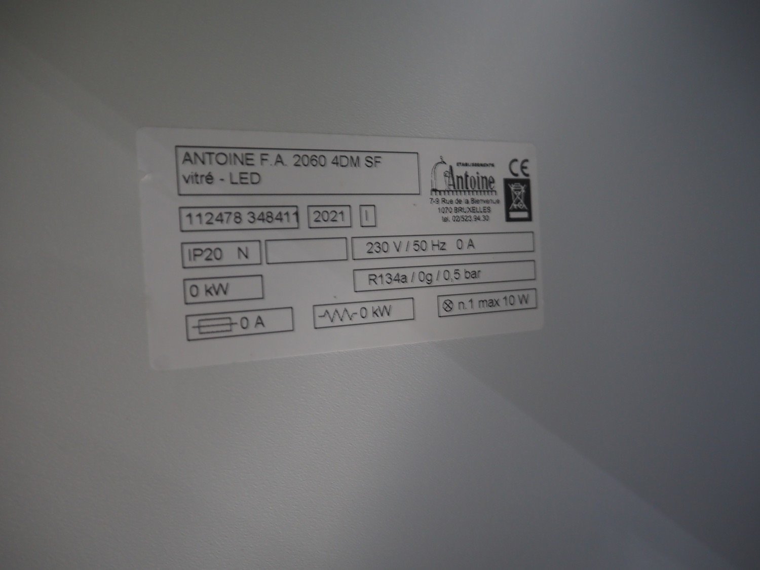 Antoine 4-door refrigerator, type: ANTOINE F.A. 2060 4DM SF vitré - LED, number: 112478 348411, year of construction: 2021, 230 V, 50 Hz, refrigerant: R134a, dimensions: 2060 mm x 550 mm x 820 mm. Without cooling compressor.